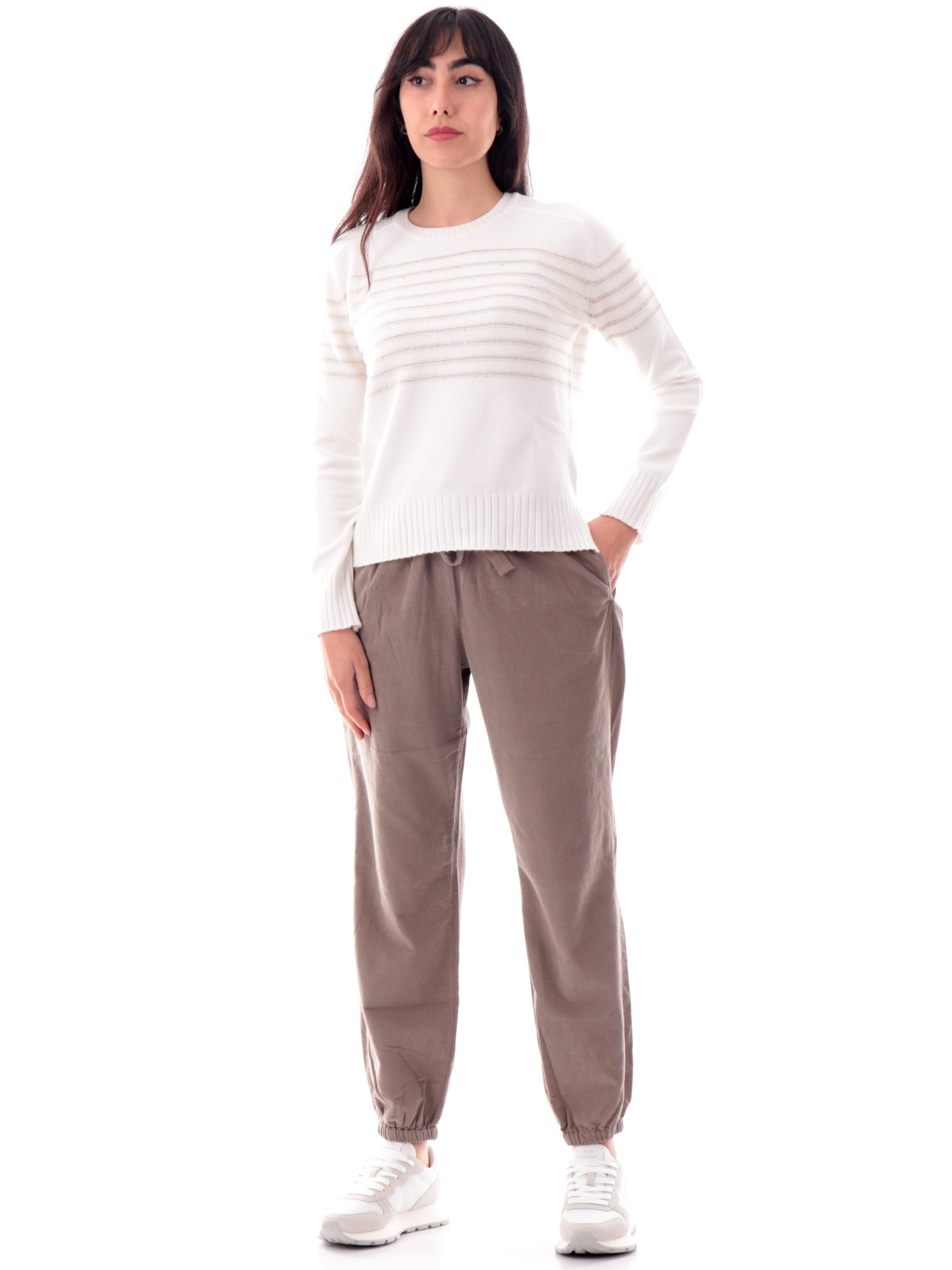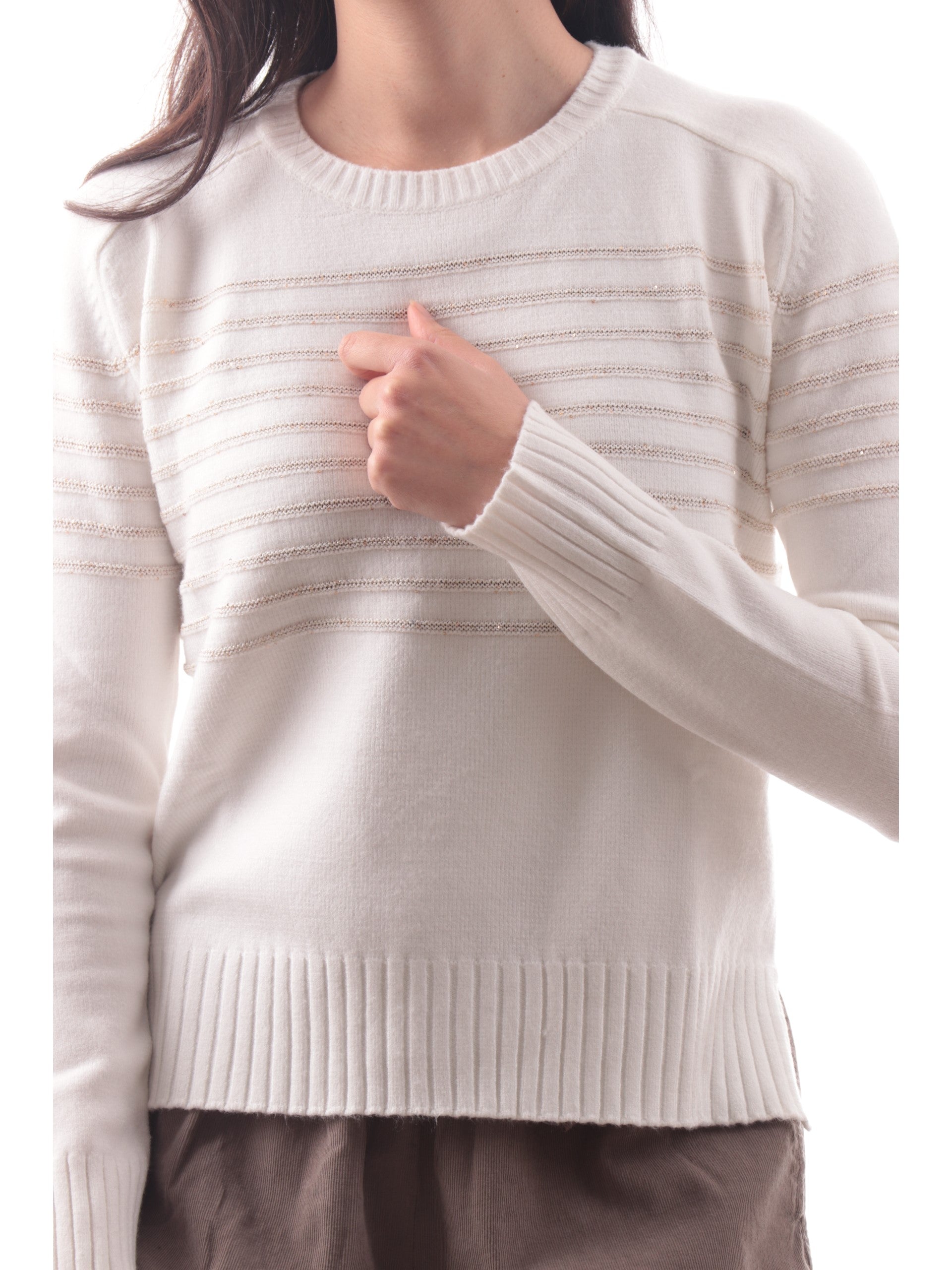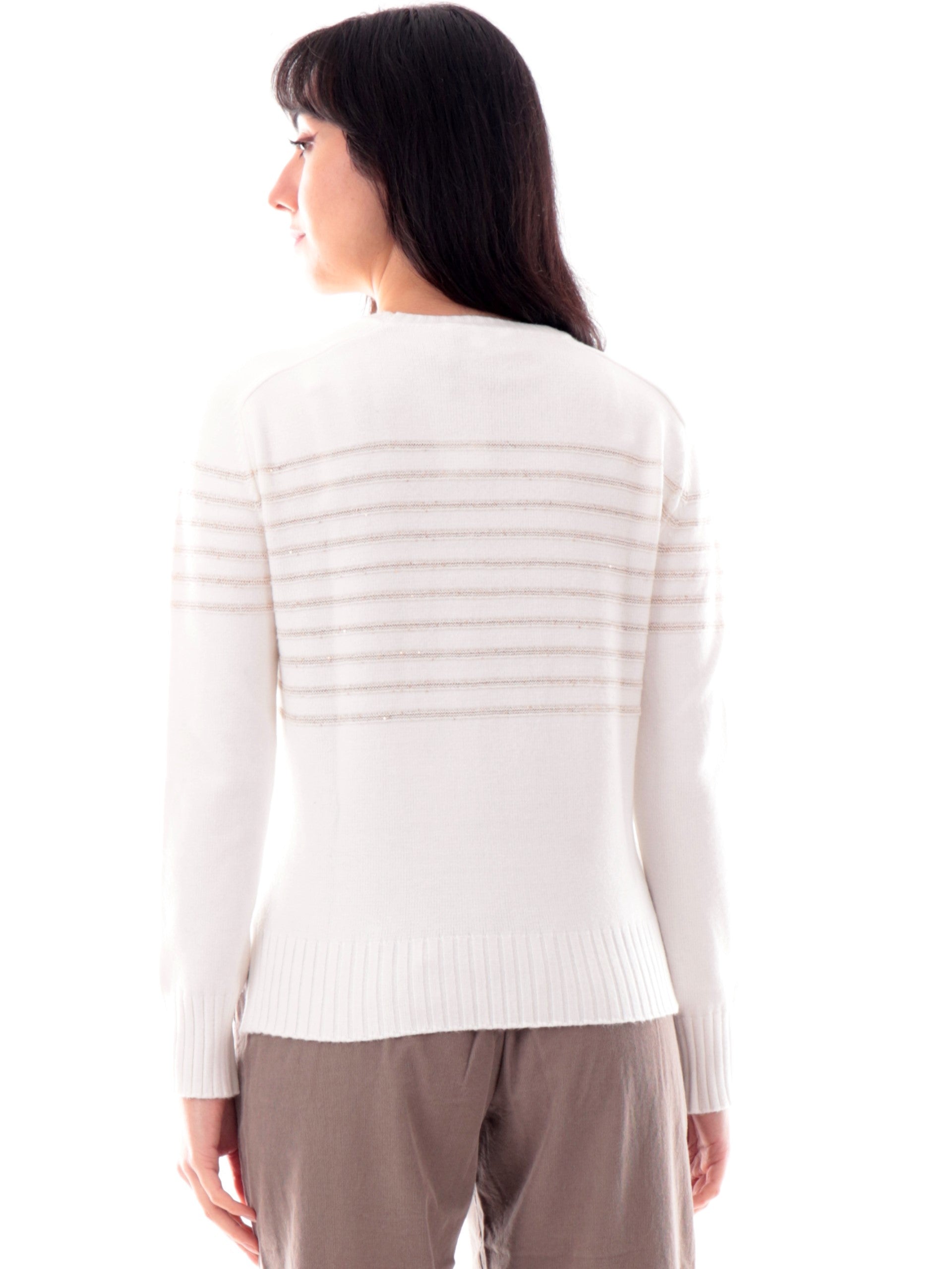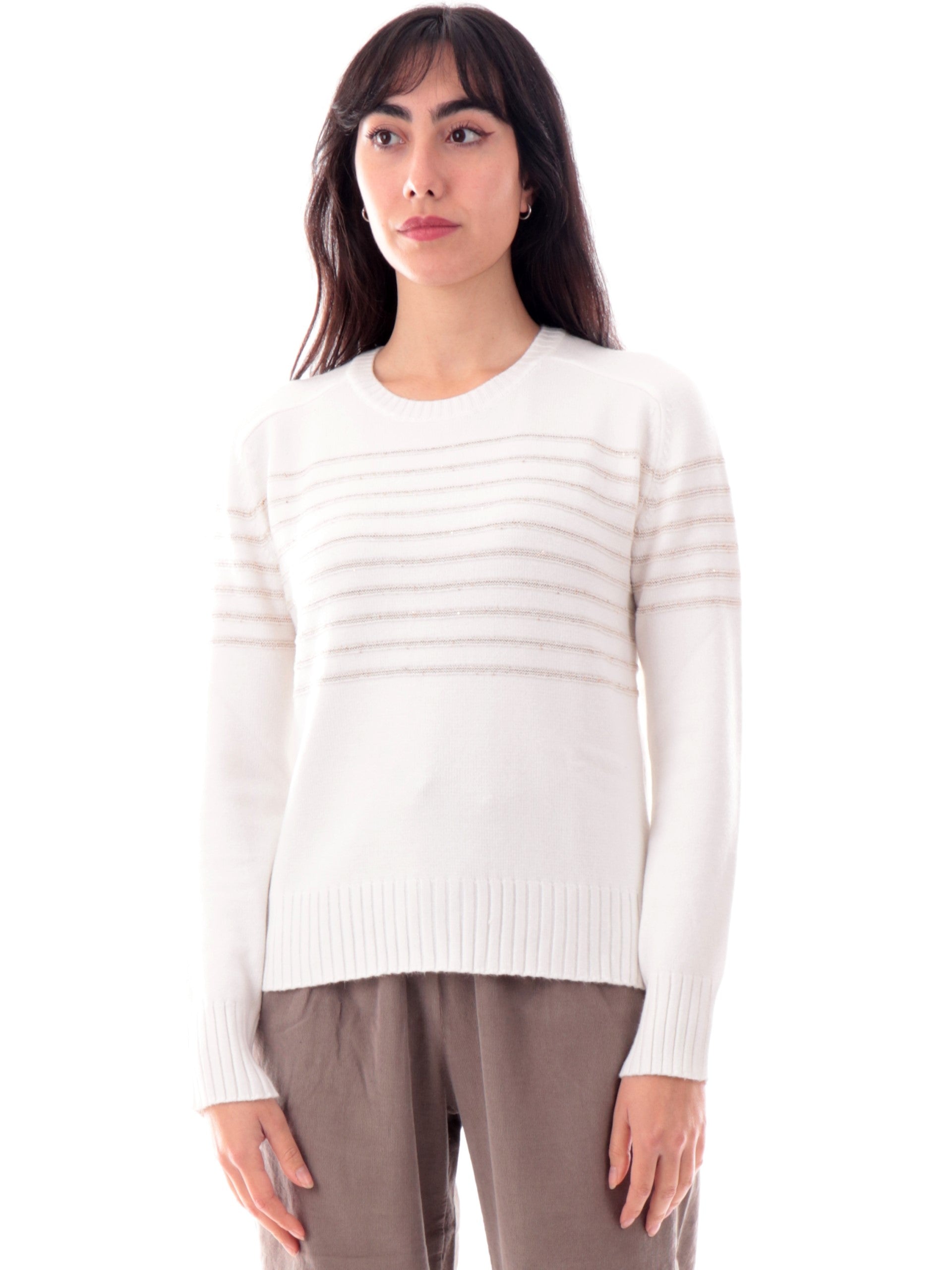 Maglione Anis White bianco da donna con righe lurex oro 255W6151-002