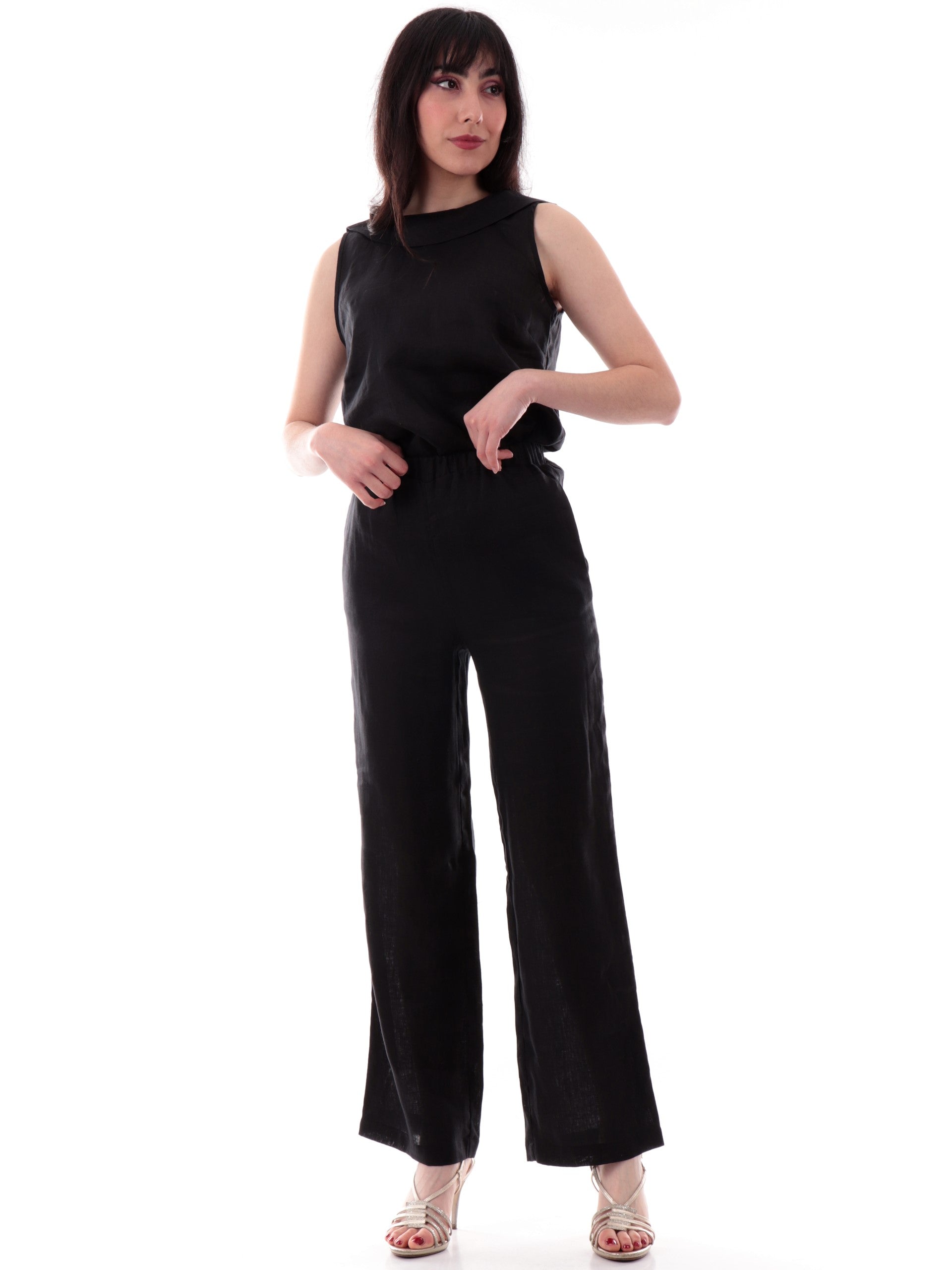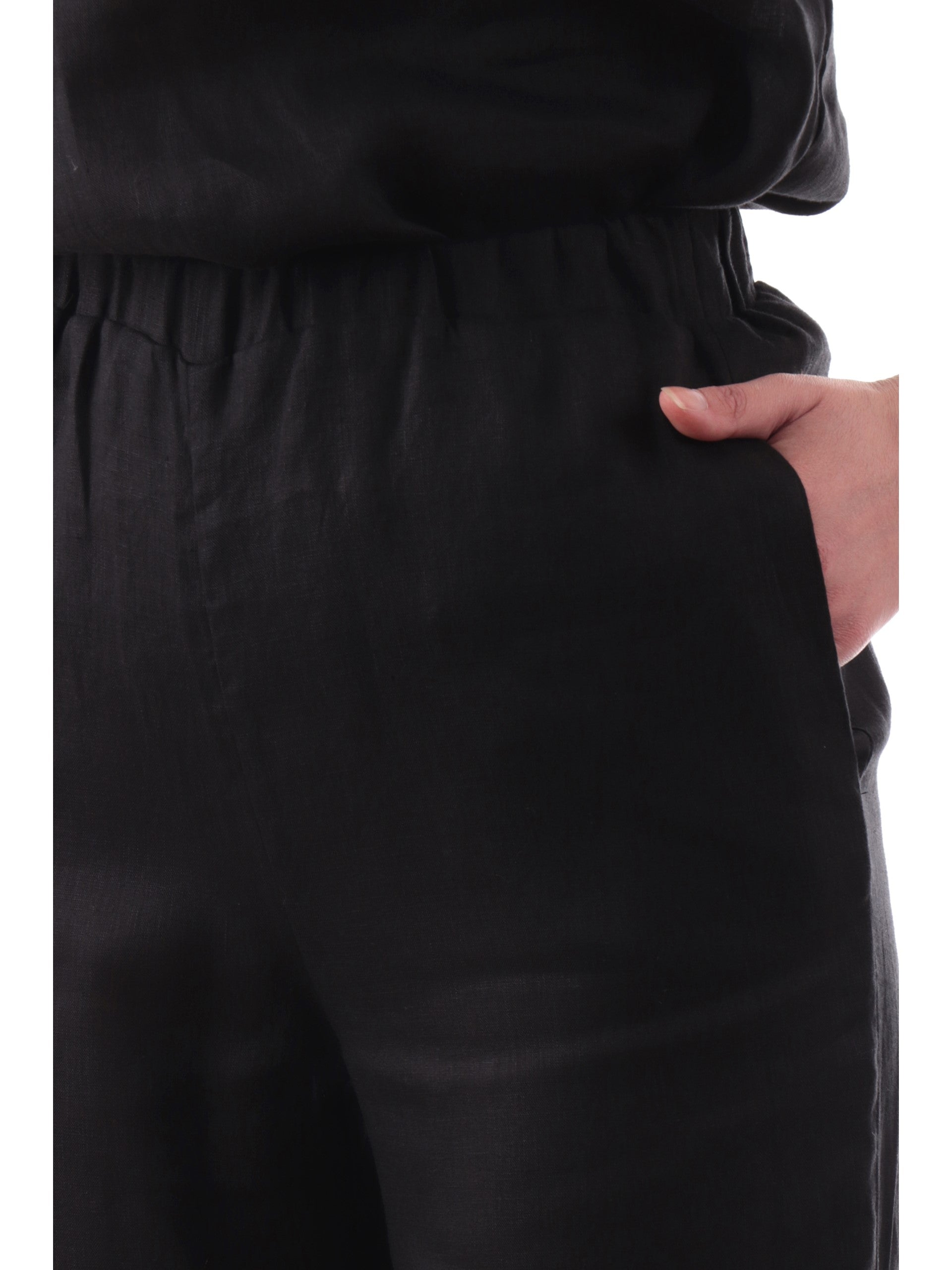 Pantaloni palazzo Anis White lino neri da donna vestibilità morbida 251C1370