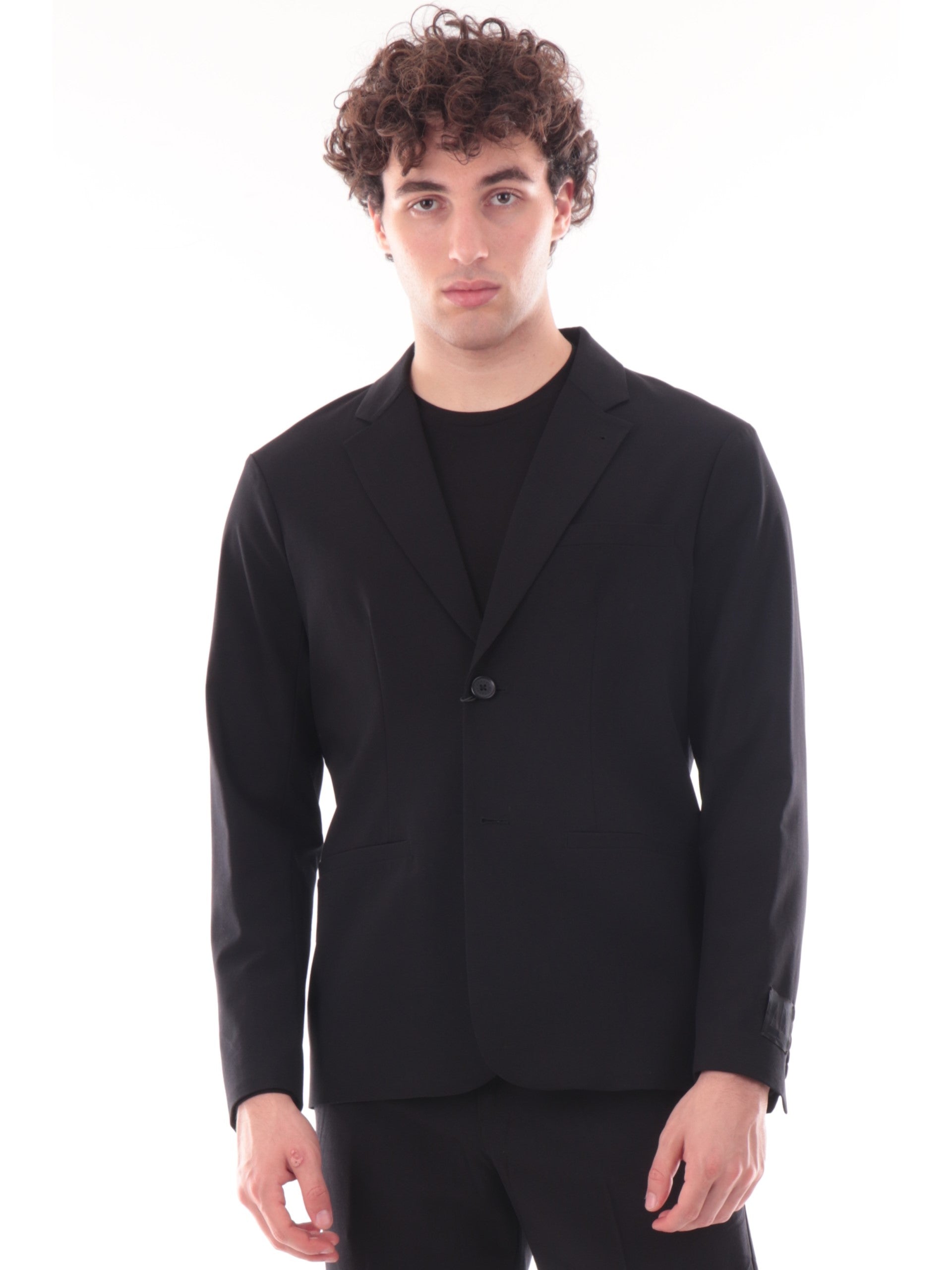 Giacca Armani Exchange AX nera da uomo elegante XM0345AF10897. Questa giacca AX nera ha il rever, la chiusura con doppio bottone e due tasche frontali a filo.