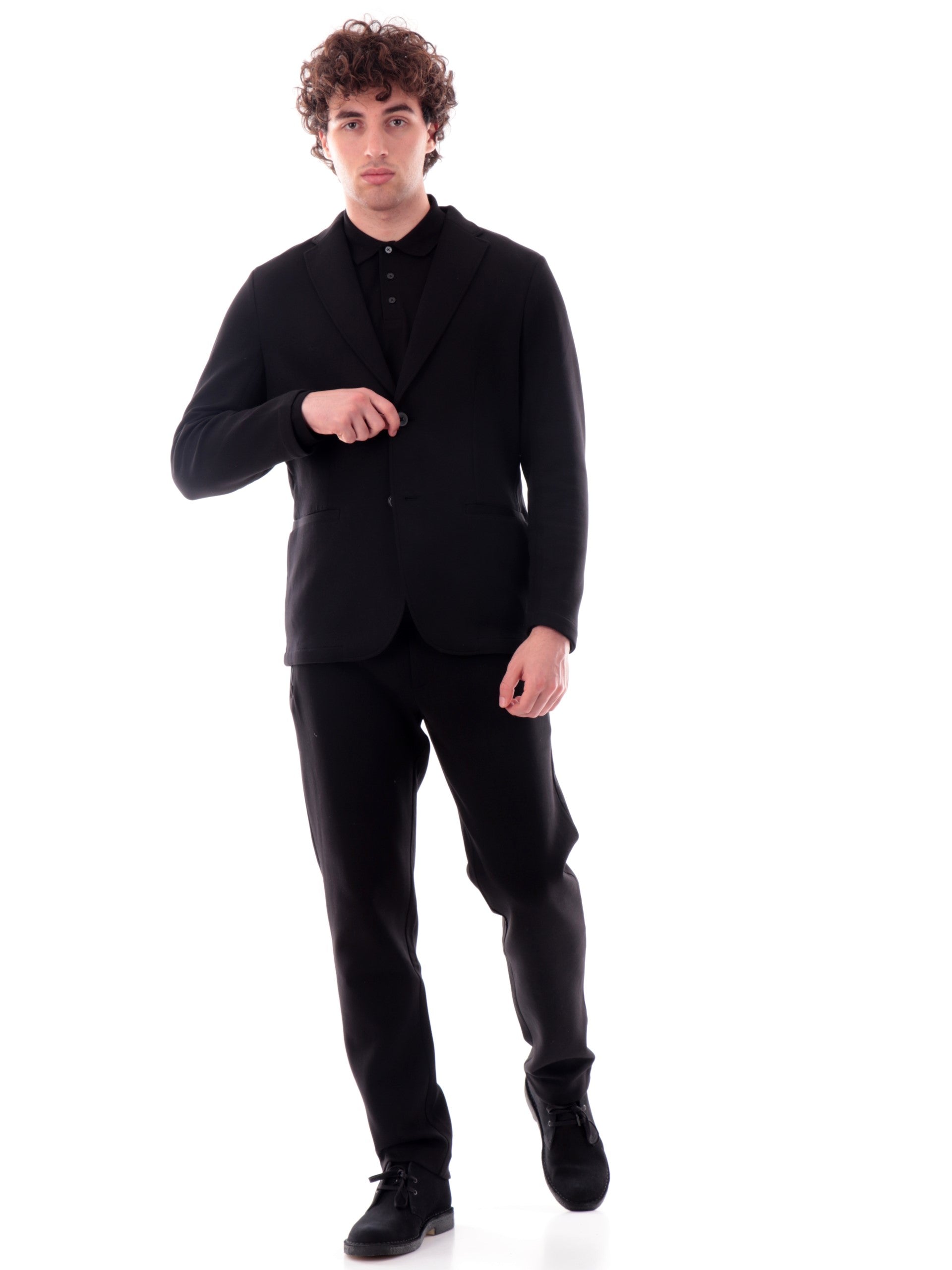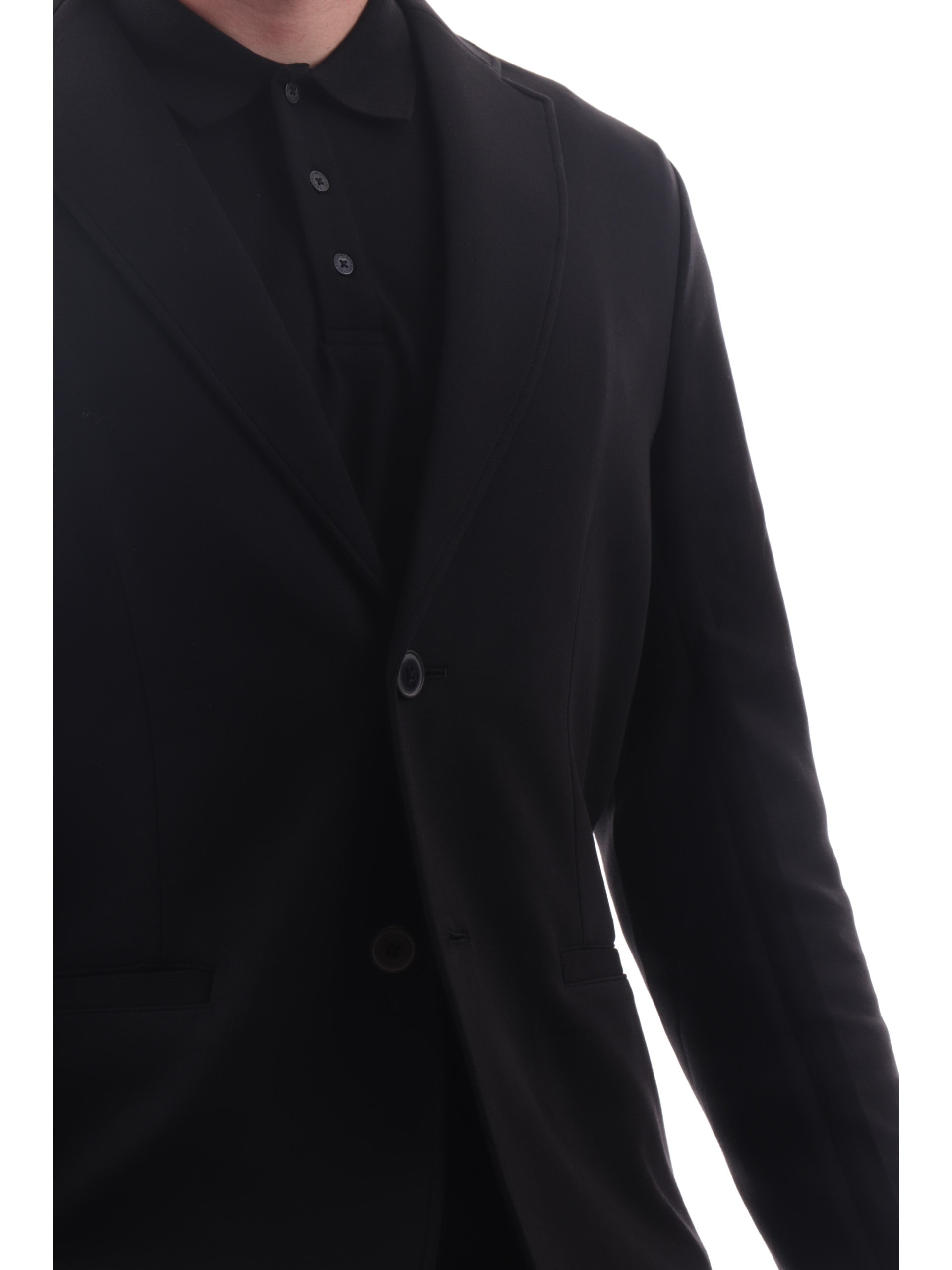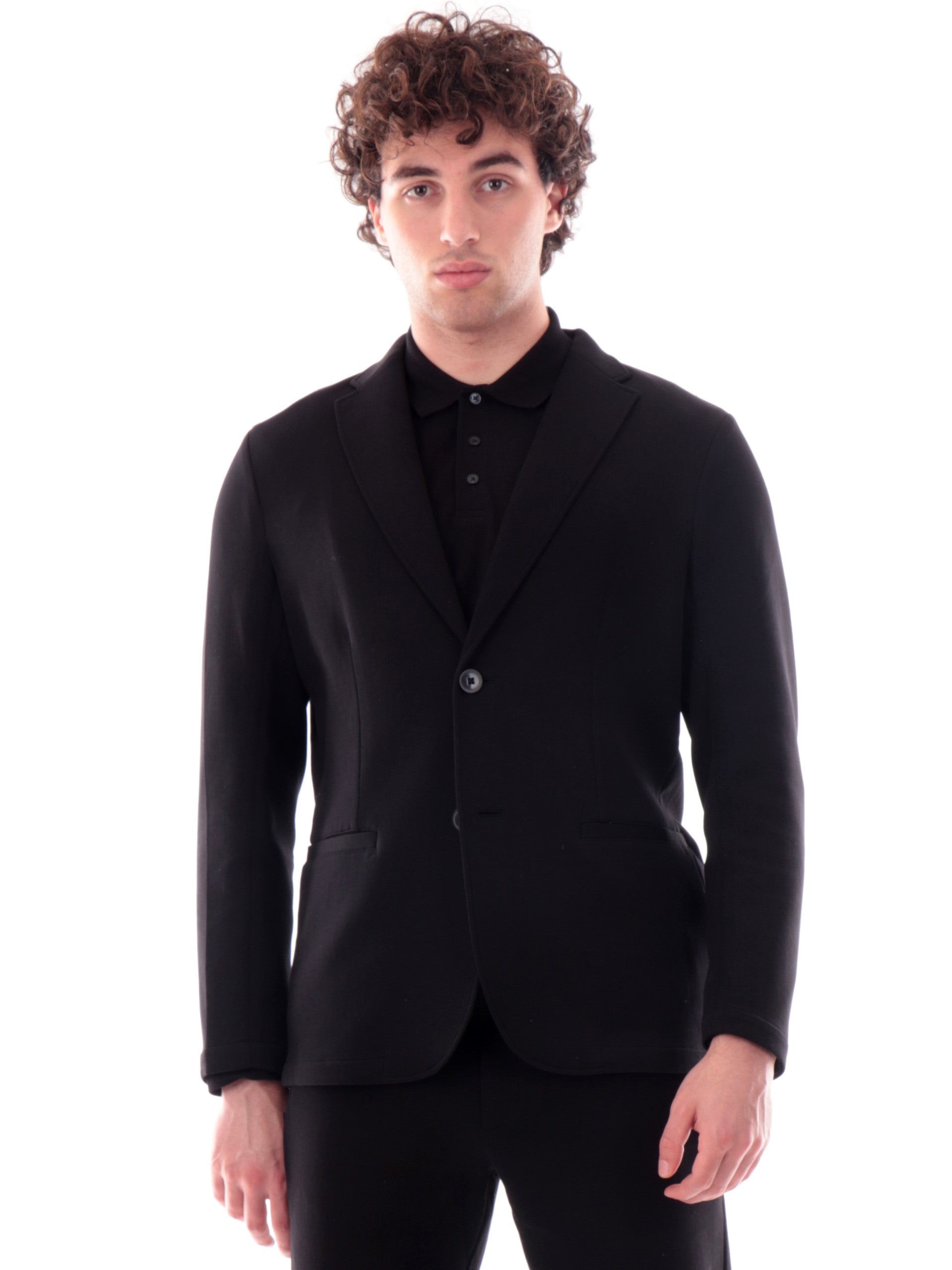 Giacca Ax nera da uomo. Questa giacca Armani Exchange da uomo realizzata in cotone è caratterizzata dal colletto tradizionale, la chiusura con doppio bottone, due tasche laterali a filo, Questa giacca può essere abbinata su un outfit elegante e anche su un outfit sportivo/casual