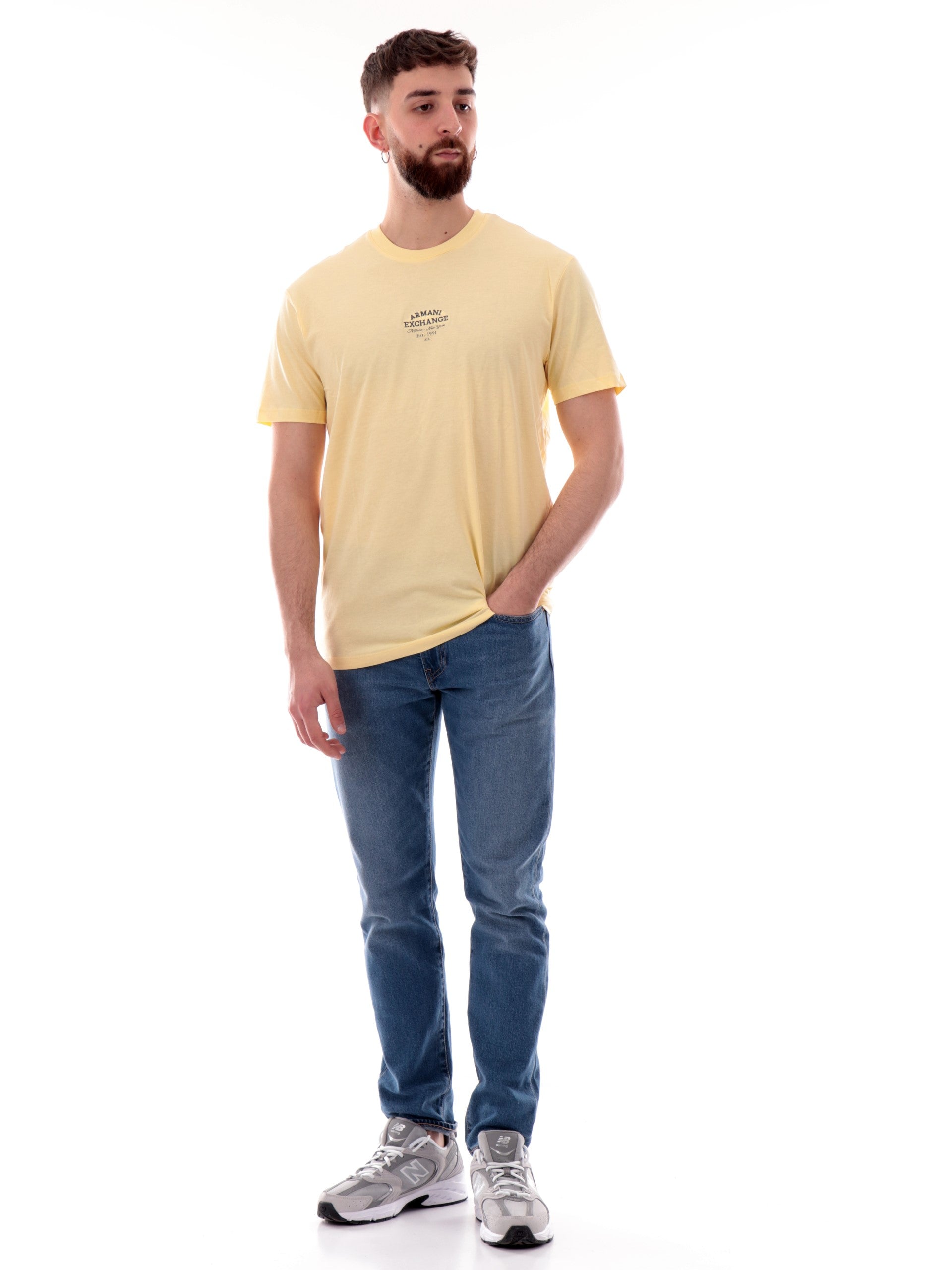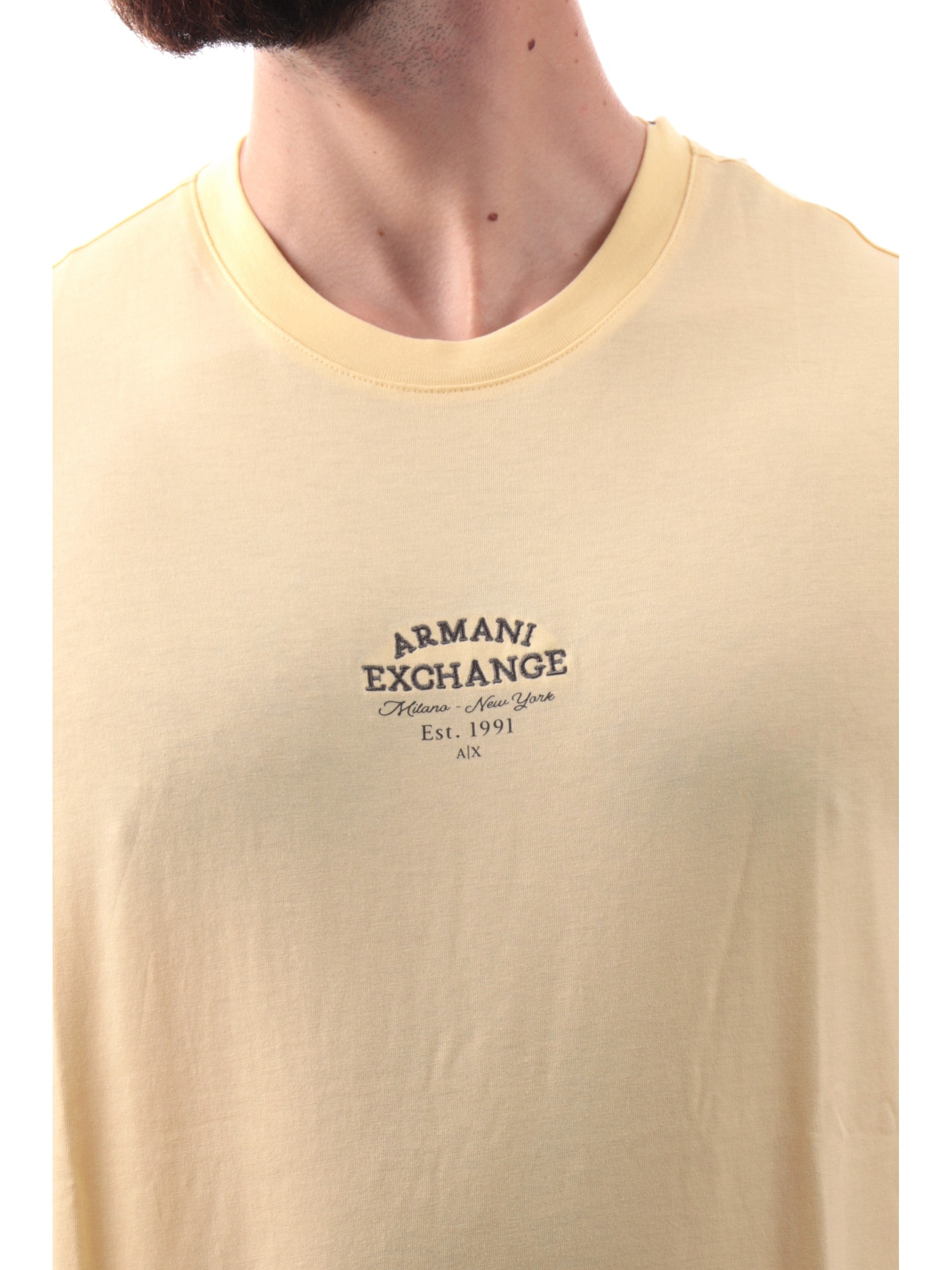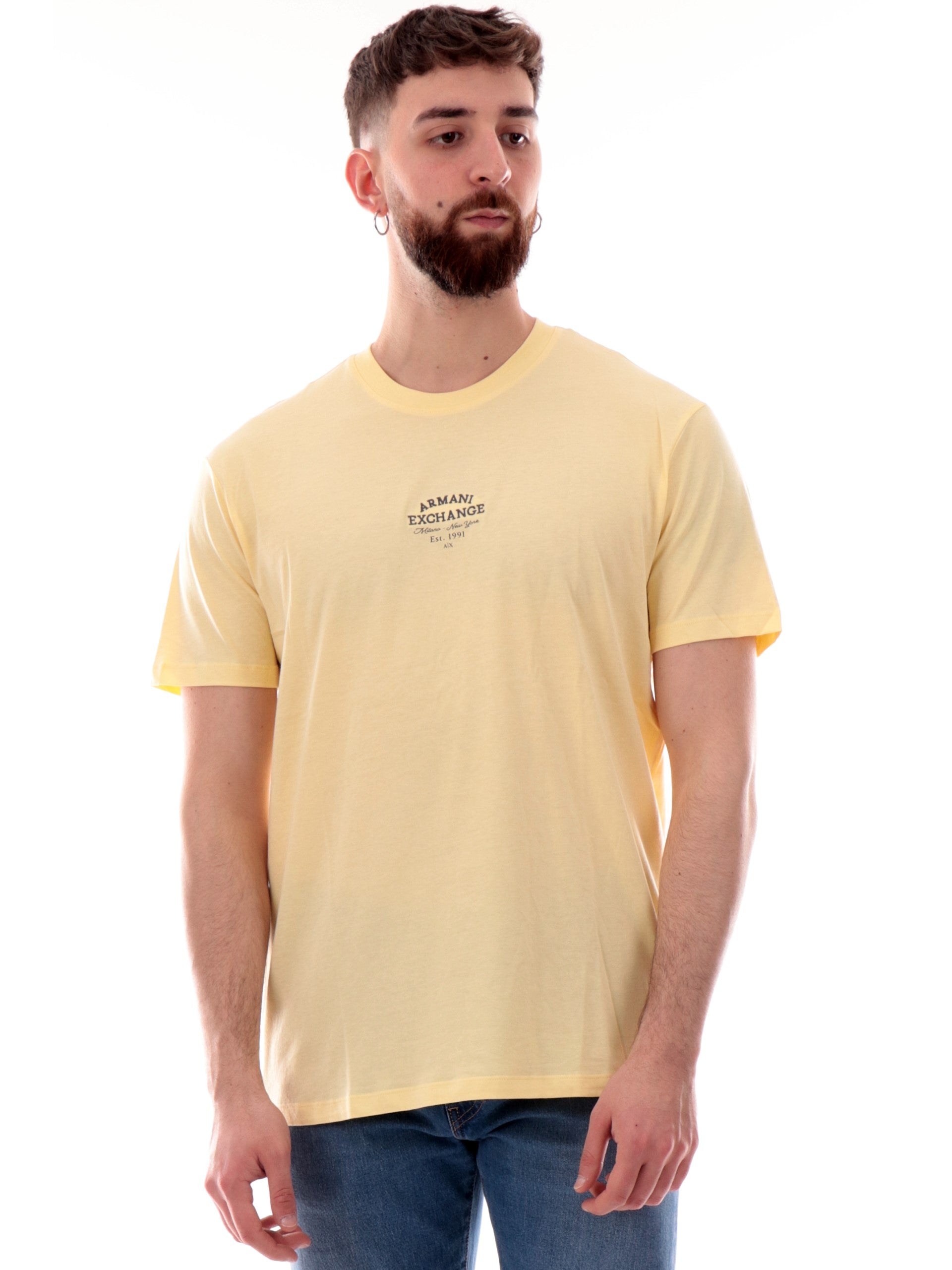 T-shirt Armani Exchange AX gialla da uomo logo Armani ricamato XM000761AF12308