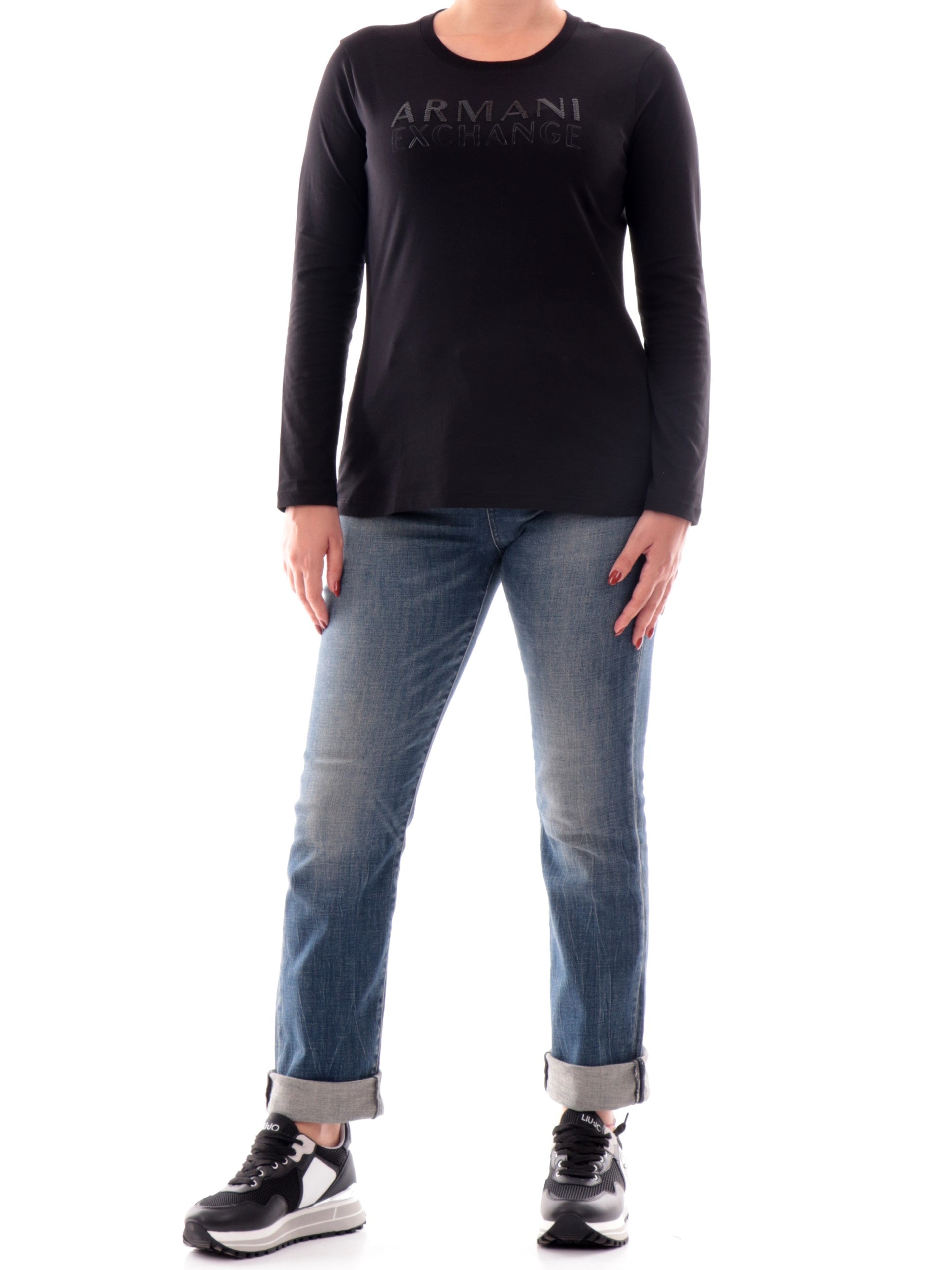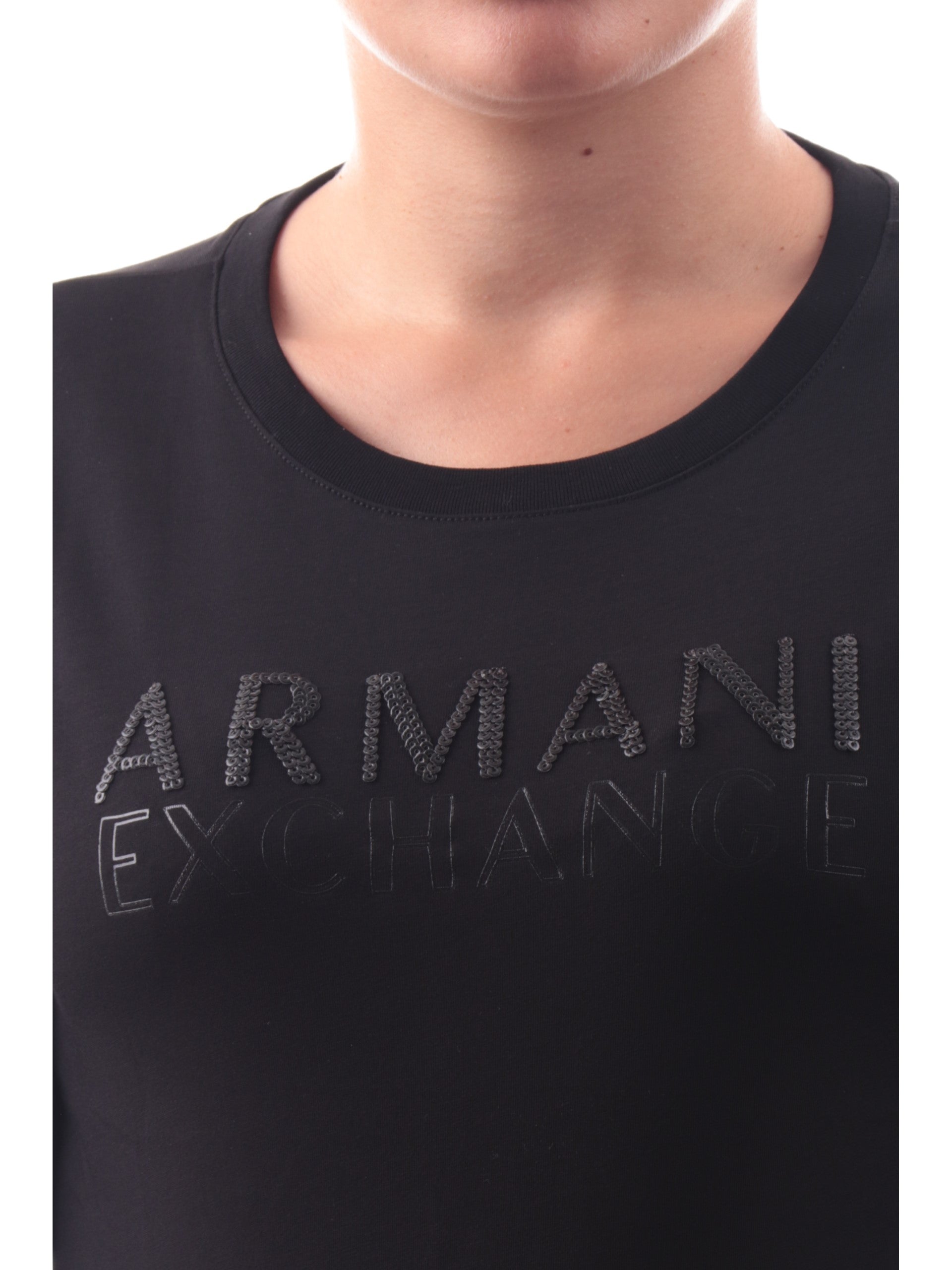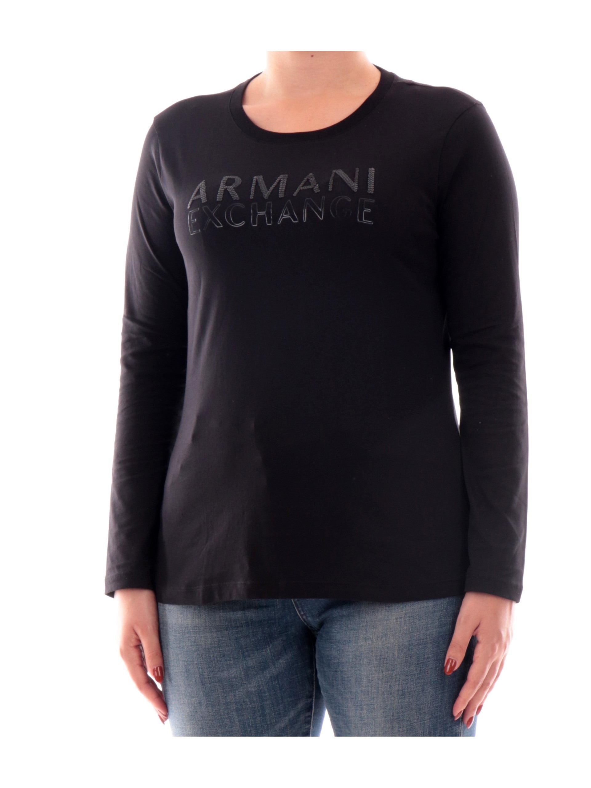 T-shirt Armani Exchange AX nera da donna maniche lunghe logo con paillettes XW001374AF10356