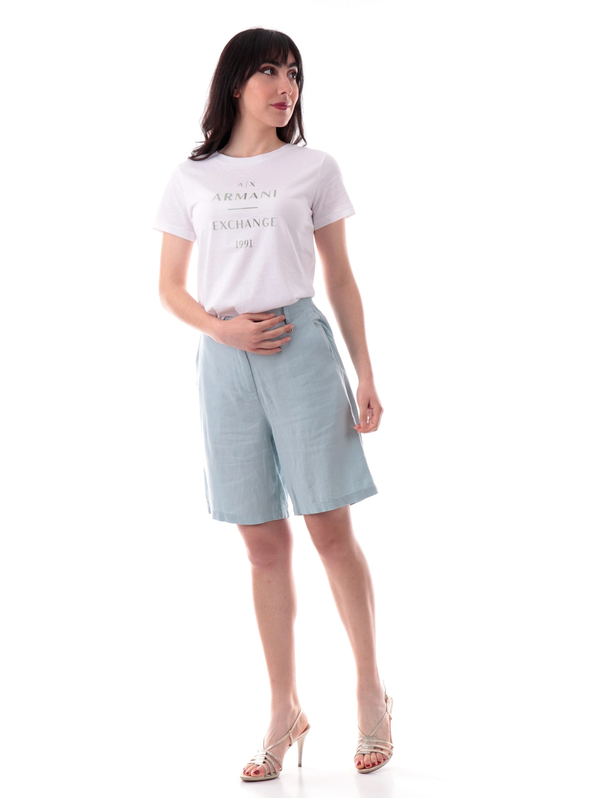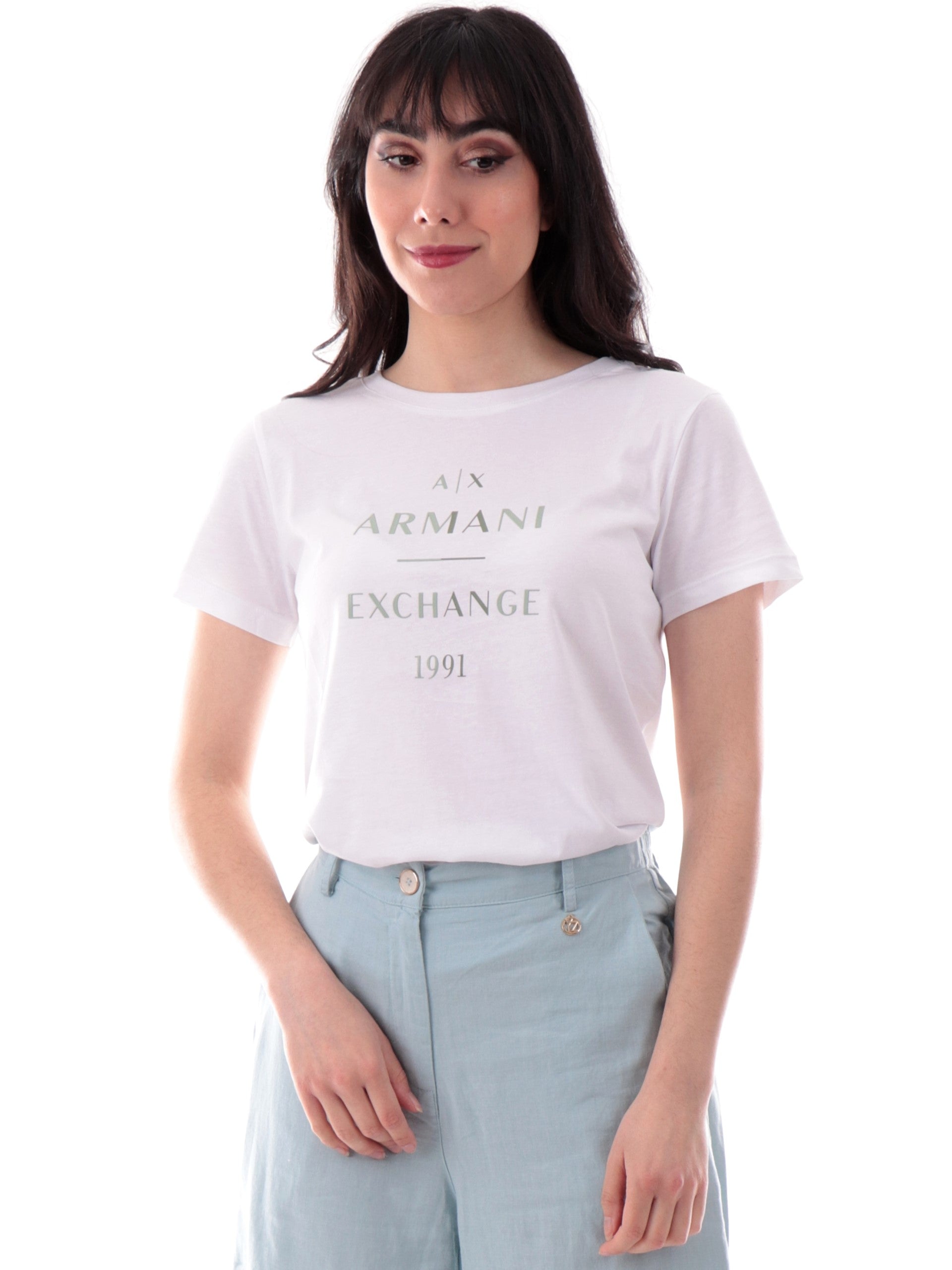 T-shirt Armani Exchange Bianca da donna logo verde acqua XW000522AF1717-2