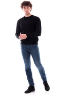 Maglione Armani Exchange ax nero. Questo pullover AX nero girocollo ha le maniche lunghe, il logo AX in basso a sinistra, polsini e fondo elasticizzati. Questo maglioncino AX è perfetto per un look elegante e sportivo