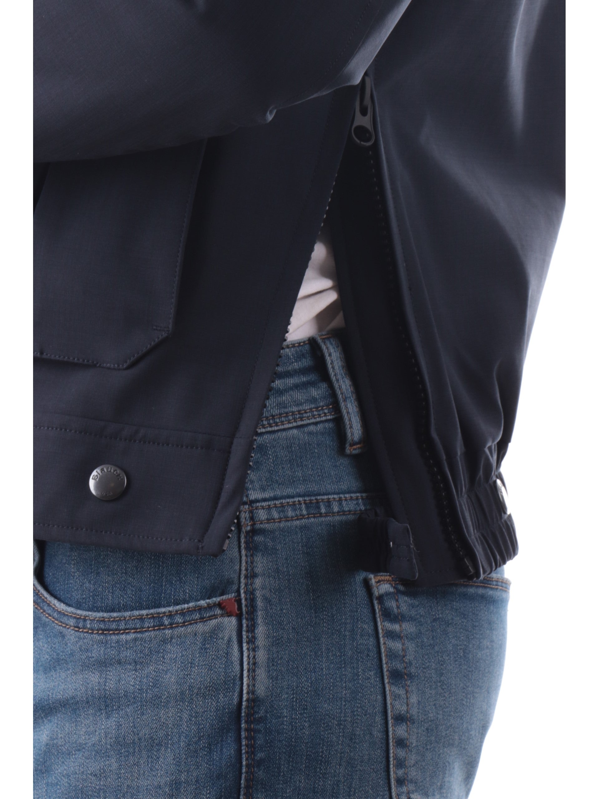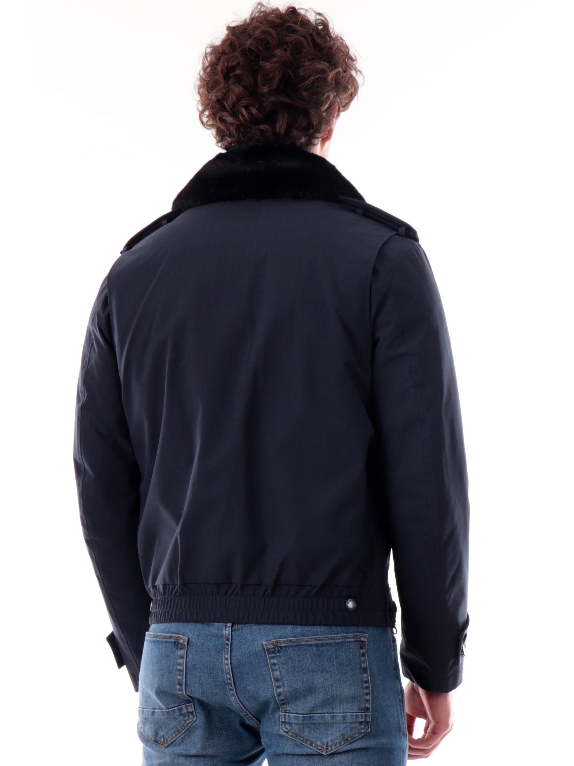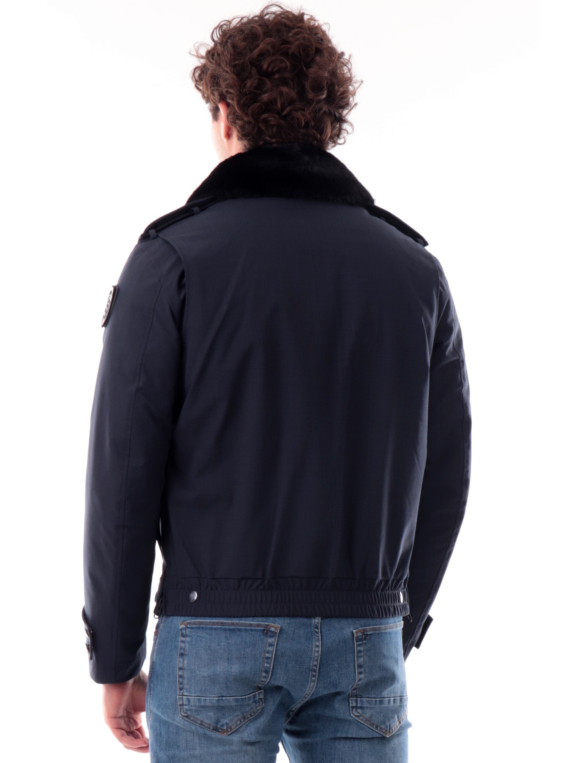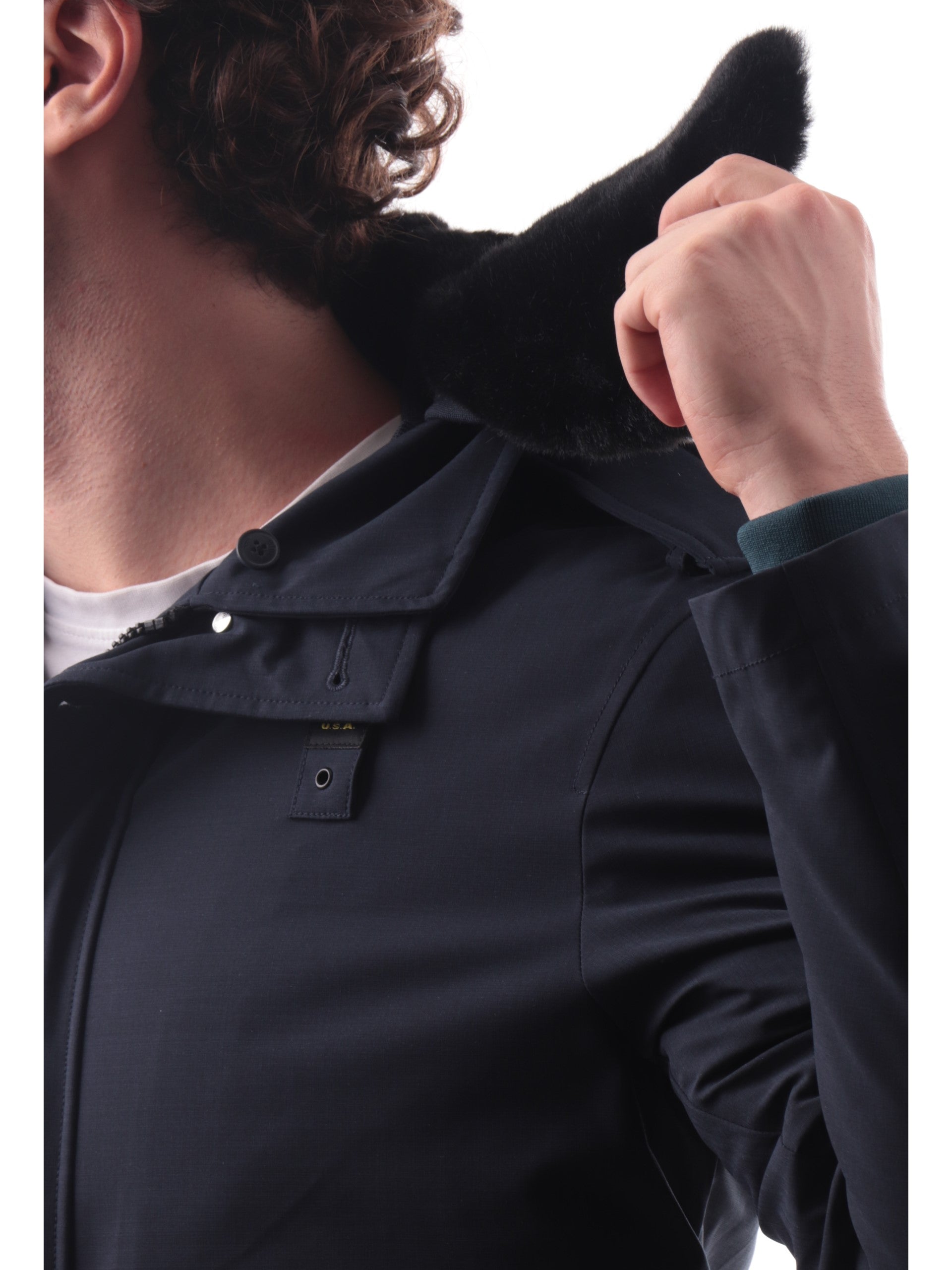 Giacca Blauer blu tessuto tecnico da uomo Ward con pelliccia eco C05125007283. Questo giubbino Blauer blu ha la pelliccia eco rimovibile, la chiusura full zip centrale nascosta da una patta con bottoni, due tasconi frontali con patta e il patch Blauer rimovibile sulla manica sinistra.