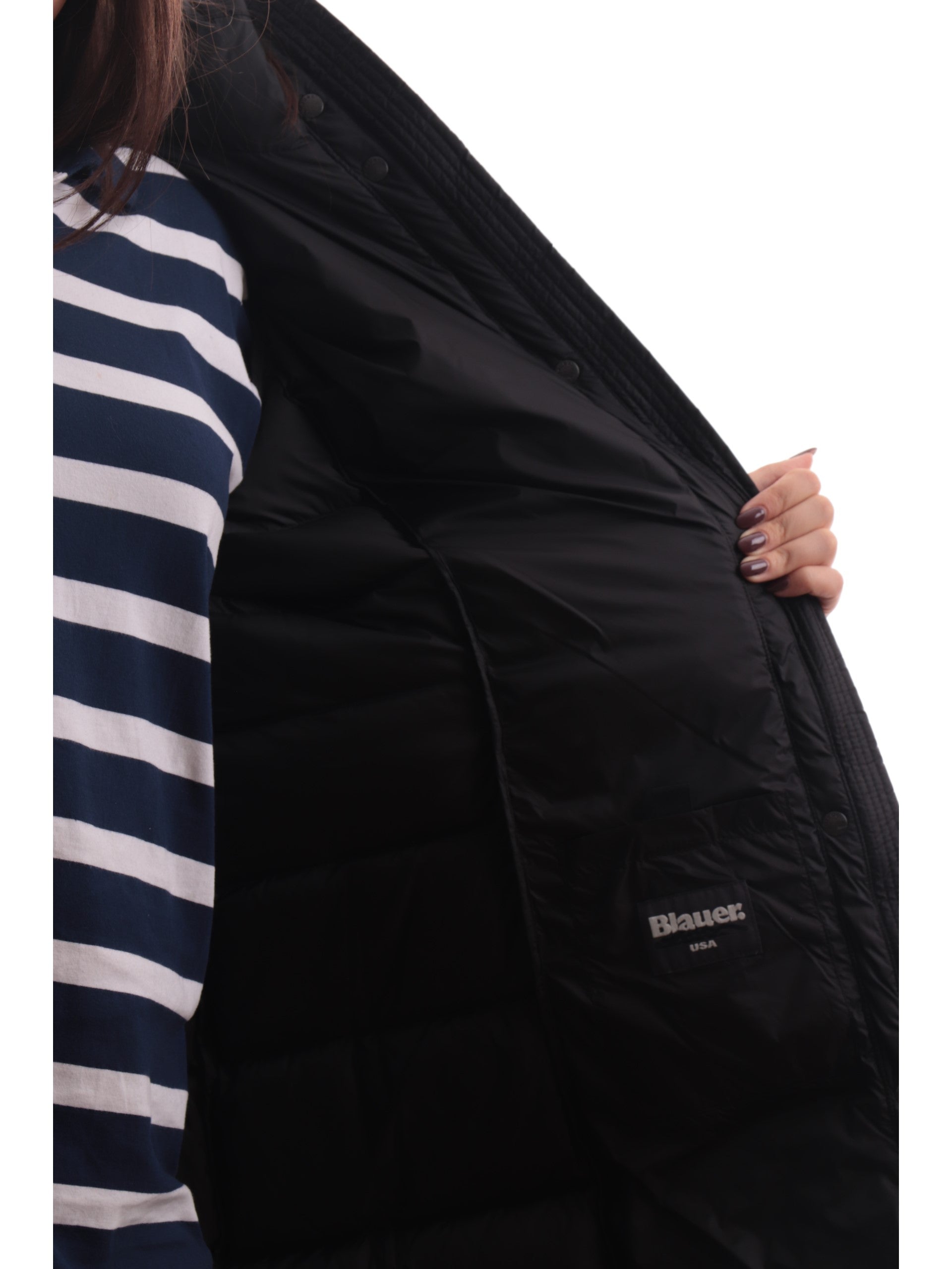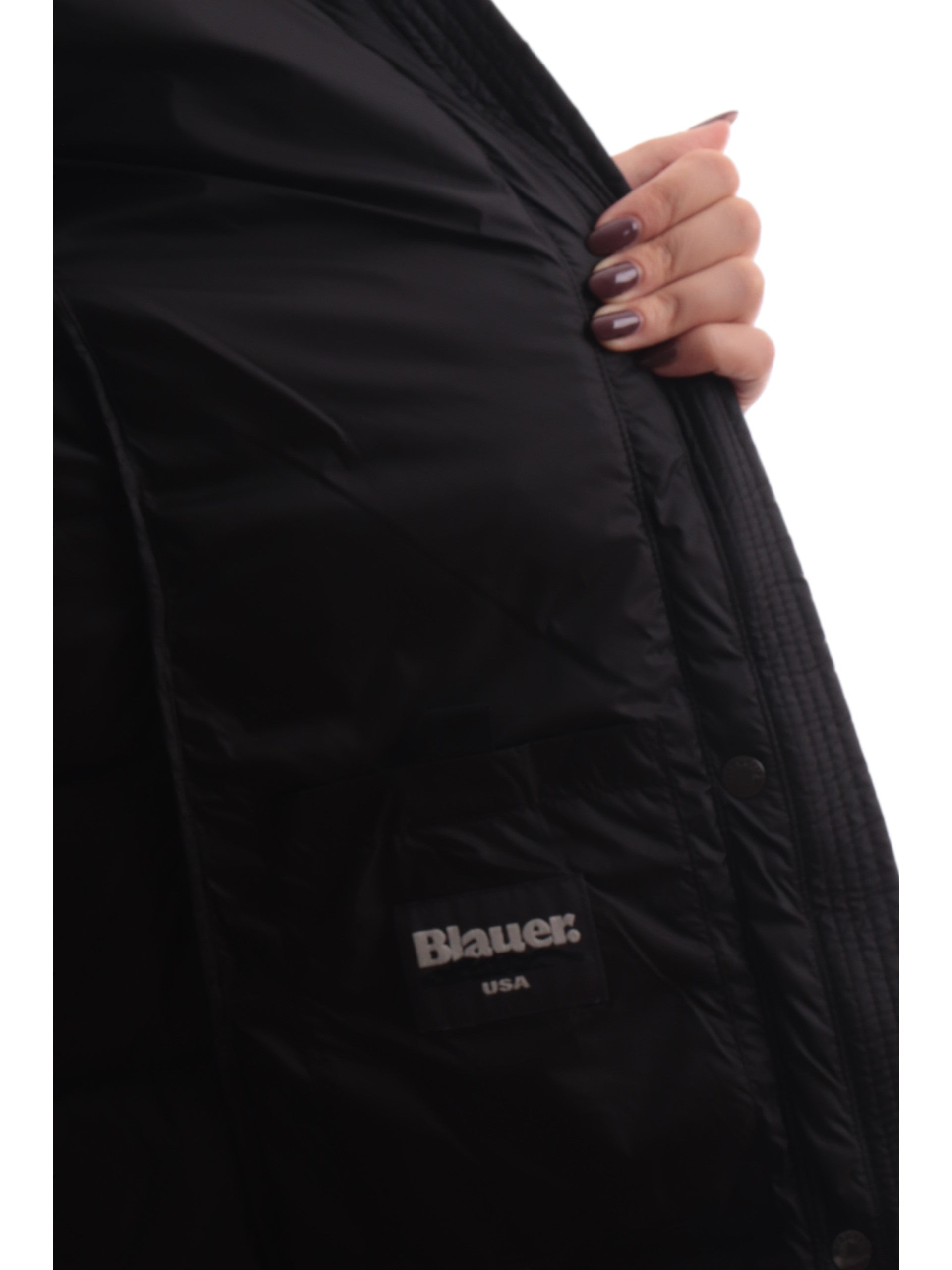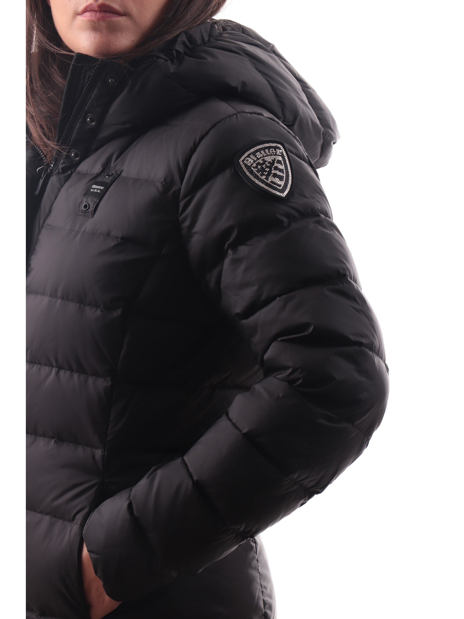 Piumino lungo Blauer da donna realizzato in morbida piuma d'oca con cappuccio . Questo piumino Blauer Lungo AnitaTrench è caratterizzato da logo strass sulla spalla e due tasche interne. La lunghezzaextra garantisce il massimo del calore e del comfort.