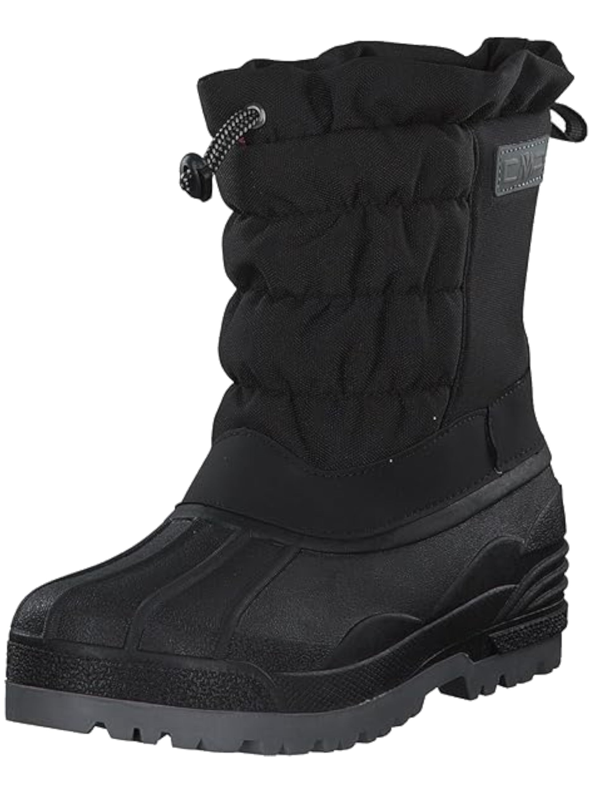 Doposci alti CMP da bambino nere Kids Hanki 3.0 Snow Boot. Queste scarpe CMP sono caratterizzate dalla calzata veloce con coulisse sul gambale per una regolazione ottimale, la galoscia in TPR impermeabile, battistrada a carrarmato per un grip eccellente anche su terreni ghiacciati, fodera interna in calda pelliccetta sintetica e taglio alto per una maggiore protezione della gamba