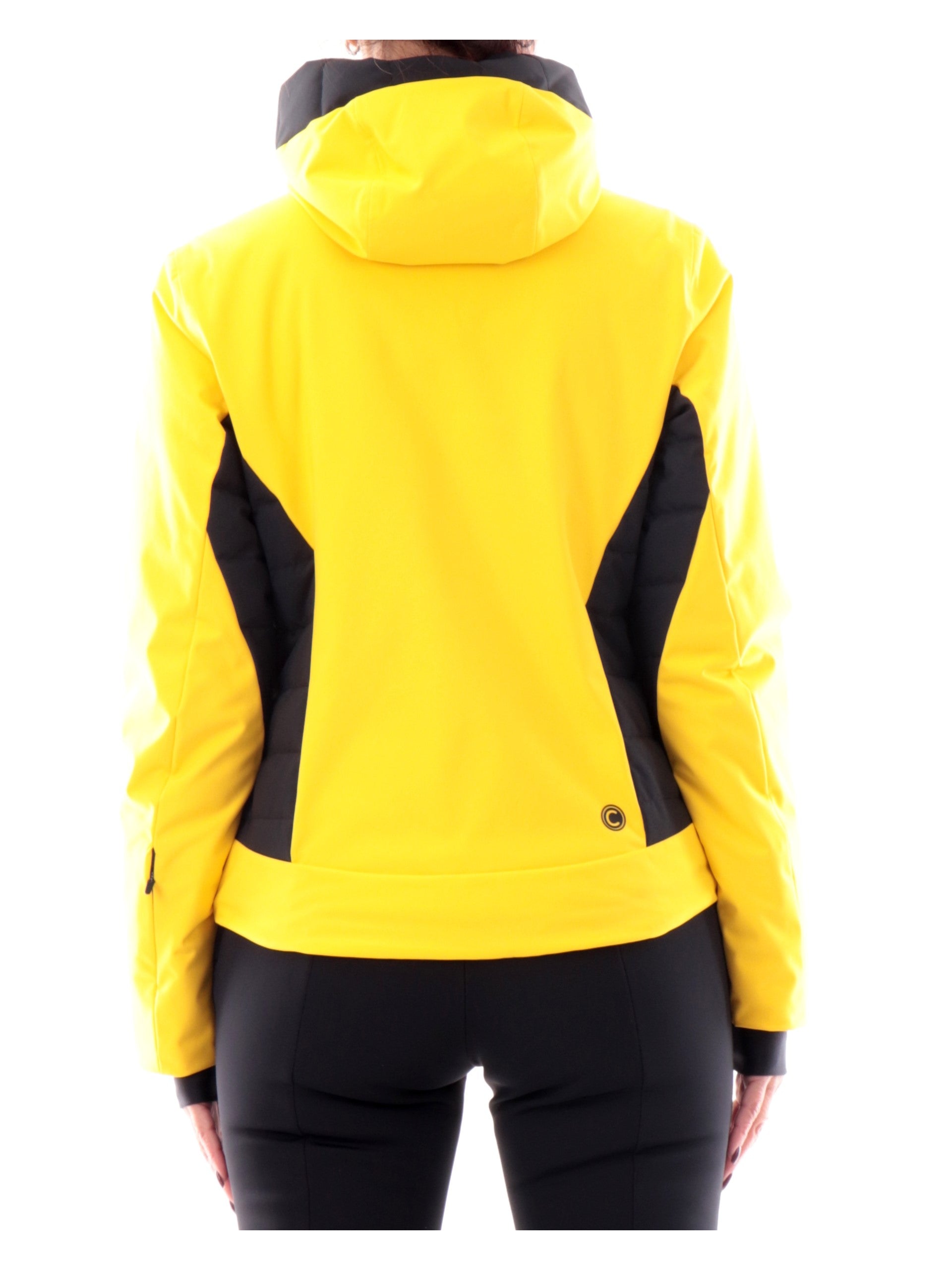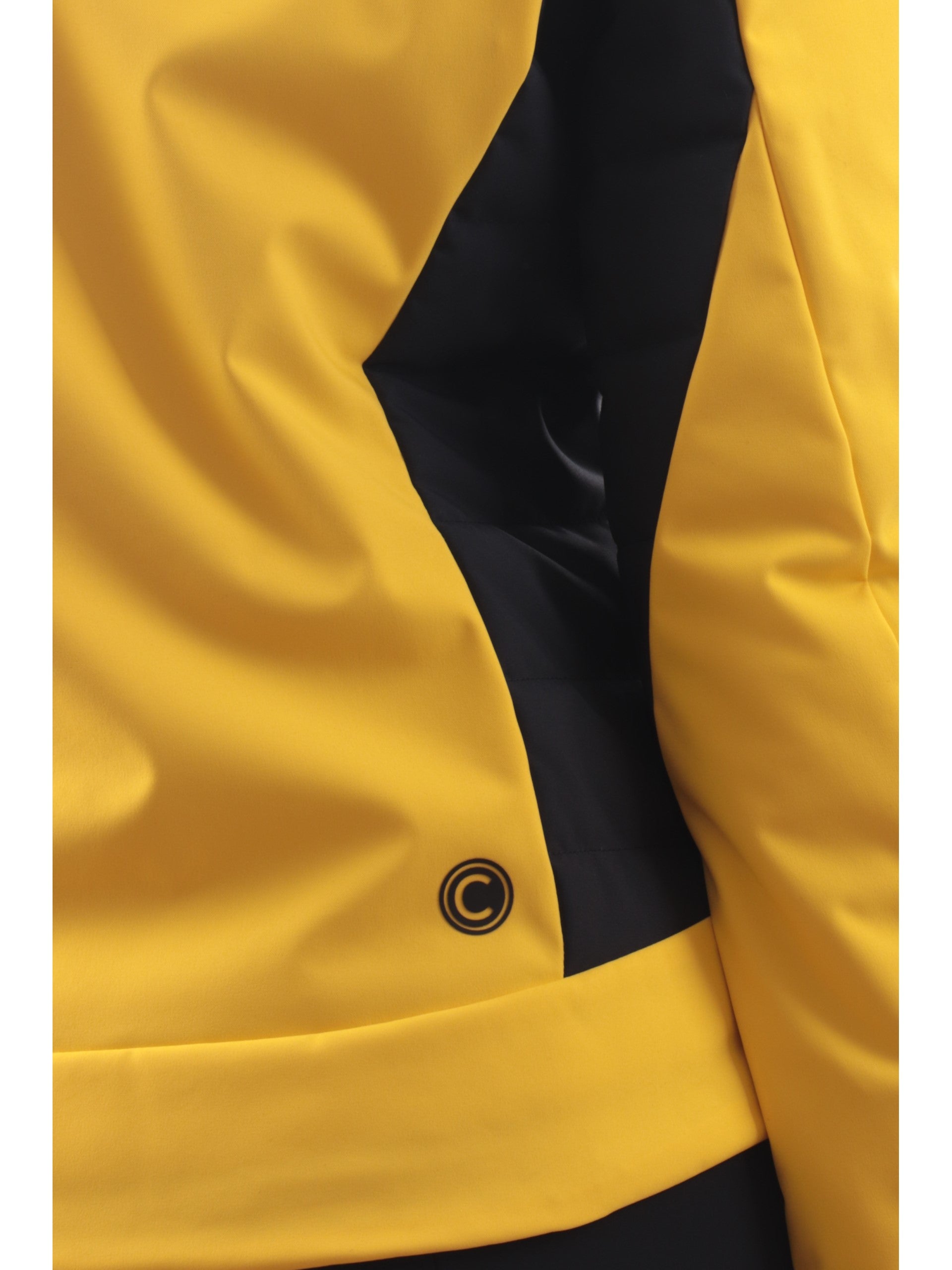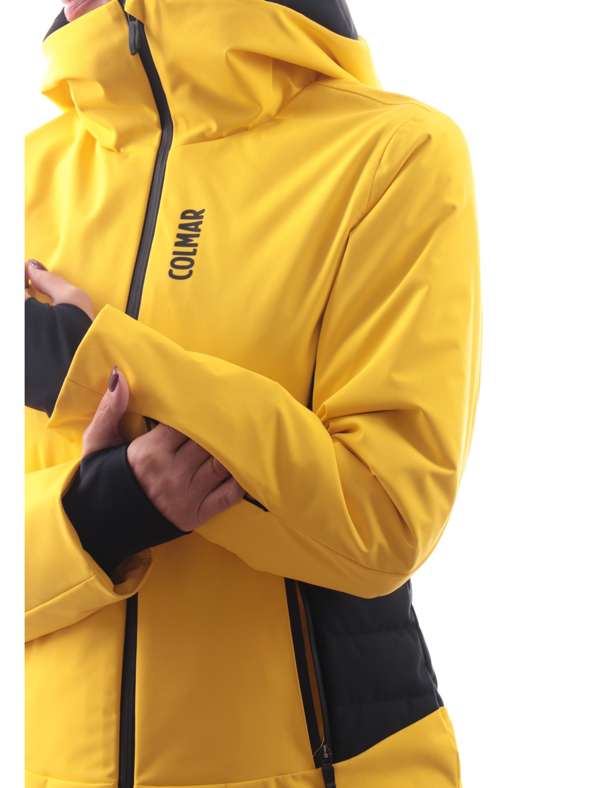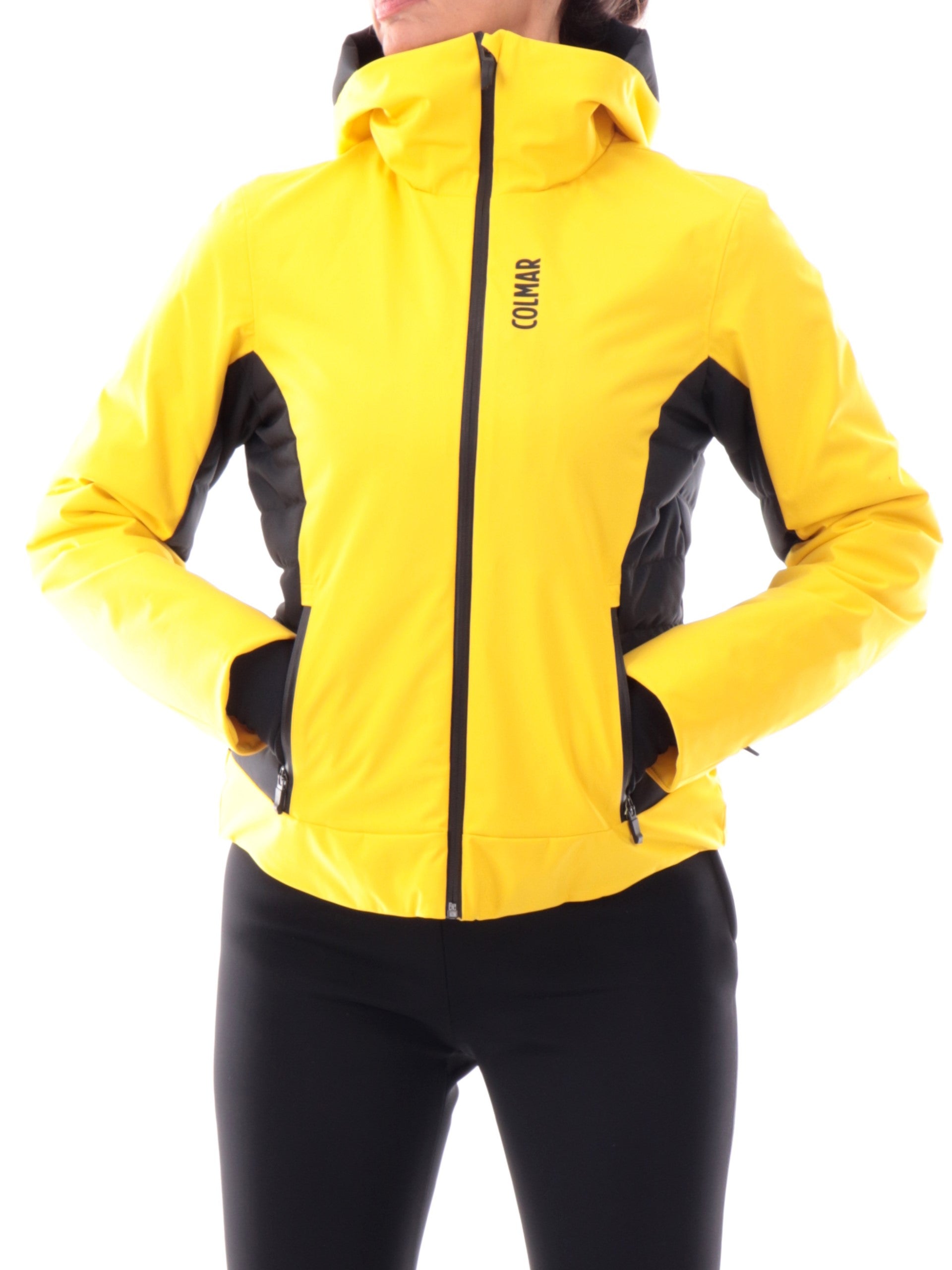 Giacca da sci Colmar gialla da donna unisce stile femminile, comfort e prestazioni tecniche. Realizzata in tessuto stretch meccanico impermeabile e traspirante, è imbottita con ovatta Clo Univa Eco, mentre gli inserti lungo i fianchi sono in Microflock Re-Padding effetto piuma. Una combinazione che garantisce calore, leggerezza e libertà di movimento, perfetta per affrontare al meglio le giornatein pista. Questa giacca Colmar da donna è caratterizzata dal cappuccio fisso con coulisse, chiusura full zip, due tasche laterali con zip, gancio portachiavi inserito nella tasca, polsi interni in stretch, fondo regolare con coulisse e due tasche interne