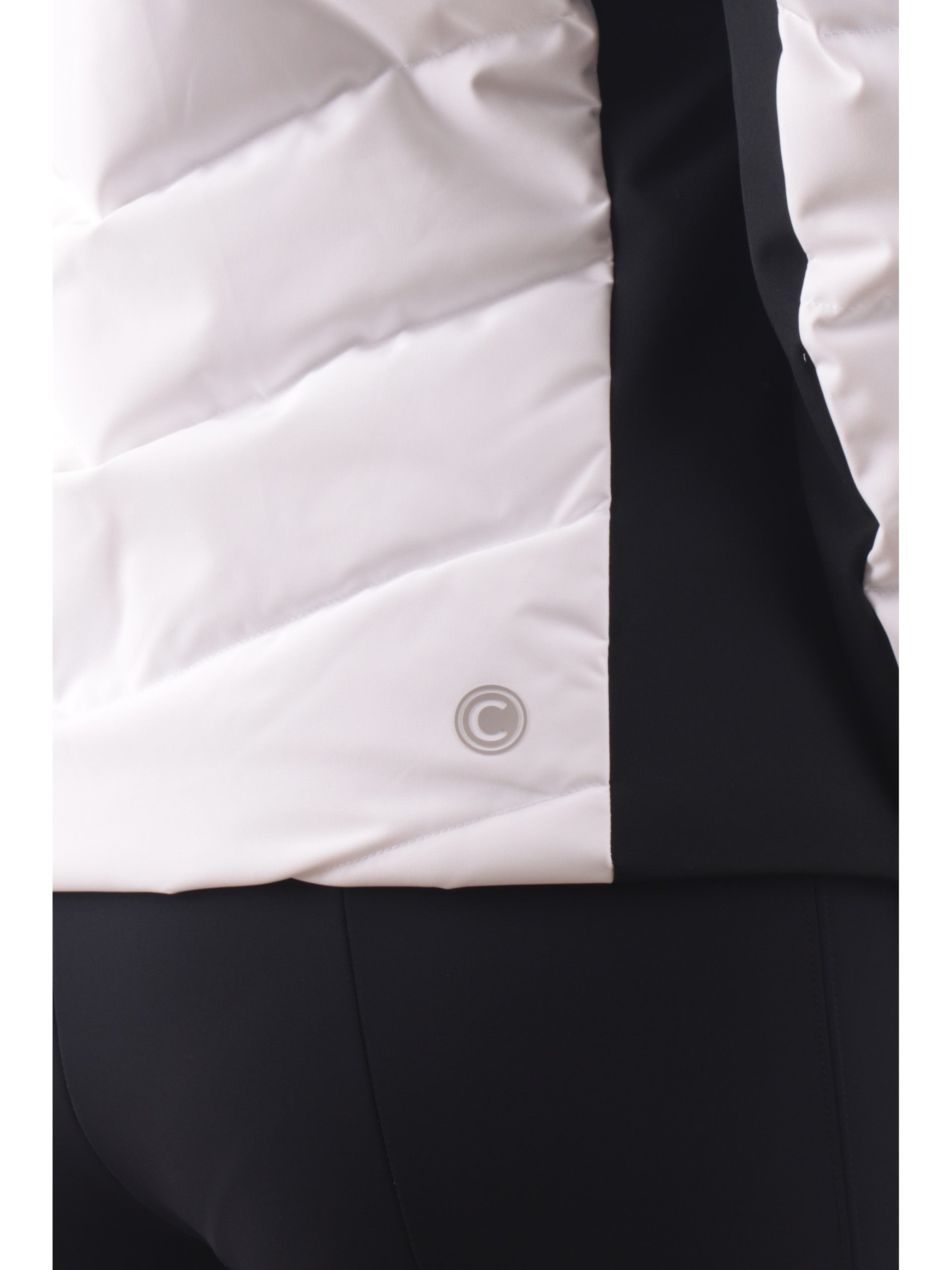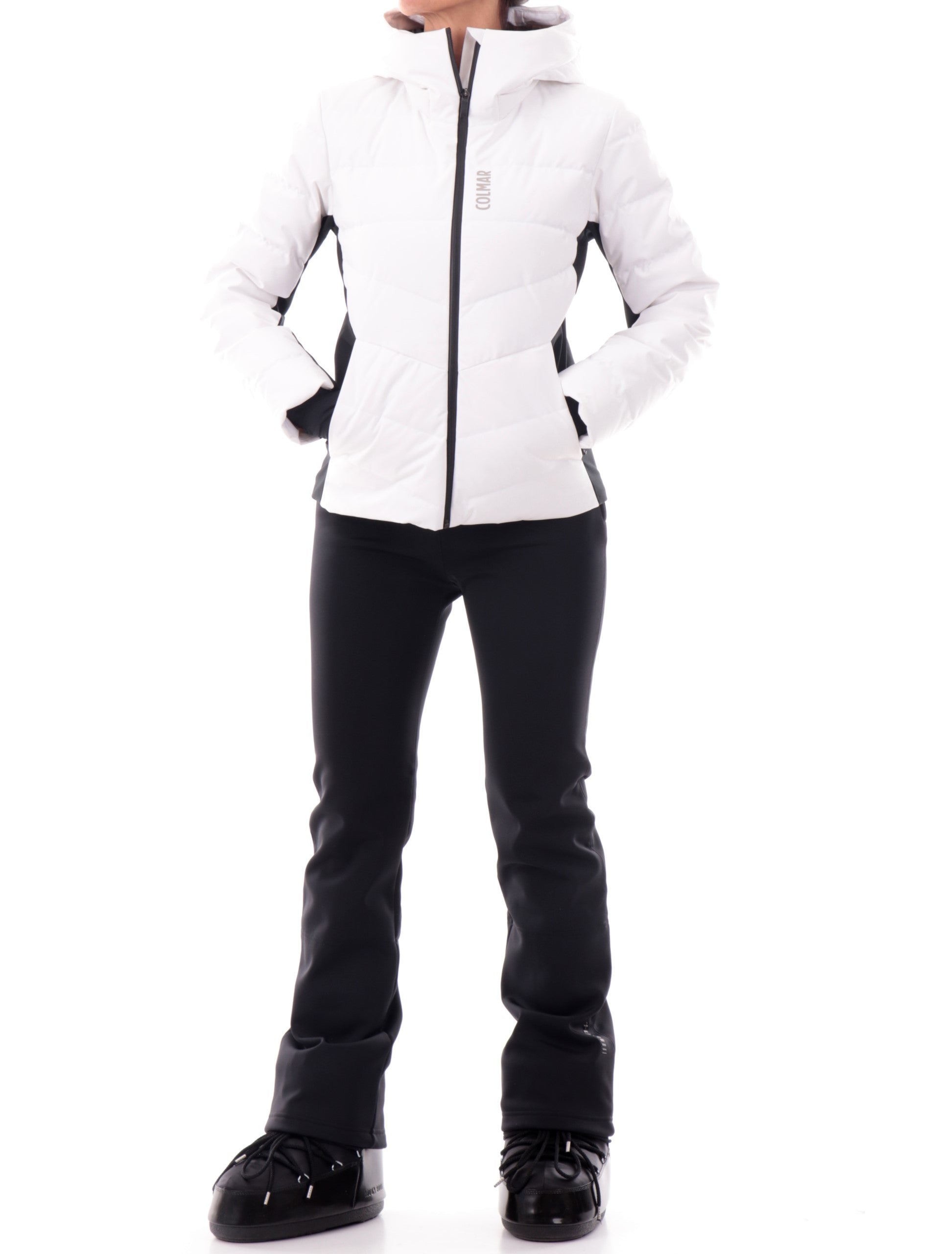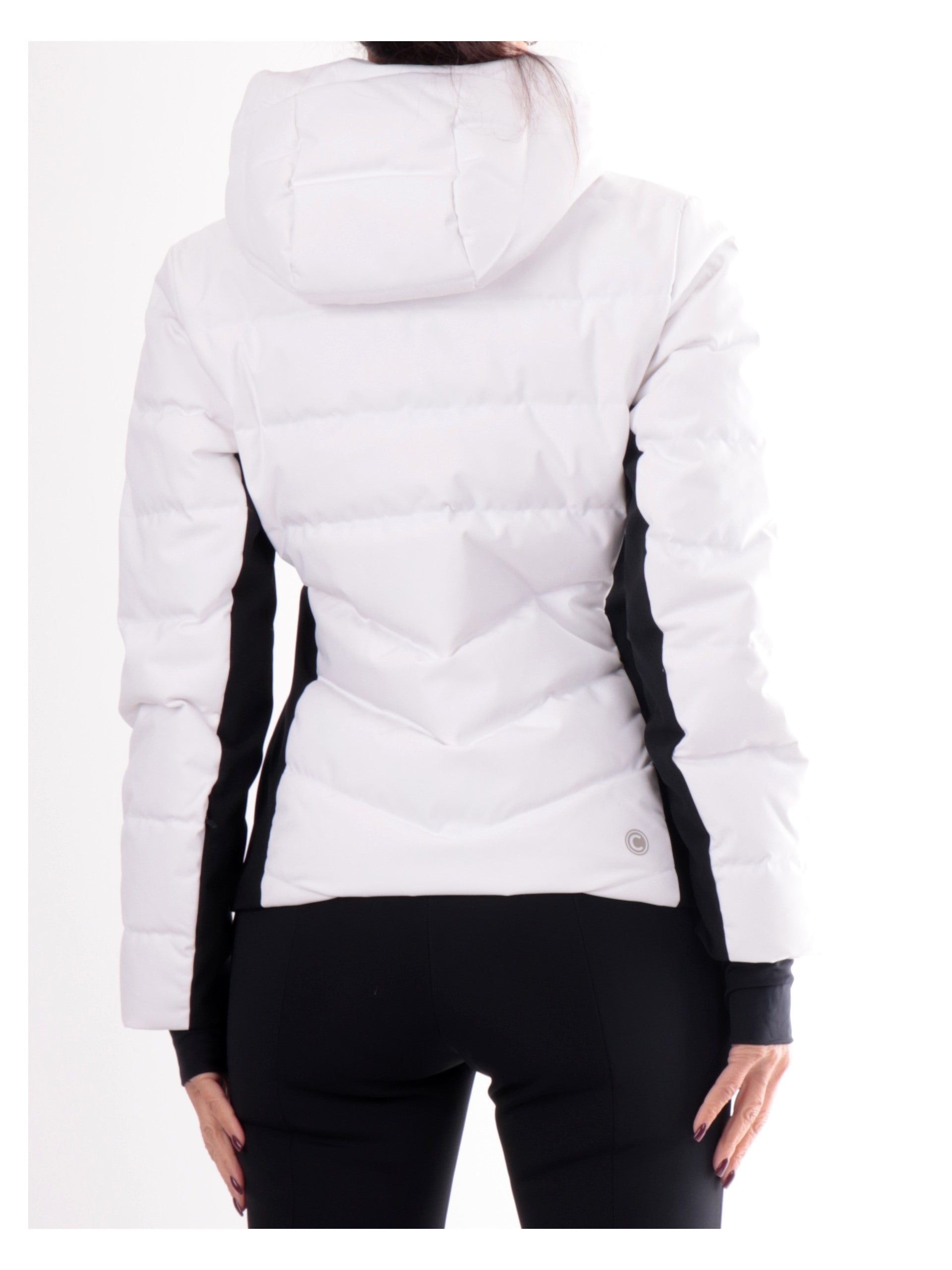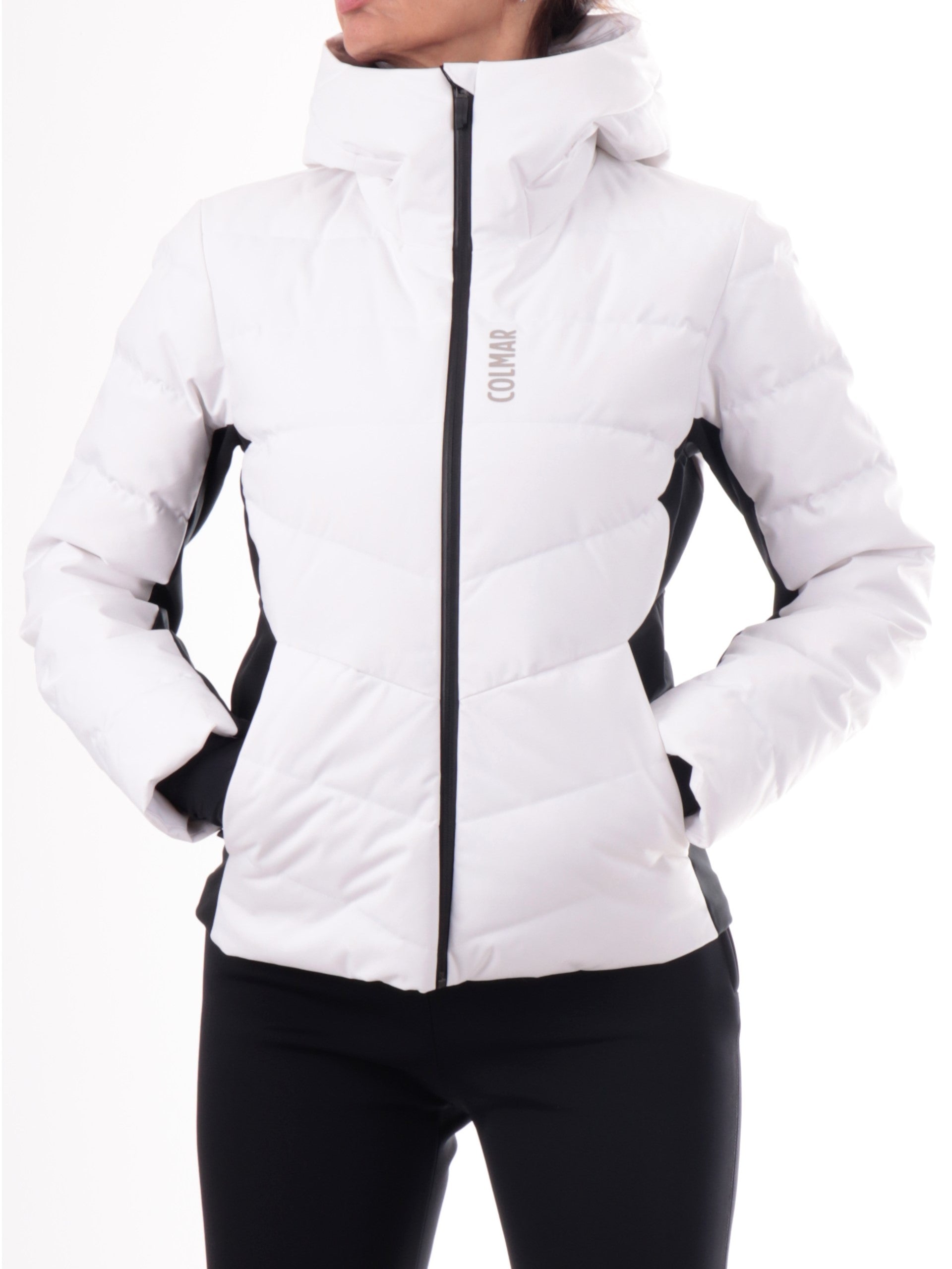 Questo giubbino bianco da sci Colmar da donna realizzato in tessuto stretch meccanico laminato, impermeabile e traspirante, questa giacca da sci è arricchita da inserti lisci in softshell elasticizzato sotto le maniche e lungo i fianchi, per una vestibilità confortevole e dinamica. L’imbottitura in piuma idrorepellente garantisce calore elevato e prestazioni eccellenti anche nelle giornate più fredde. Questo giubbino Colmar è caratterizzato dal cappuccio fisso con coulisse, colloalto, chiusura full zip centrale, due tasche laterali con zip, gancio portachiavi inserito nella tasca, polsi interni in stretch, inserti in tessuto stretch, fondo regolare e due tasche interne