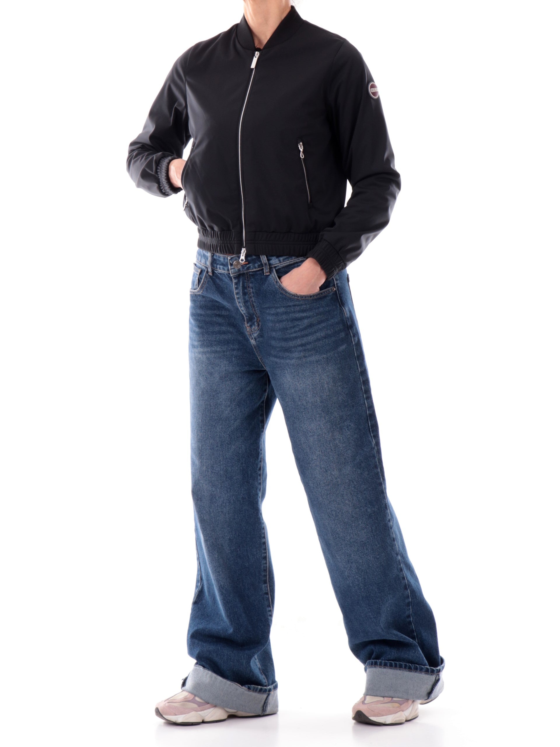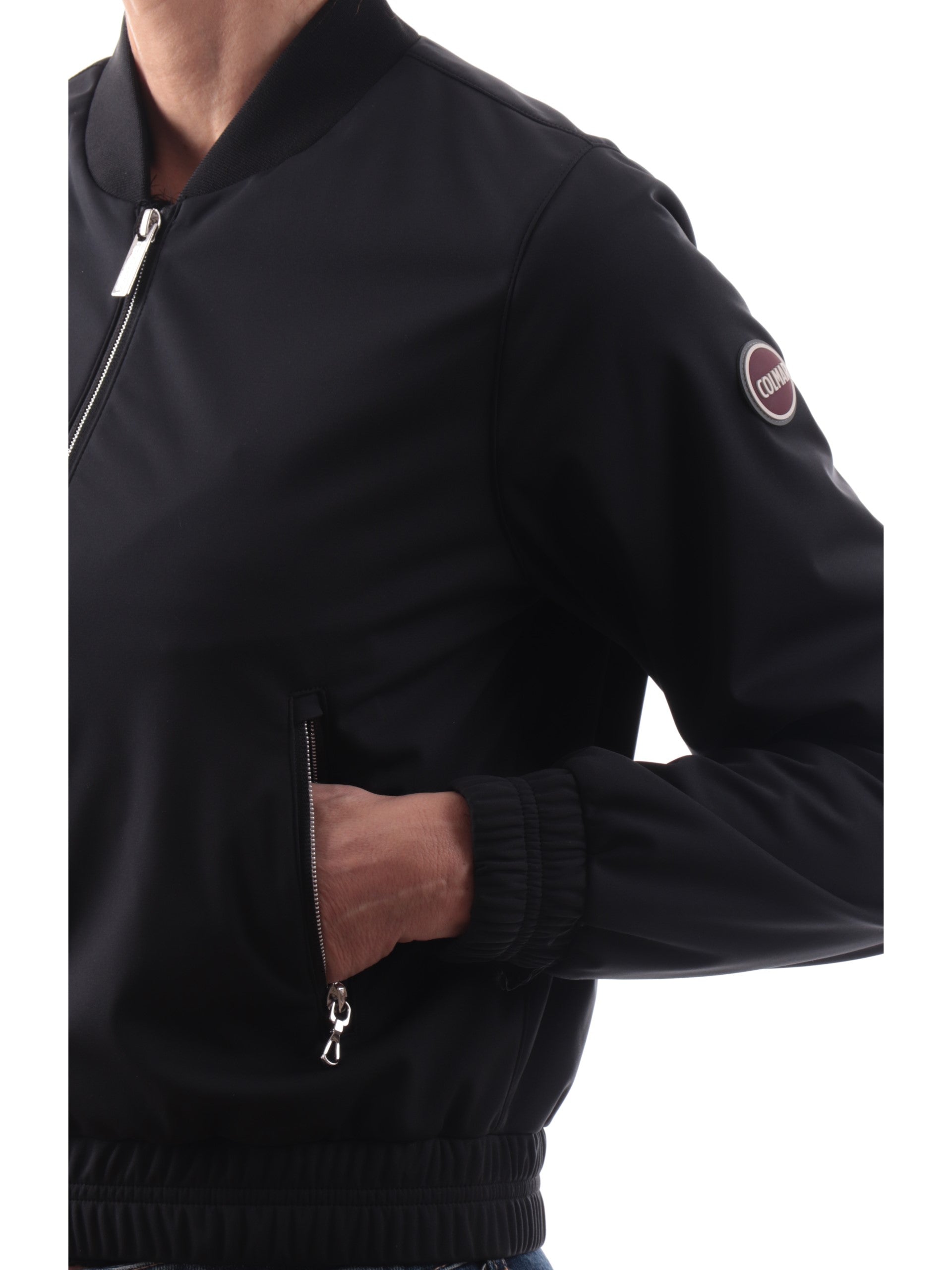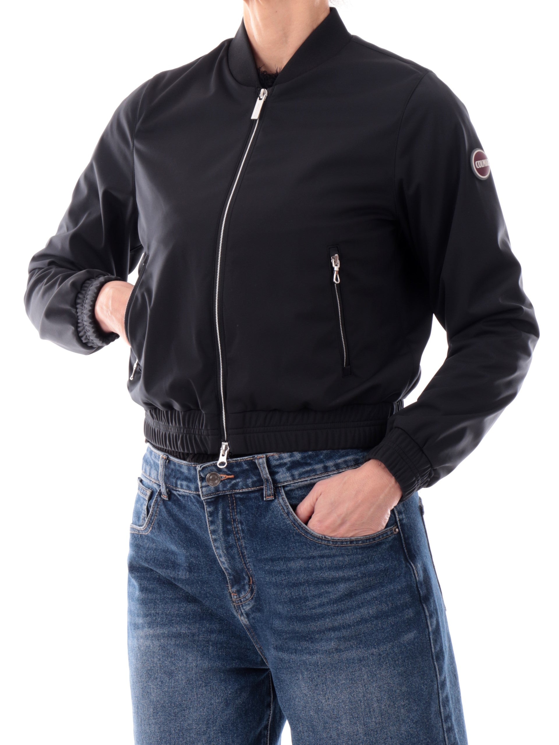 Giacca bomber Colmar nera da donna. Questo bomber leggero e versatile da donna è realizzato in softshell. Questa giacca sportiva è caratterizzata dalla chiusura centrale full zip con doppio cursore, due tasche laterali con zip, polsini e fondo elasticizzati. Questo giubbino Colmar è traspirante e protegge dalla pioggia, perfetto per i look quotidiani.