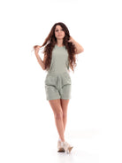 Deha Bermuda Salbeigrüne Baumwollpopeline-Shorts für Damen A006271-2616