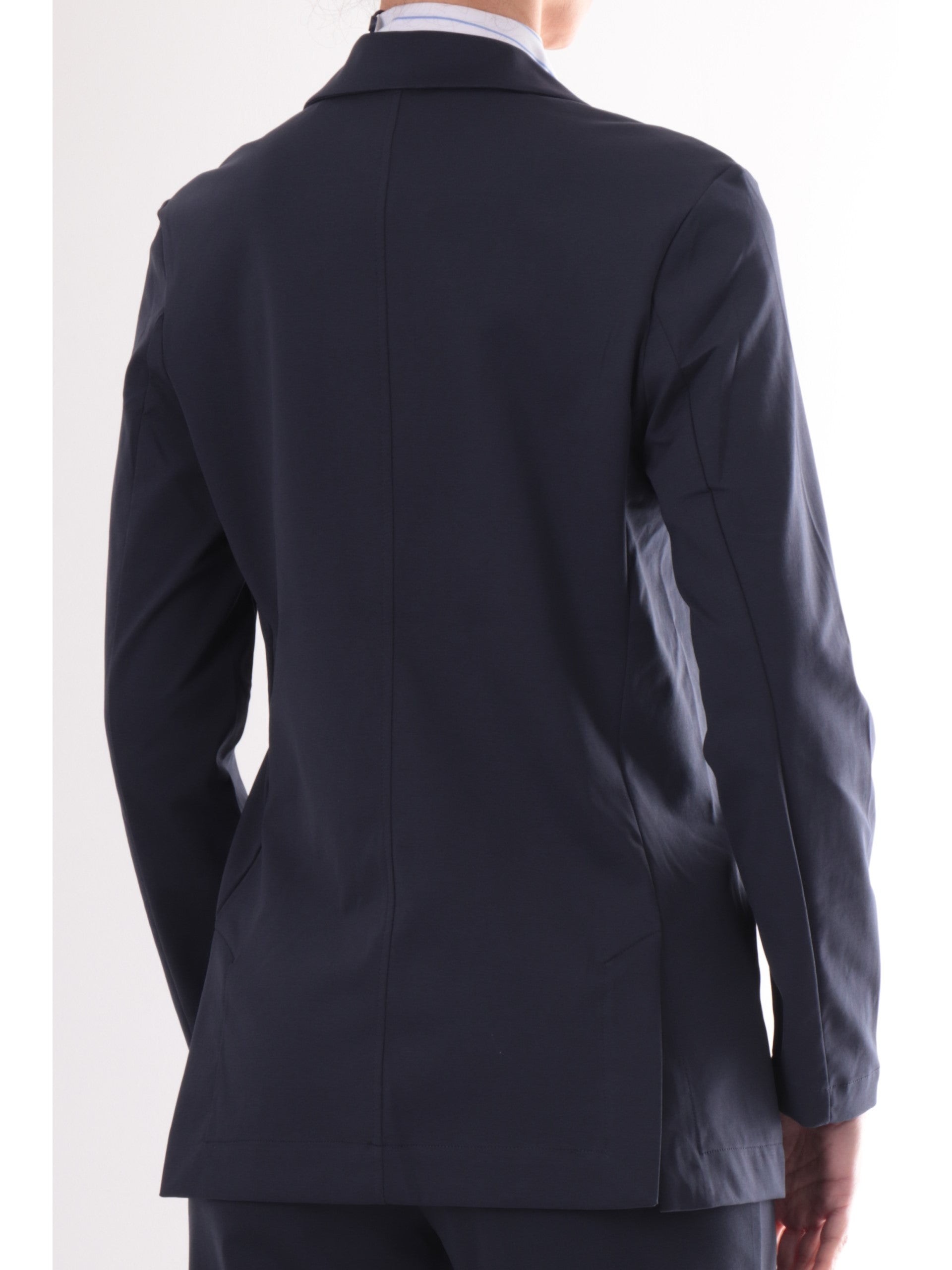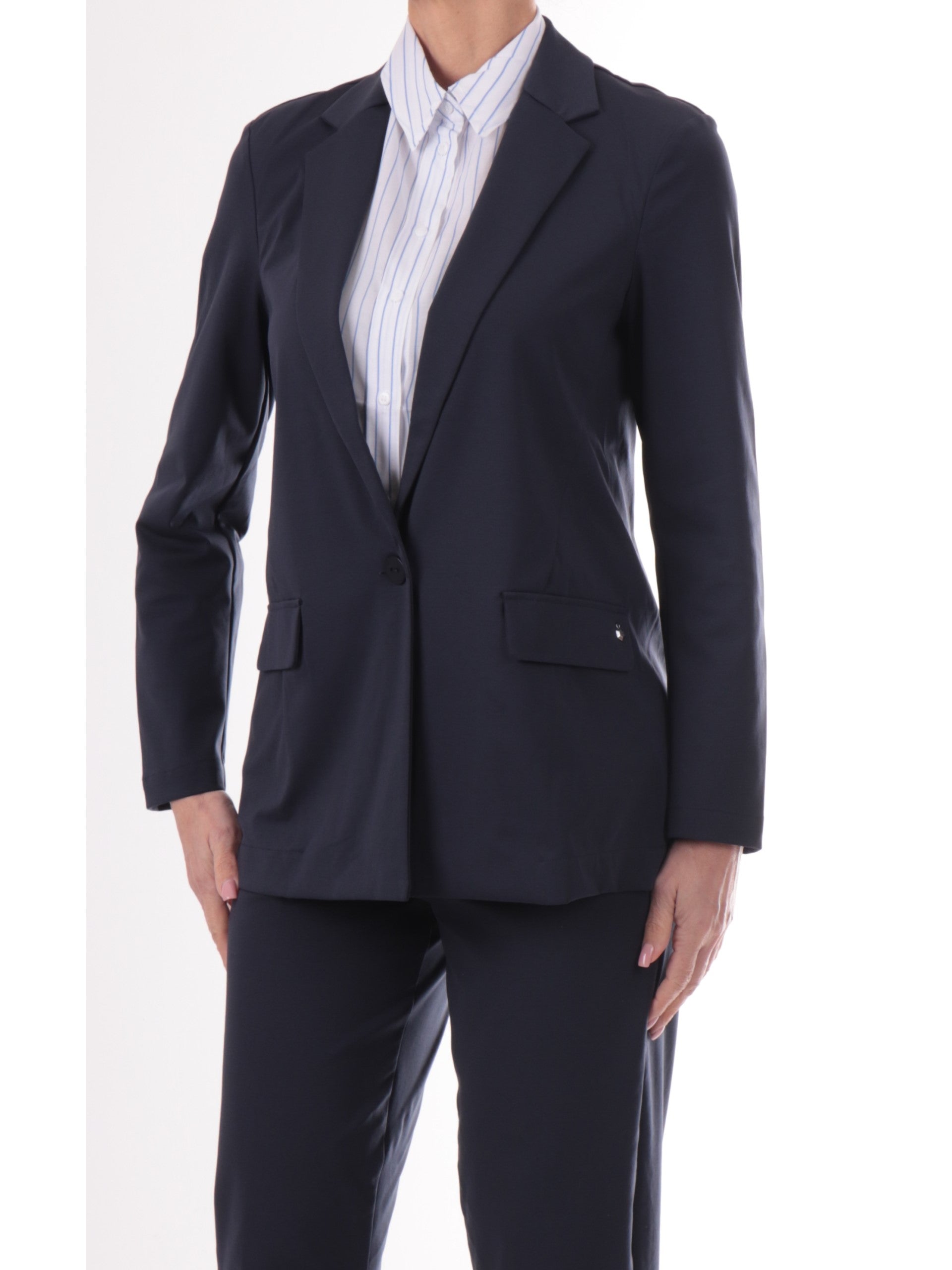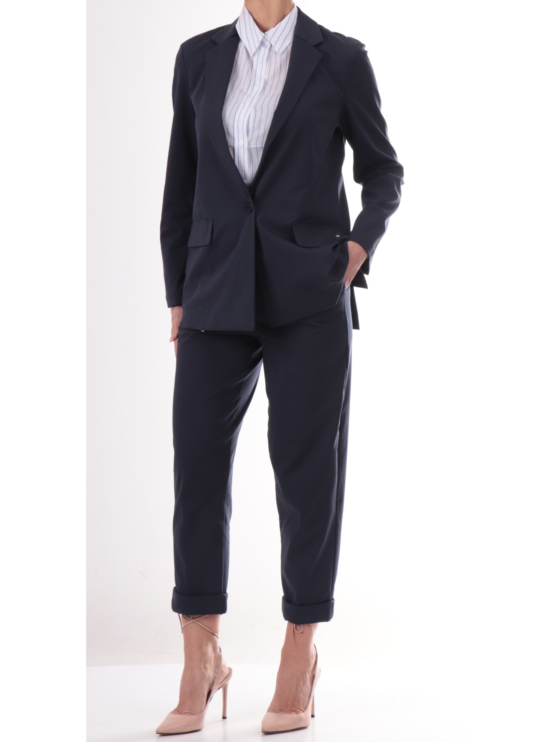 Giacca Ragno da donna blu monopetto Blazer. Questa giacca blu da donna, realizzata in cotone, è caratterizzata dalla chiusura a bottoni e due taschini frontali a filo con ciondolo logo Ragno.