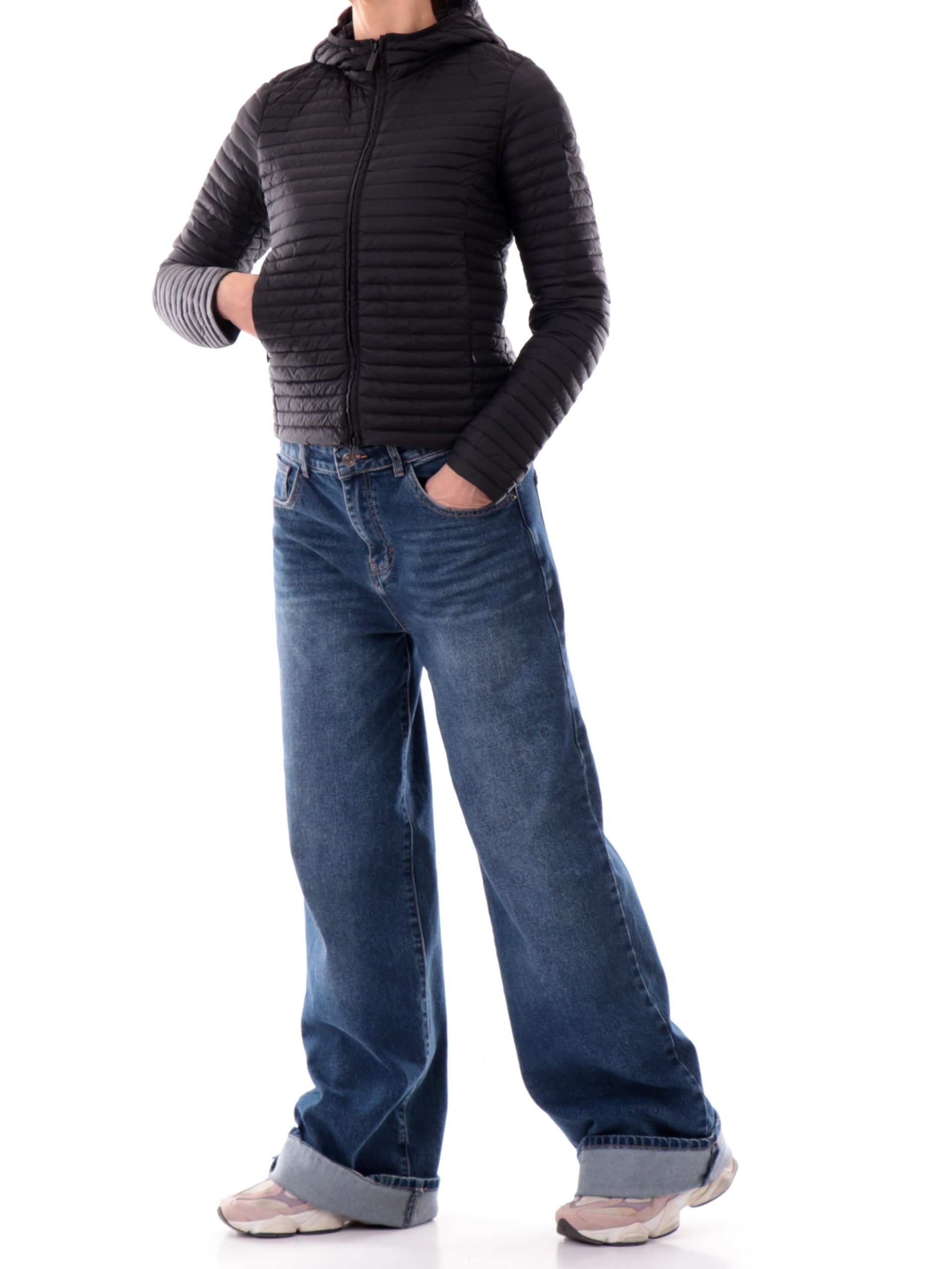 Piumino 100 grammi nero Colmar da donna. Questo piumino Colmar nero ha il cappuccio fisso, la chiusura full zip con doppio cursore, il patch gommato del brand applicato sulla manica sinistra, due tasche laterali con chiusura zip e polsini e fondo regolari. Ideale per le giornate di primavera e le sere d’estate. All'interno troviamo un sacchetto per riporre il giubbino