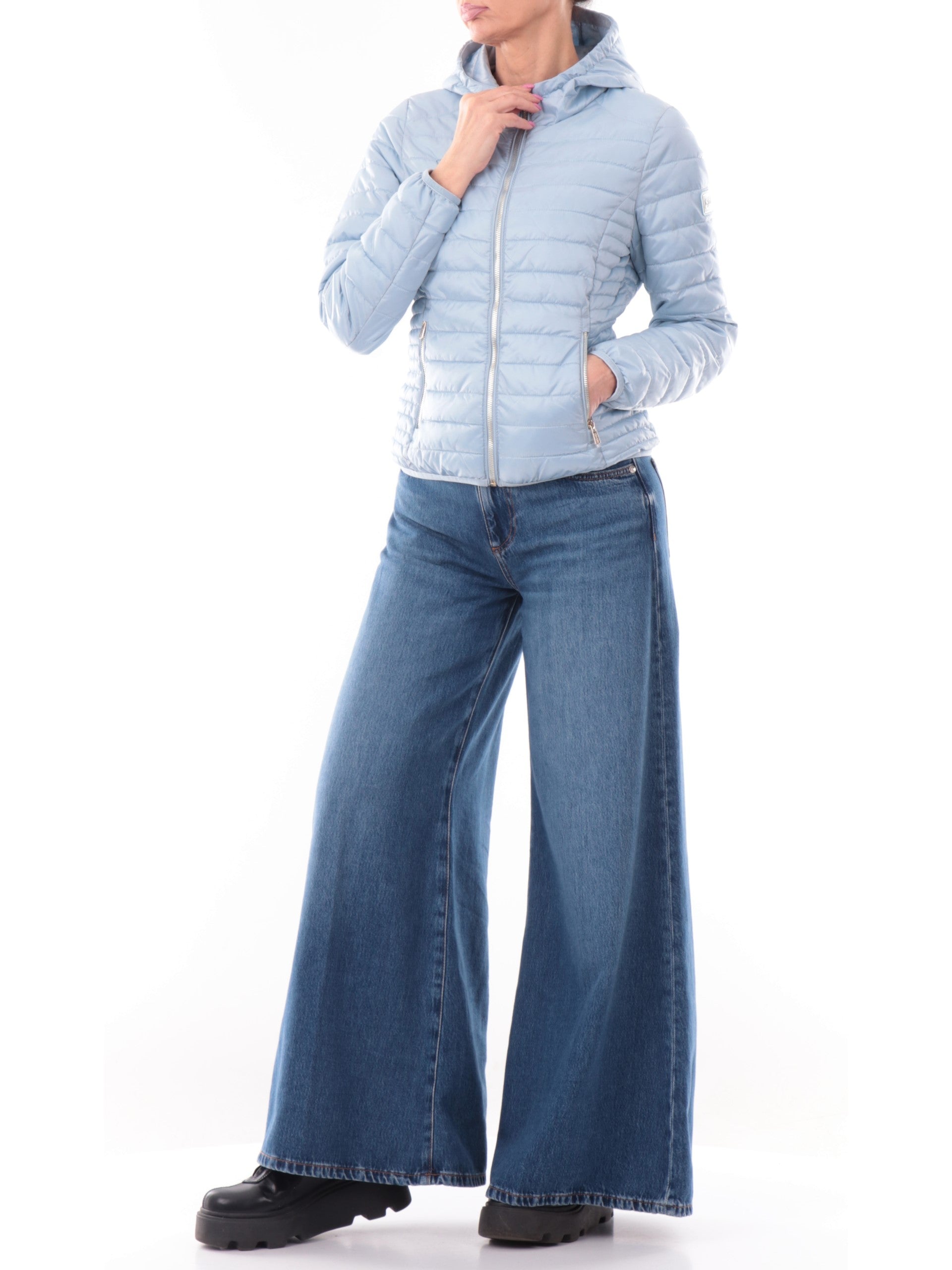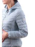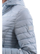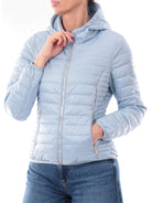 Piumino trapuntato celeste da donna con cappuccio fisso Yes Zee J418M5000633