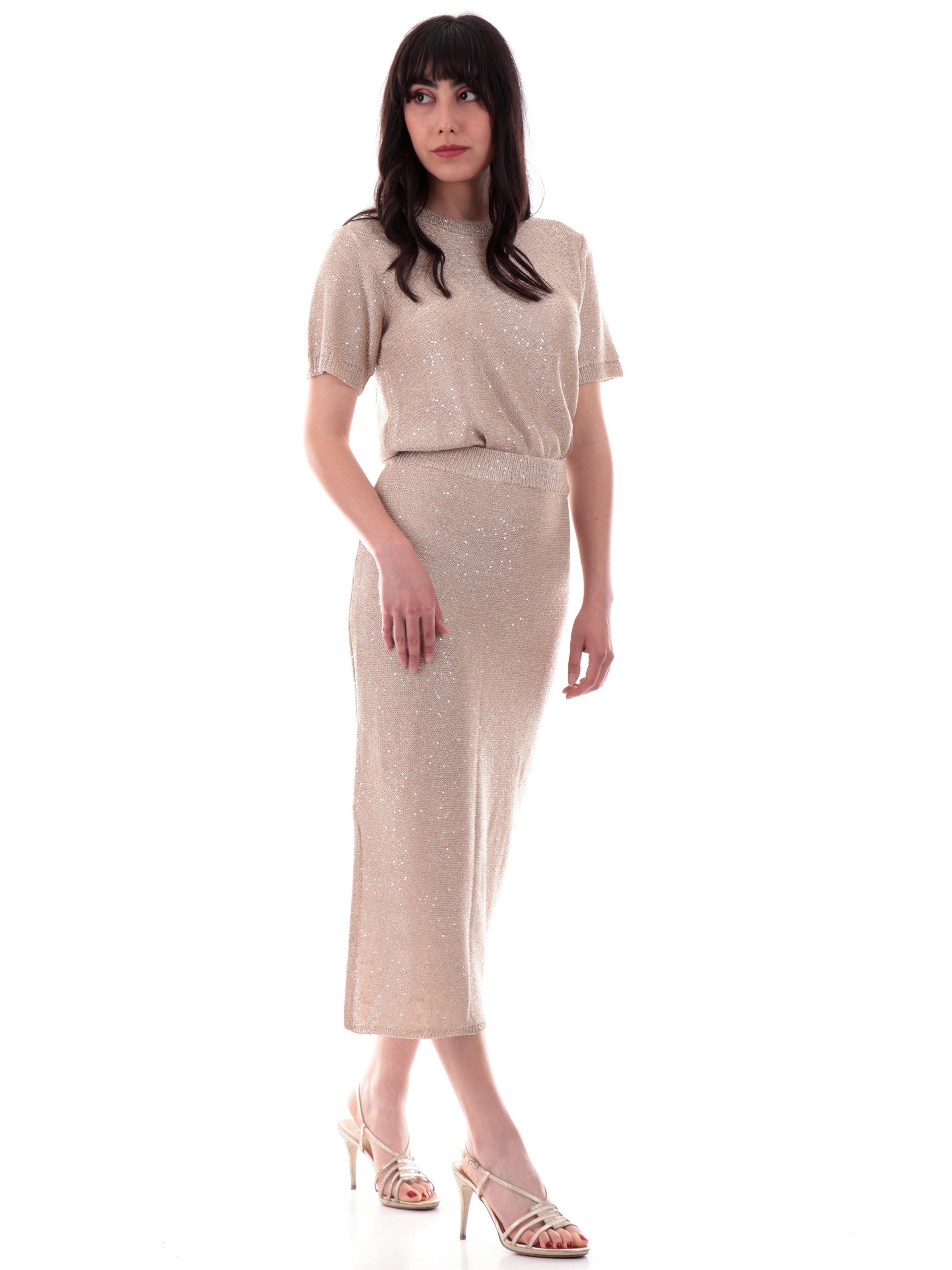Gonna lunga Tiffosi beige e oro con piccole paillets oro 10059944168