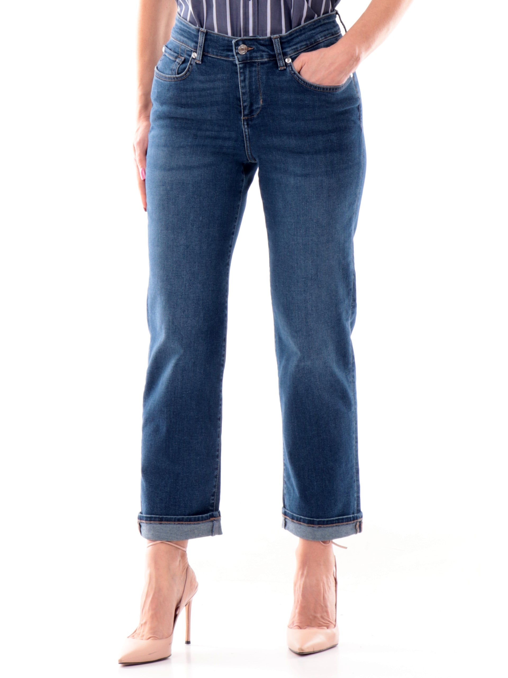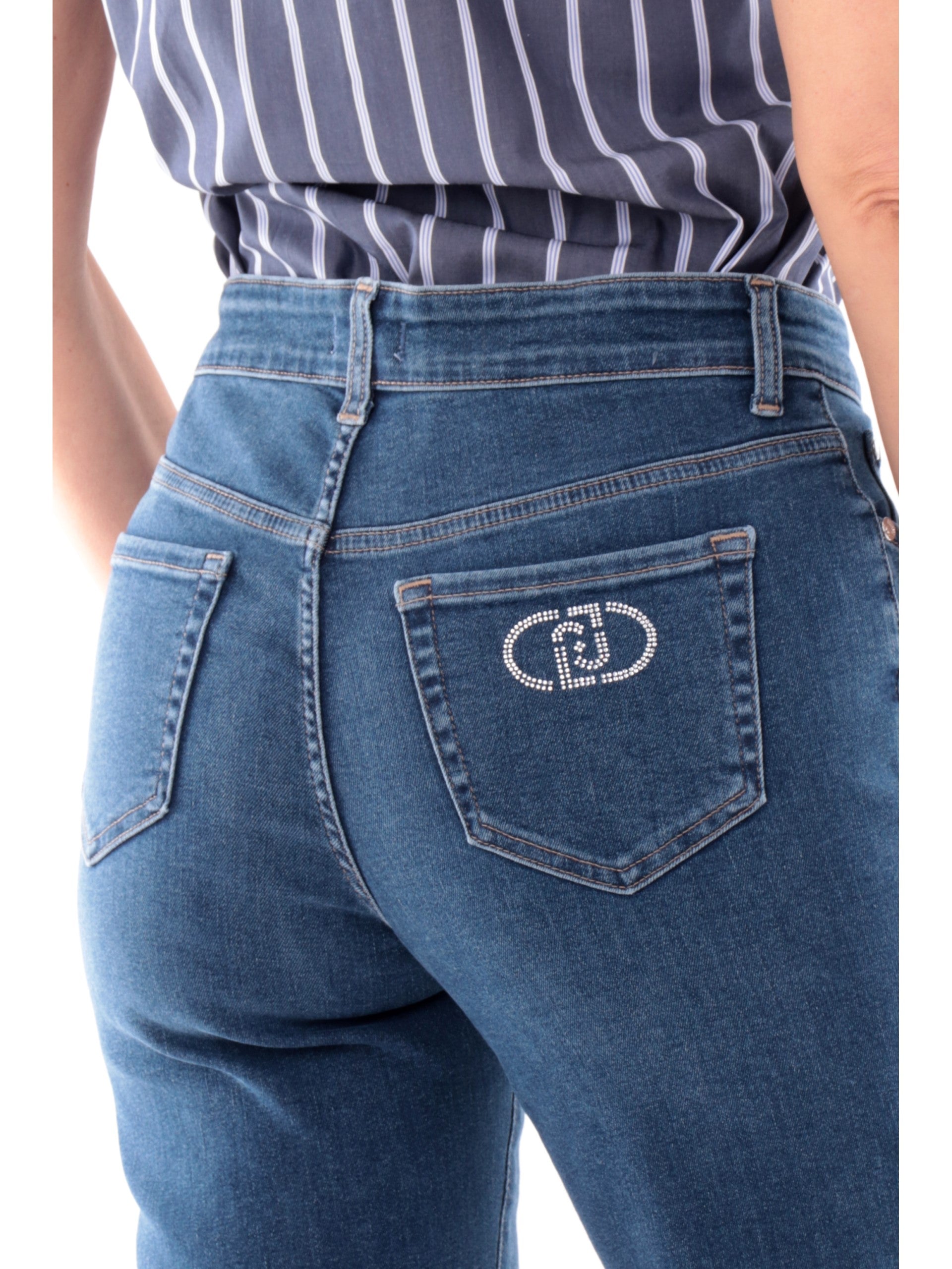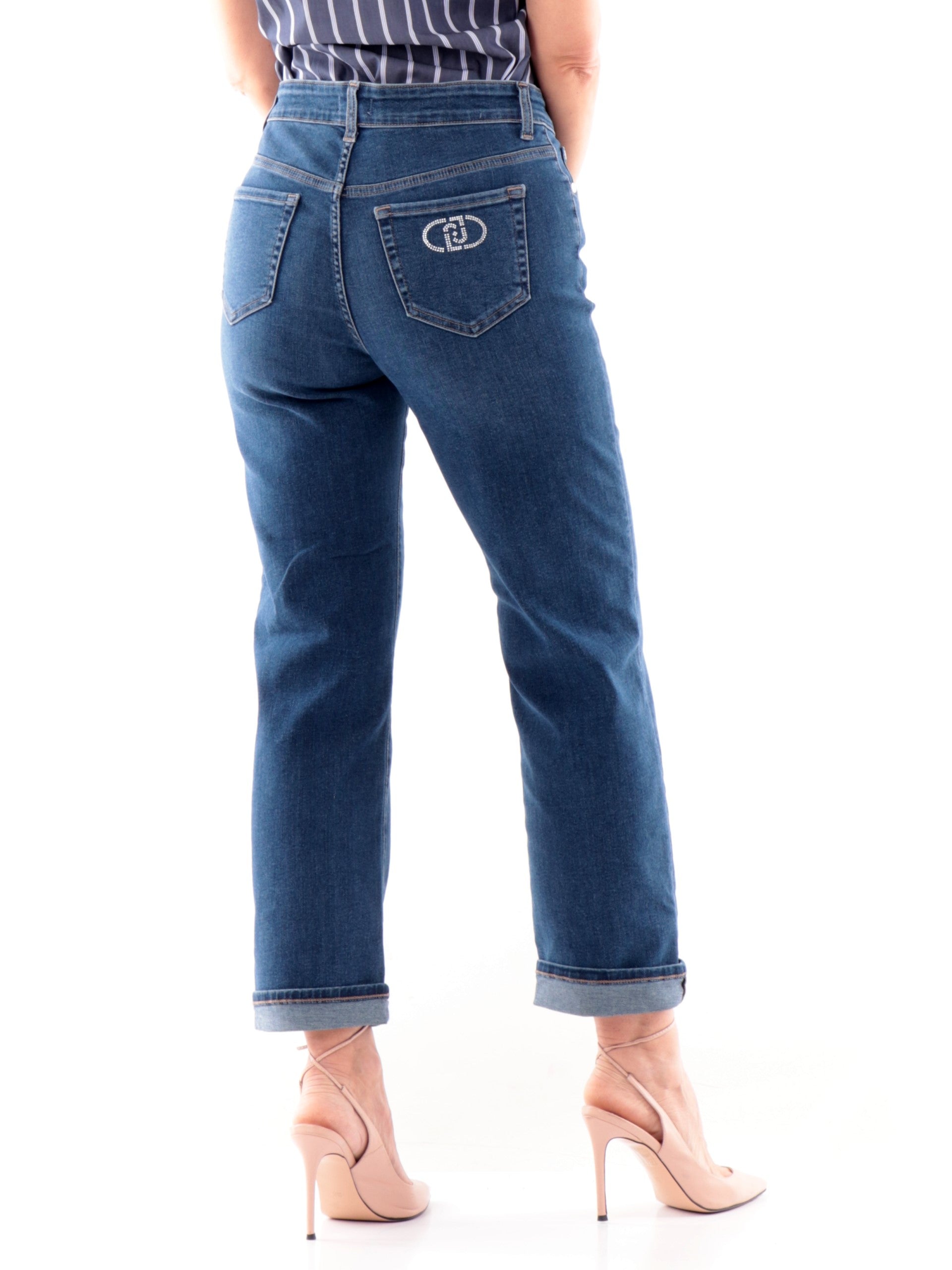 Jeans Liu Jo da donna Loose con logo in strass. Questi jeans Liu Jo, realizzati in cotone, hanno la chiusura con bottone più zip, due tasche laterali aperte di cui la destra con taschino, due tasche posteriori con logo in strass e il fondo regolare con la gamba dritta. Questi Jeans da donna si distinguono grazie alla caratteristica dei strass e sono perfetti per un look casual ed elegante,
