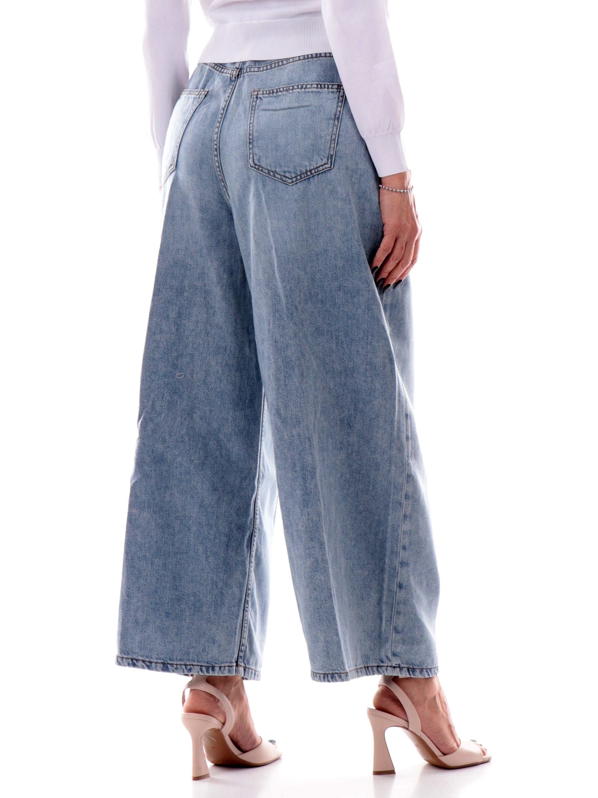 Jeans palazzo Yes Zee blu da donna con cintura rimovibile P308W362