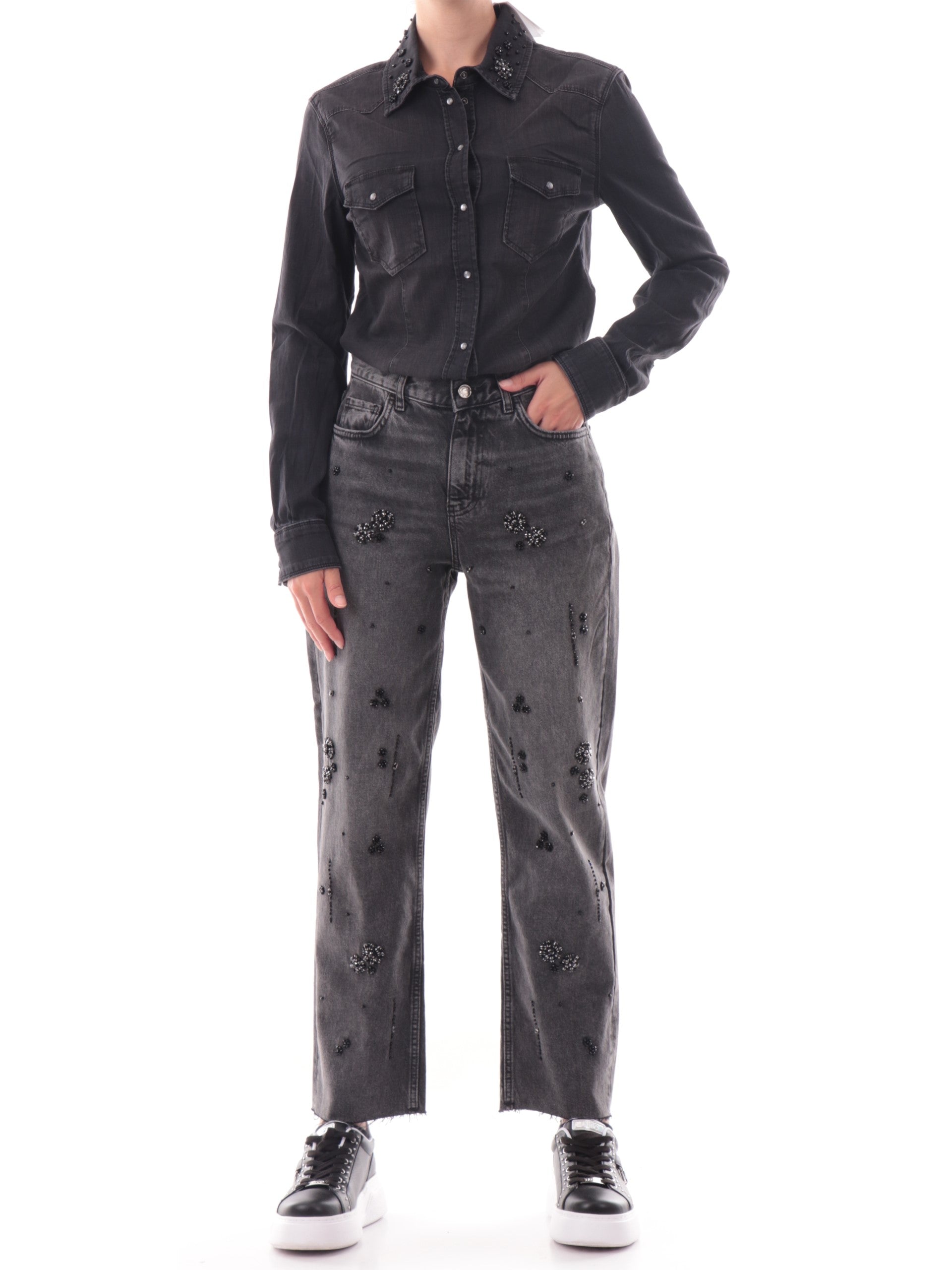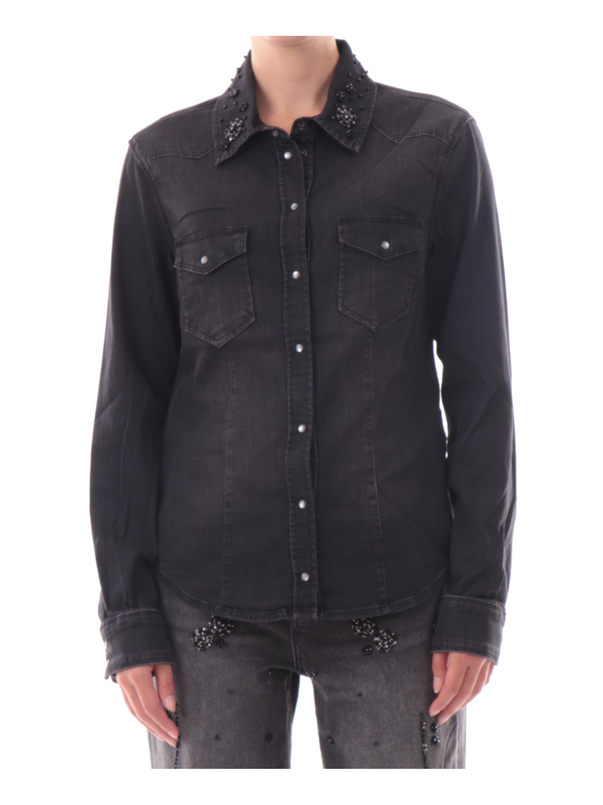 Camicia Liu Jo realizzata in jeans nero con strass e perline UF5198D405187467