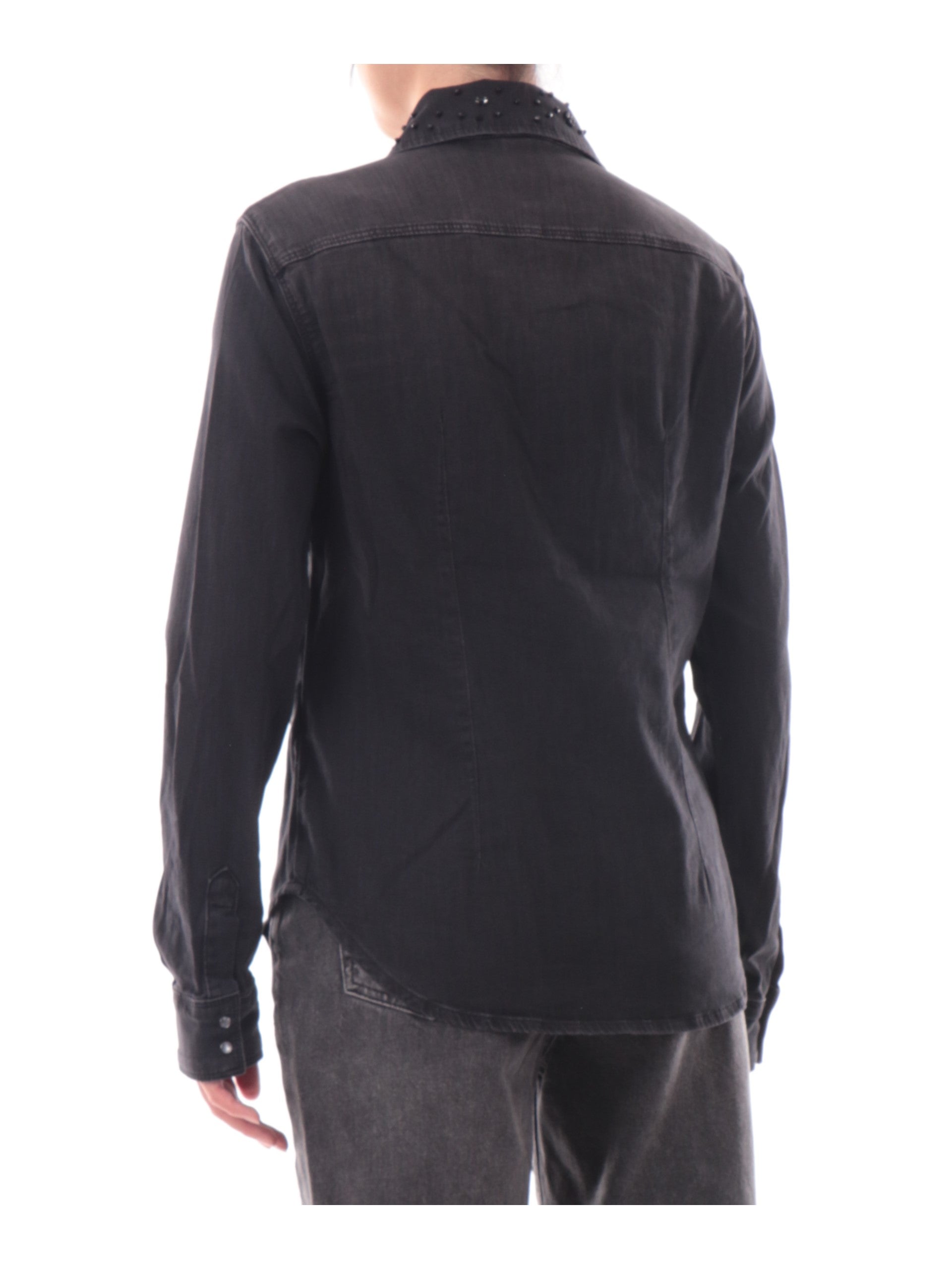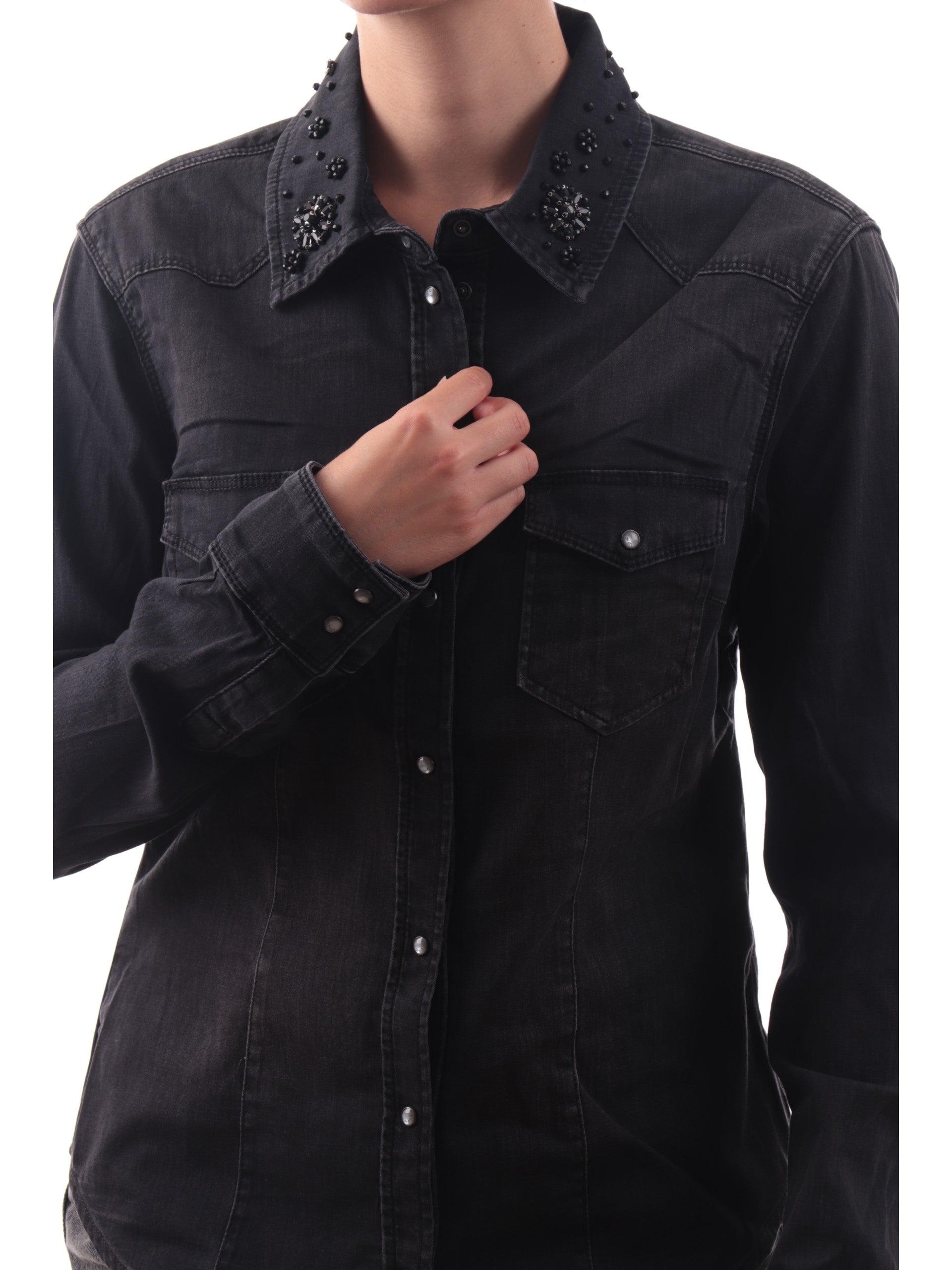 Camicia Liu Jo realizzata in jeans nero con strass e perline sul colletto da donna con polsini e bottone gioiello sul colletto . Questa camicia donna Liu Jo jeans è perfetta per dare un tocco di stile ai tuoi outfit.