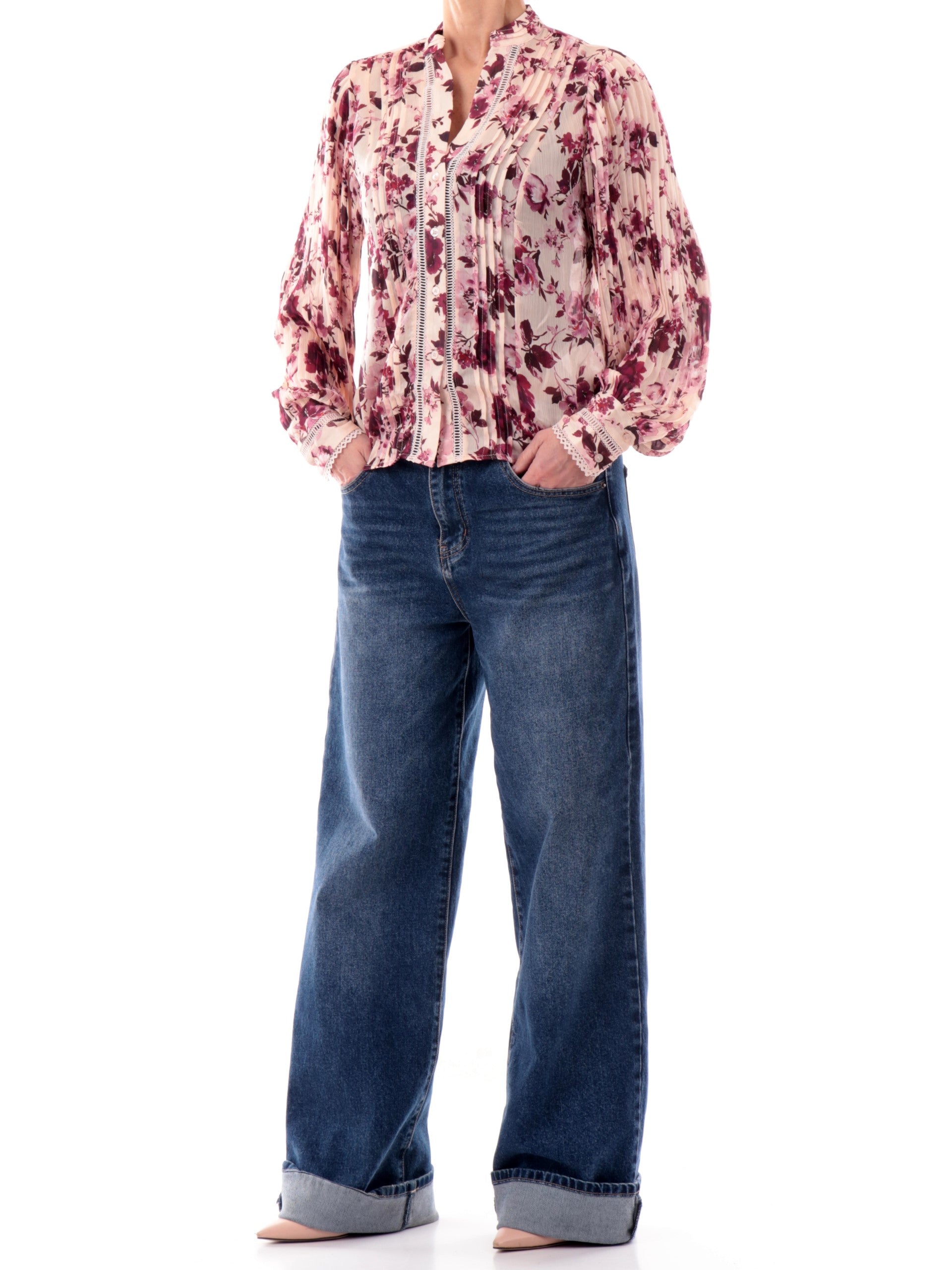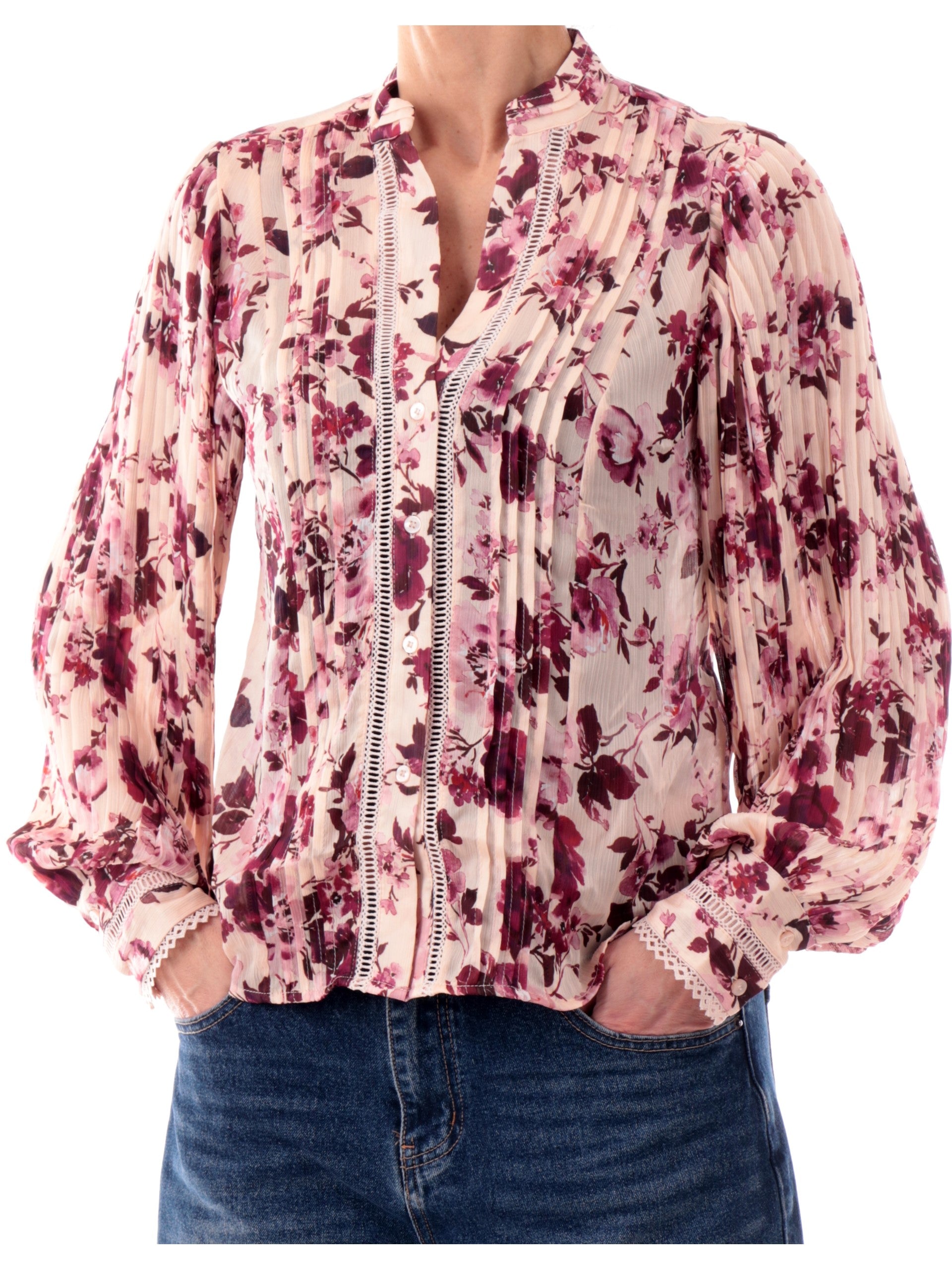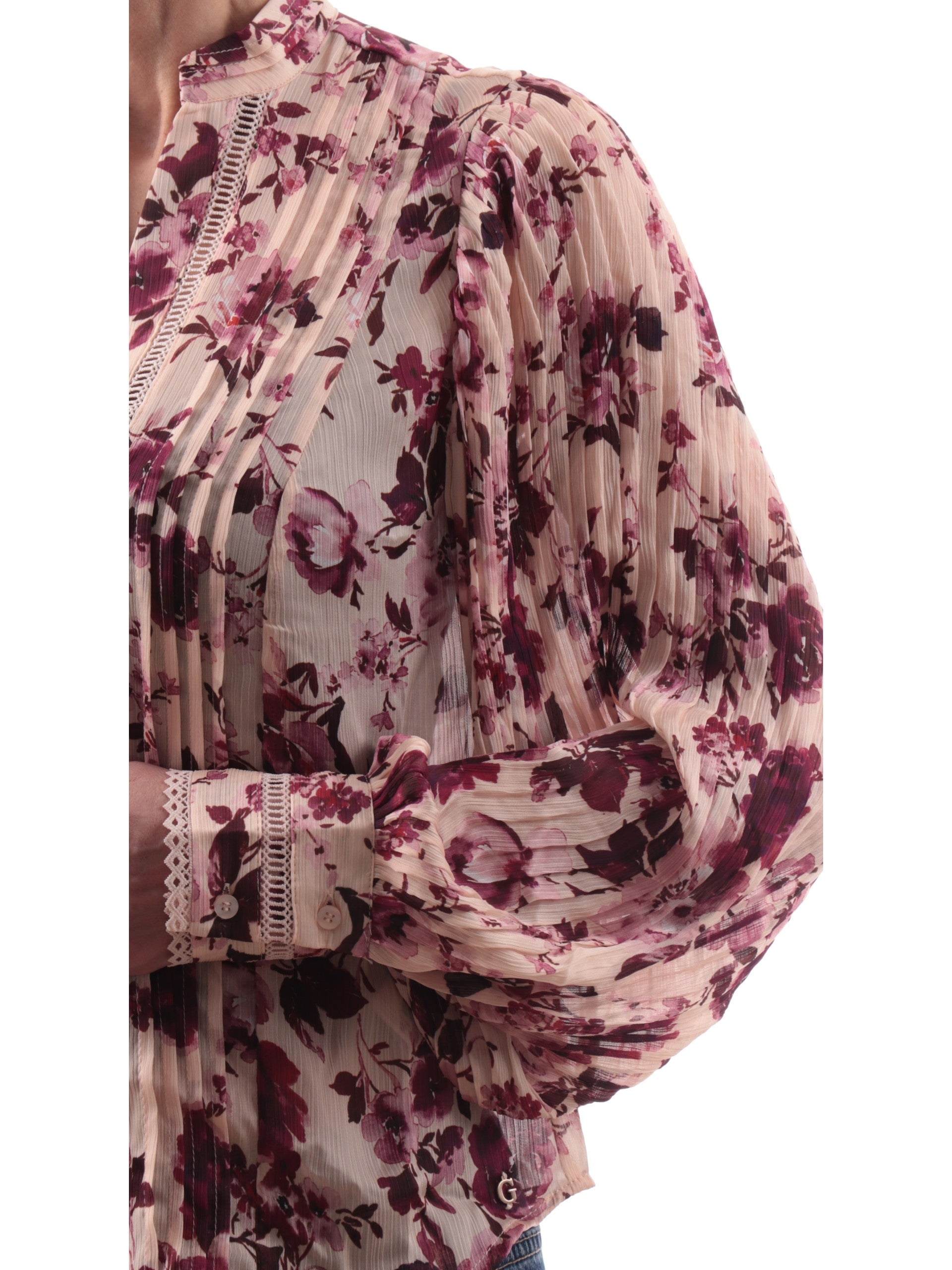 Camicia a fiori Guess da donna New Faye. Questa camicia, realizzata da un tessuto morbido e leggero, perfetto per la stagione primavera-estate, è caratterizzata dalla fantasia floreale, scollo a V, chiusura con bottoni, polsini ricamati con due bottoni e fondo regolare