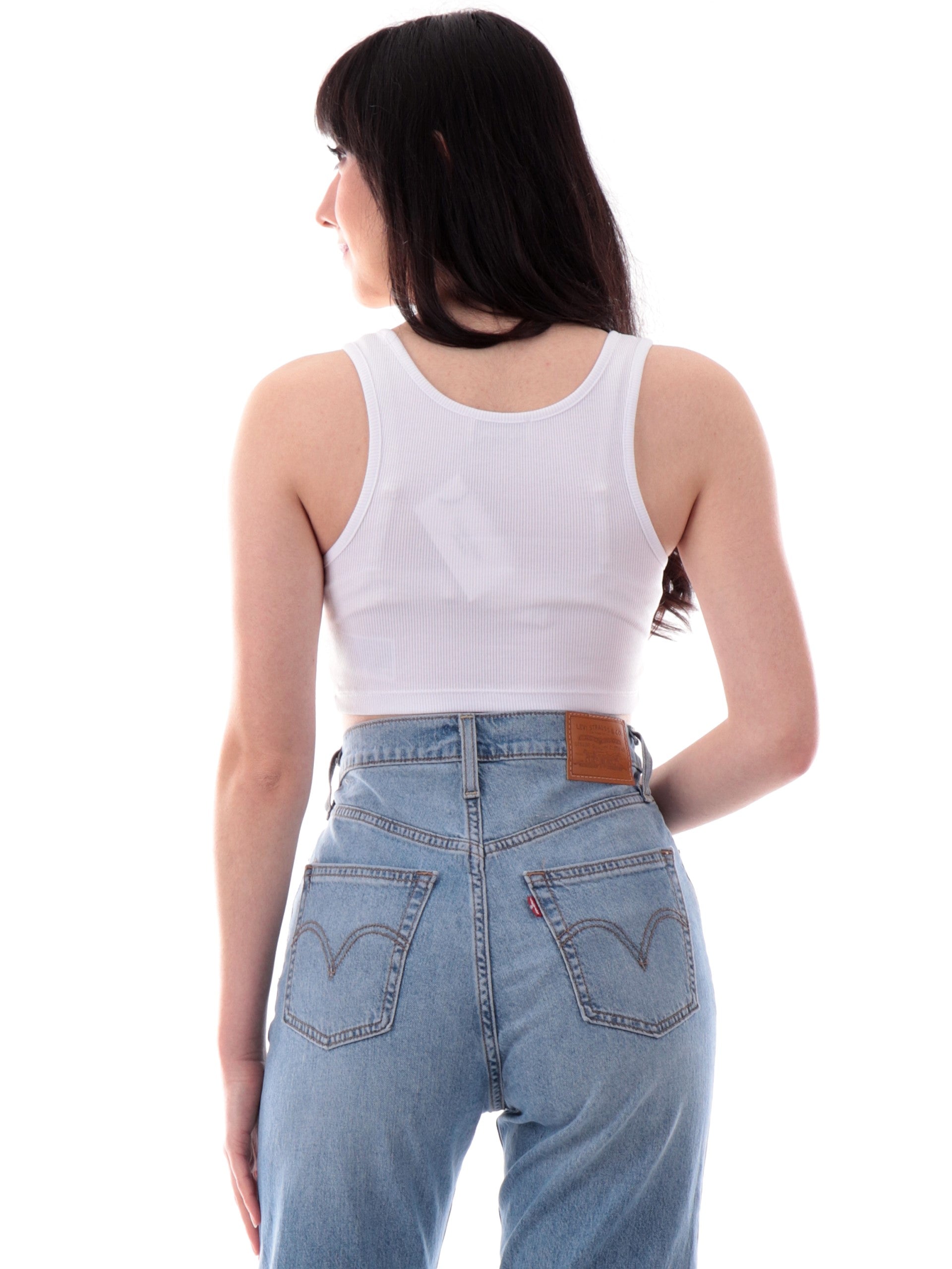 Canotta crop Calvin Klein Bianco da donna scollo a V a costine J20J225308 YAA