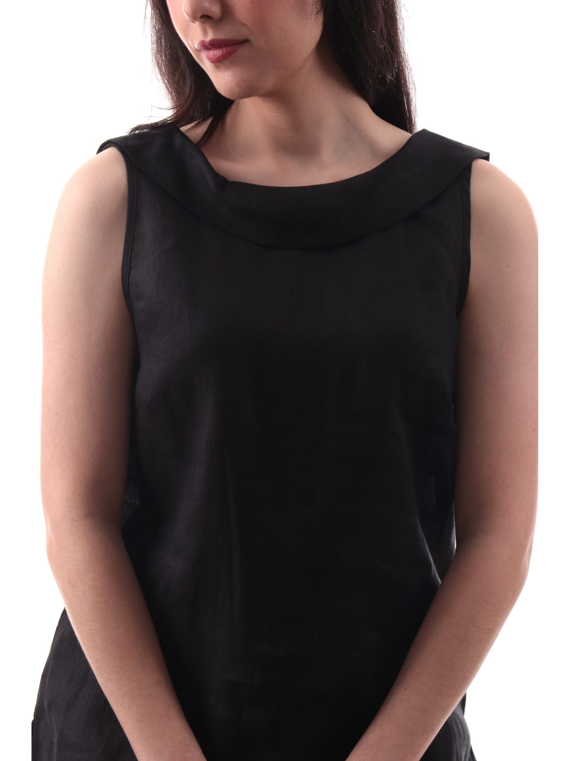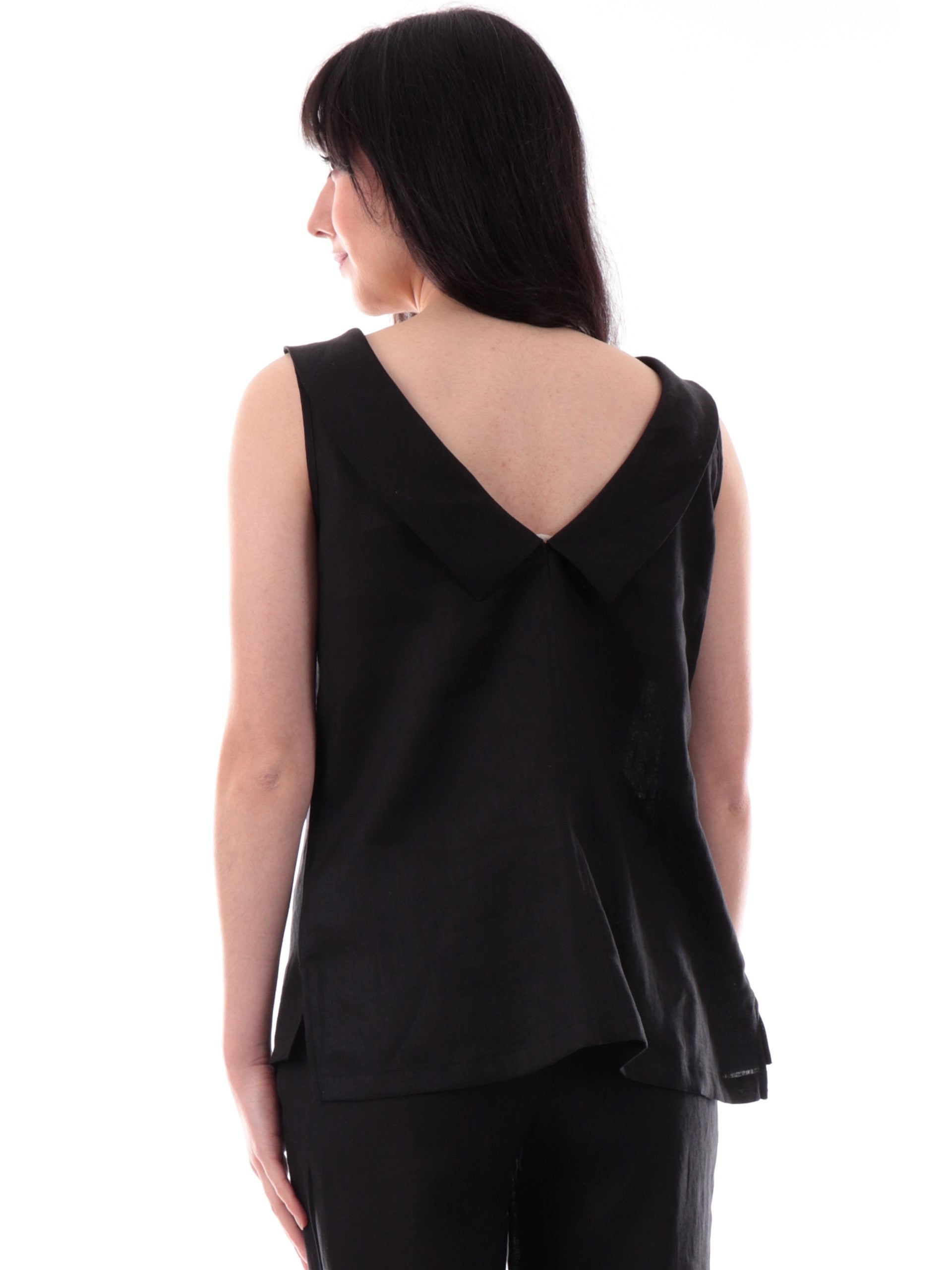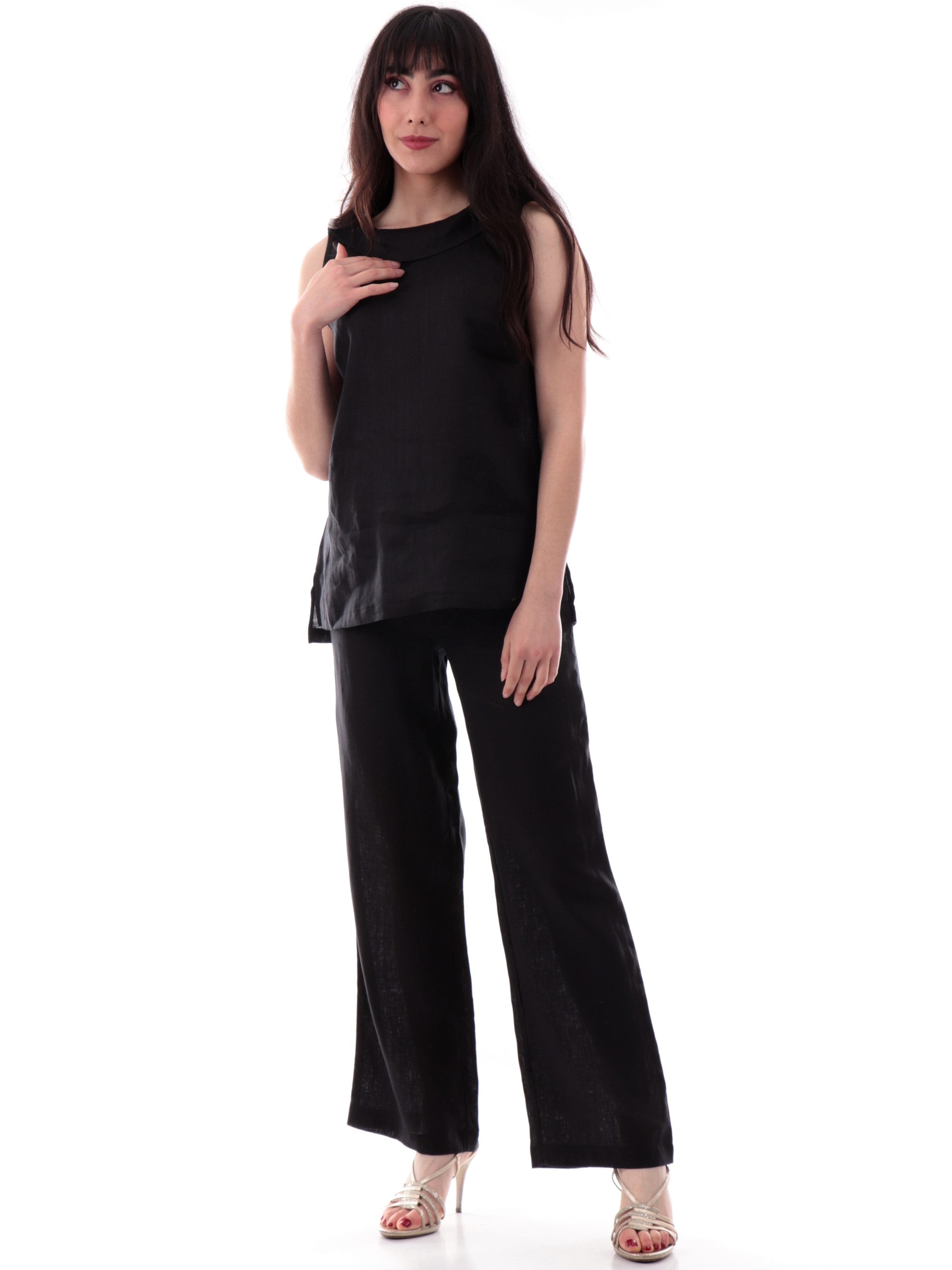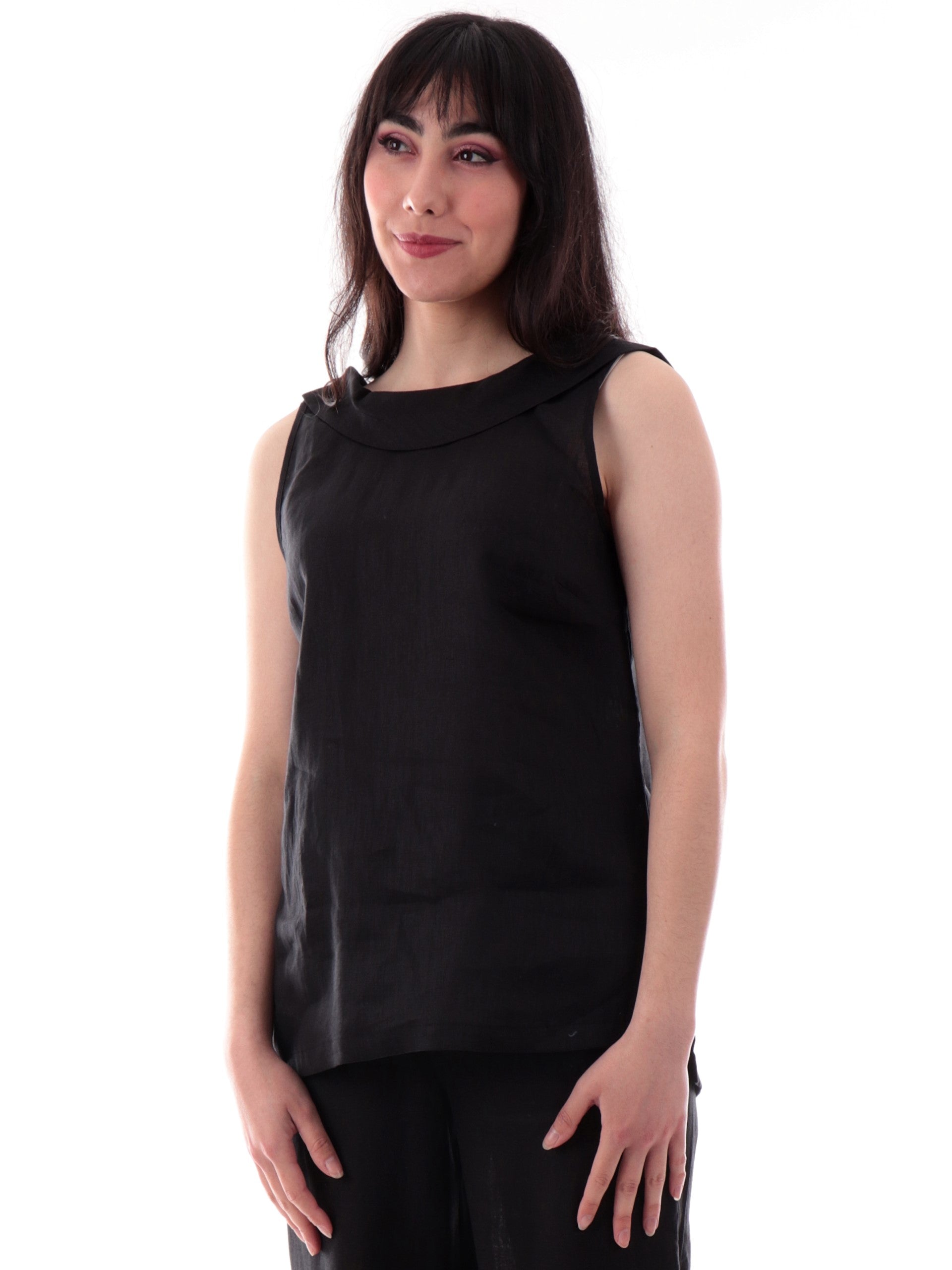 Canotta lino Anis nera scollo posteriore da donna vestibilità morbida 251C1362