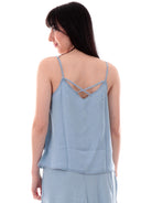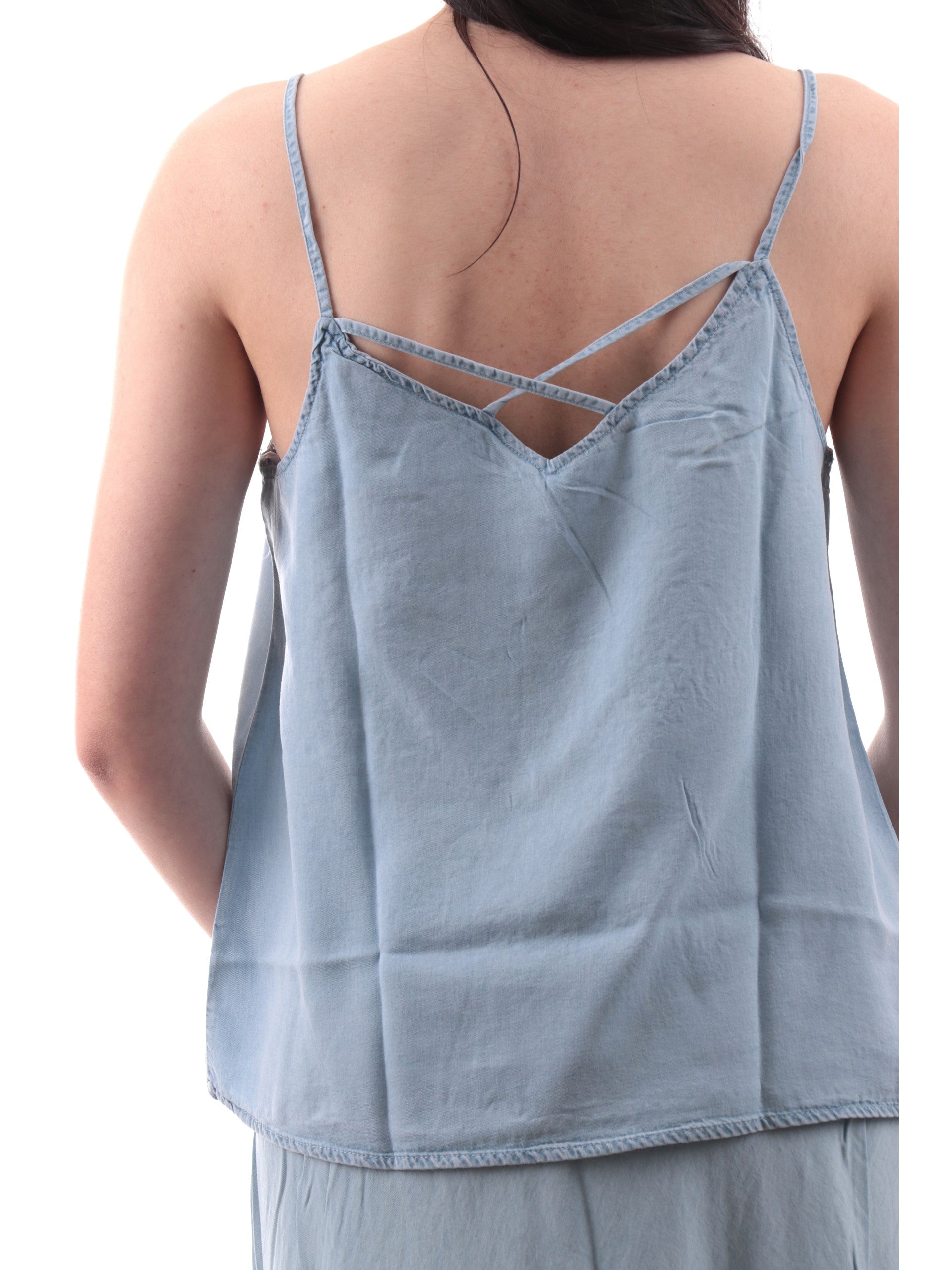 Canotta Tiffosi jeans scollo a V da donna con intreccio. Questo top Tiffosi Jeans donna scollo a V realizzato il leggero tessuto jeans.