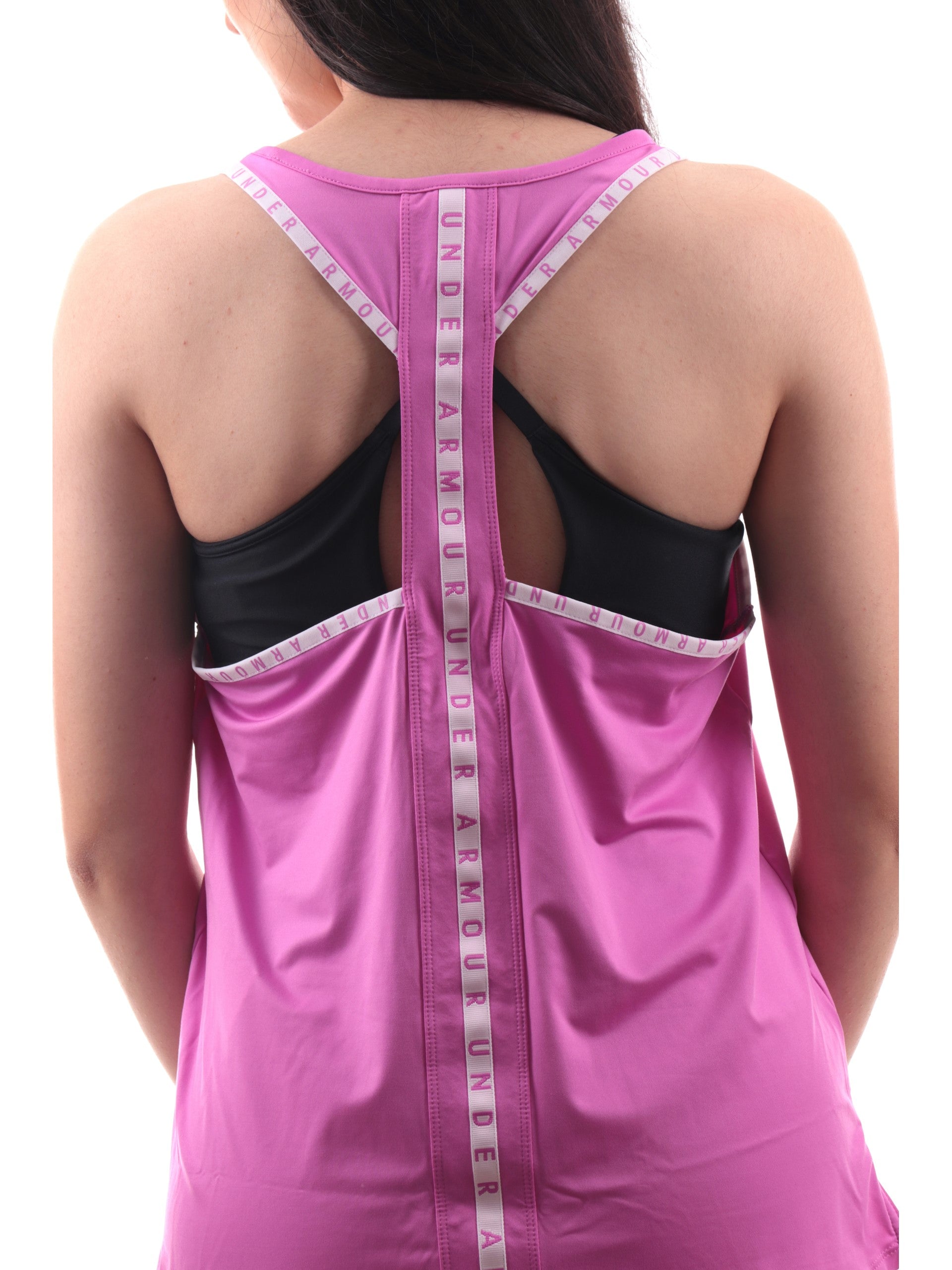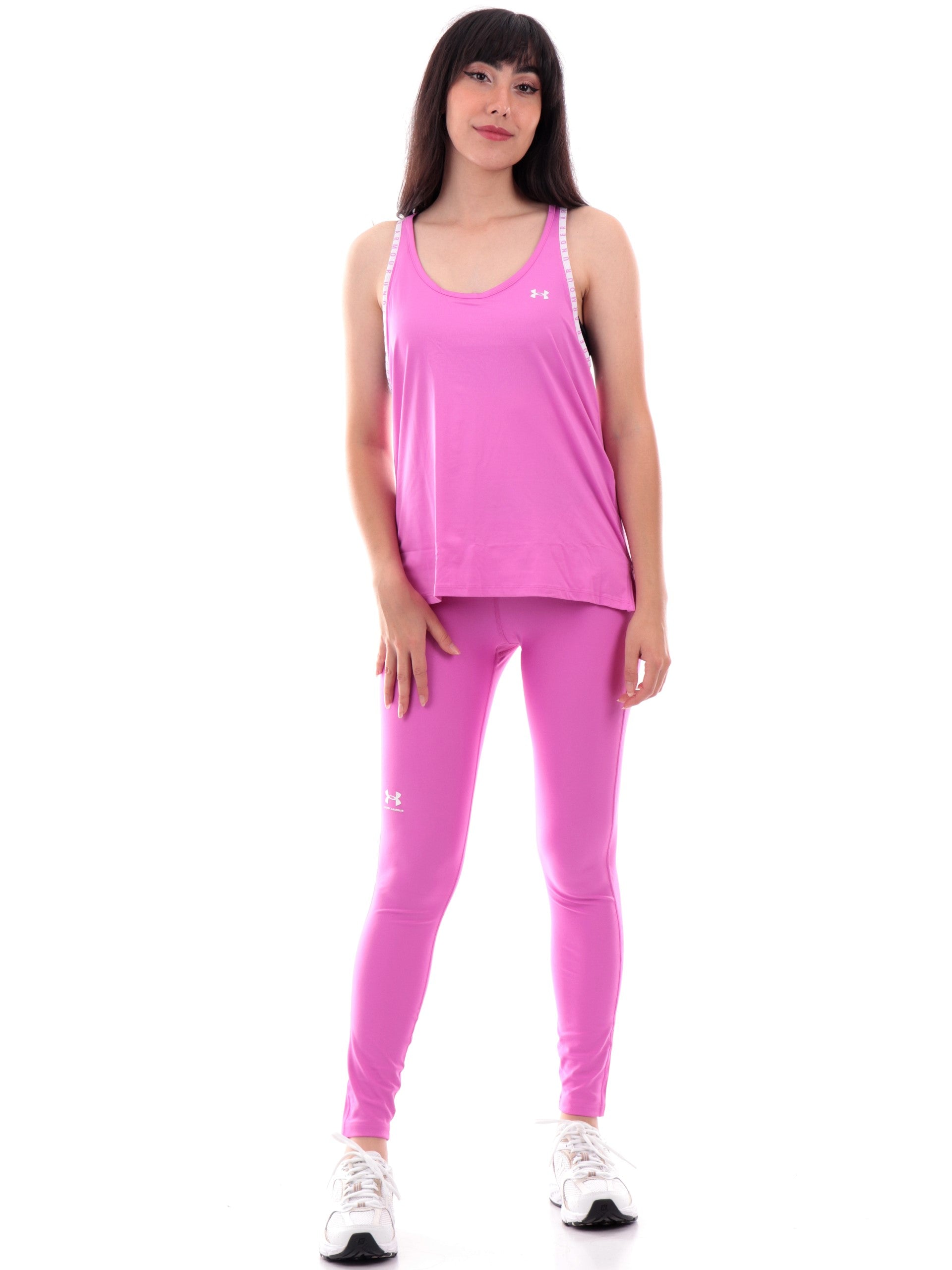 Canotta donna Under Armour con banda logo che percorre tutta la schiena e il giro manica. Questa maglia Under Armour donna è caratterizzata da tessuto tecnico molto traspirante che si asciuga rapidamente,perfetto sia per fare sport che per il tuo tempo libero. Il logo Under Armour bianco è stampato lato cuore.