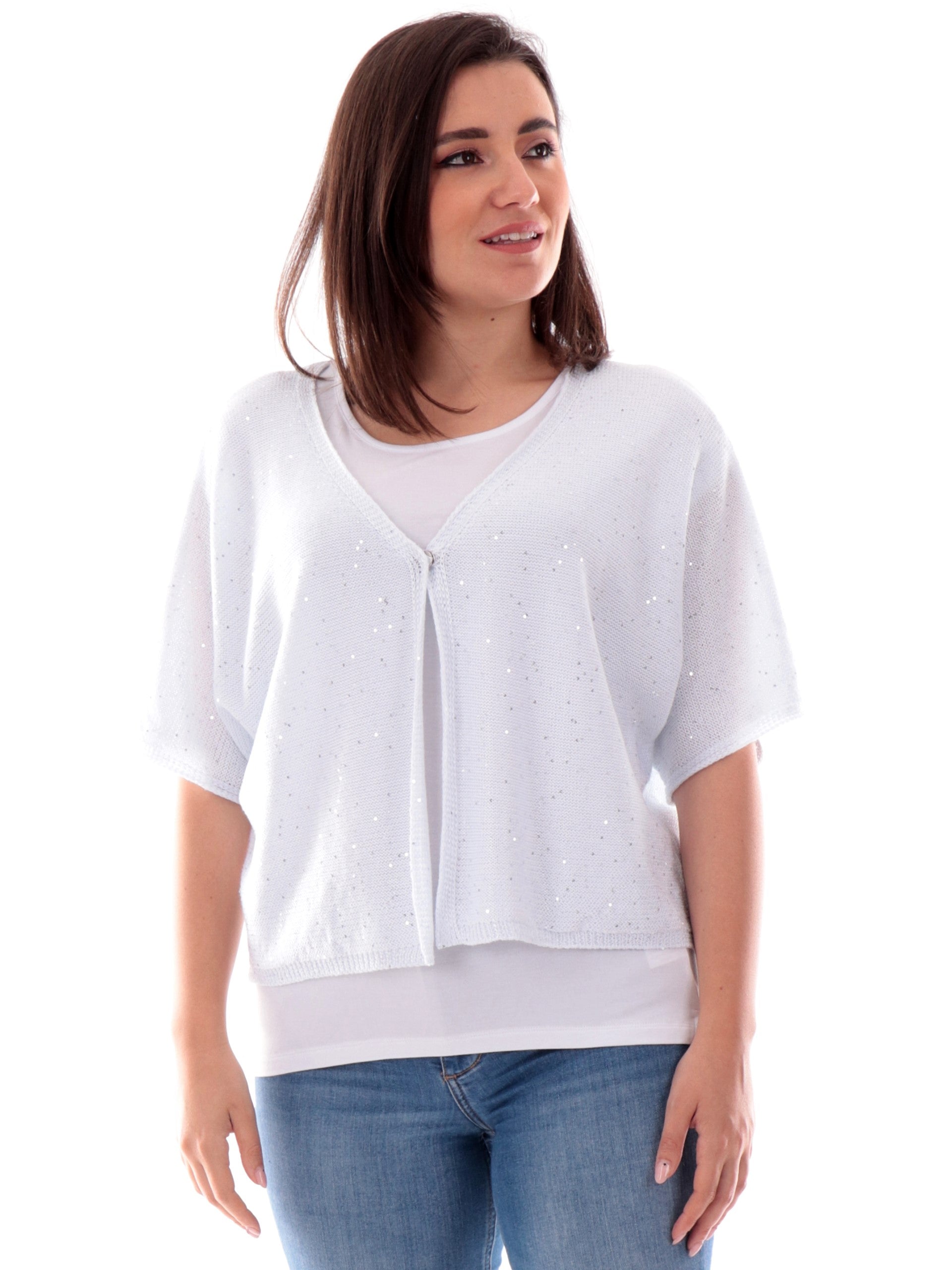 Cardigan Anis bianco scollo a V da donna con paillettes 251W1231