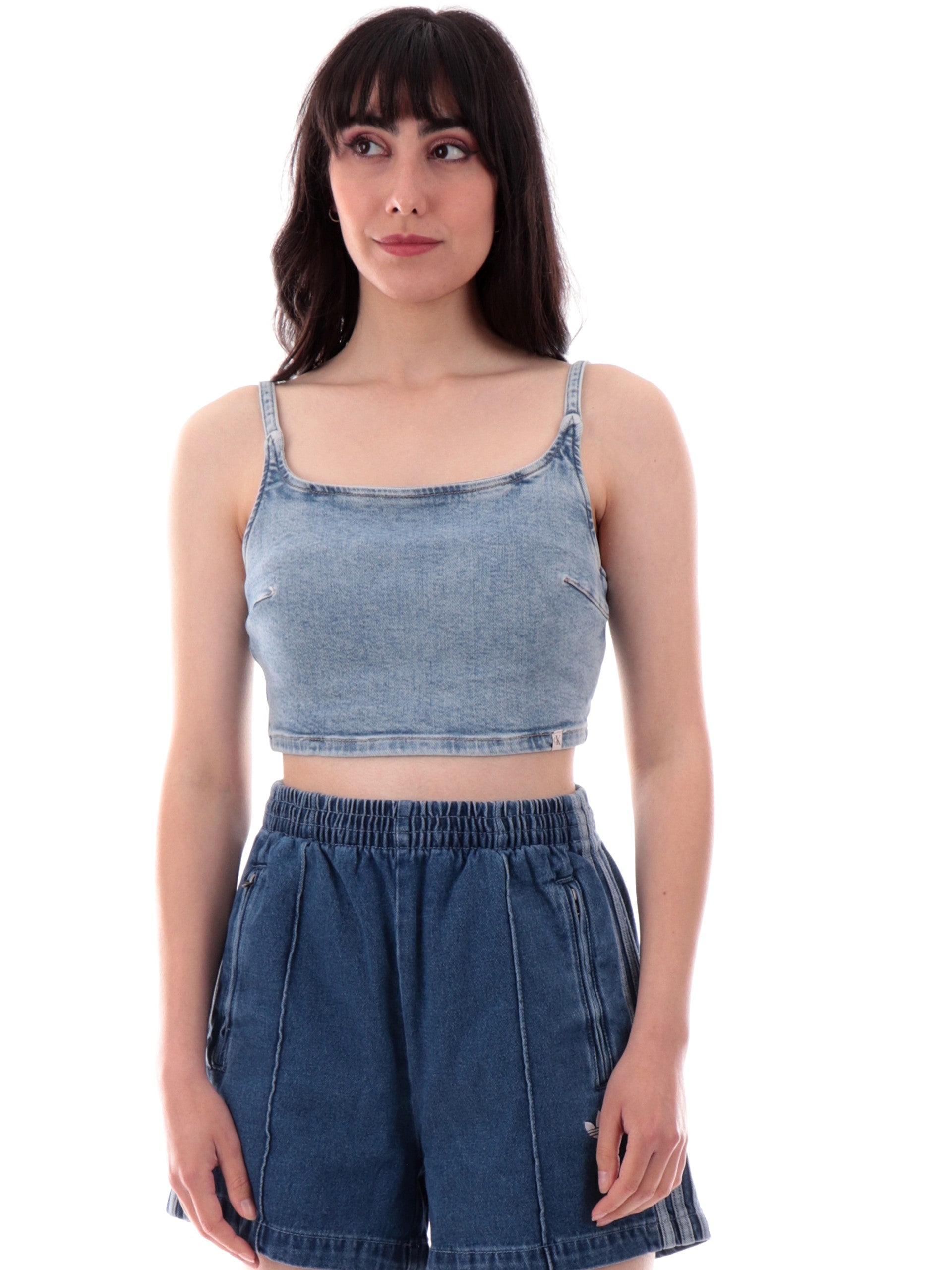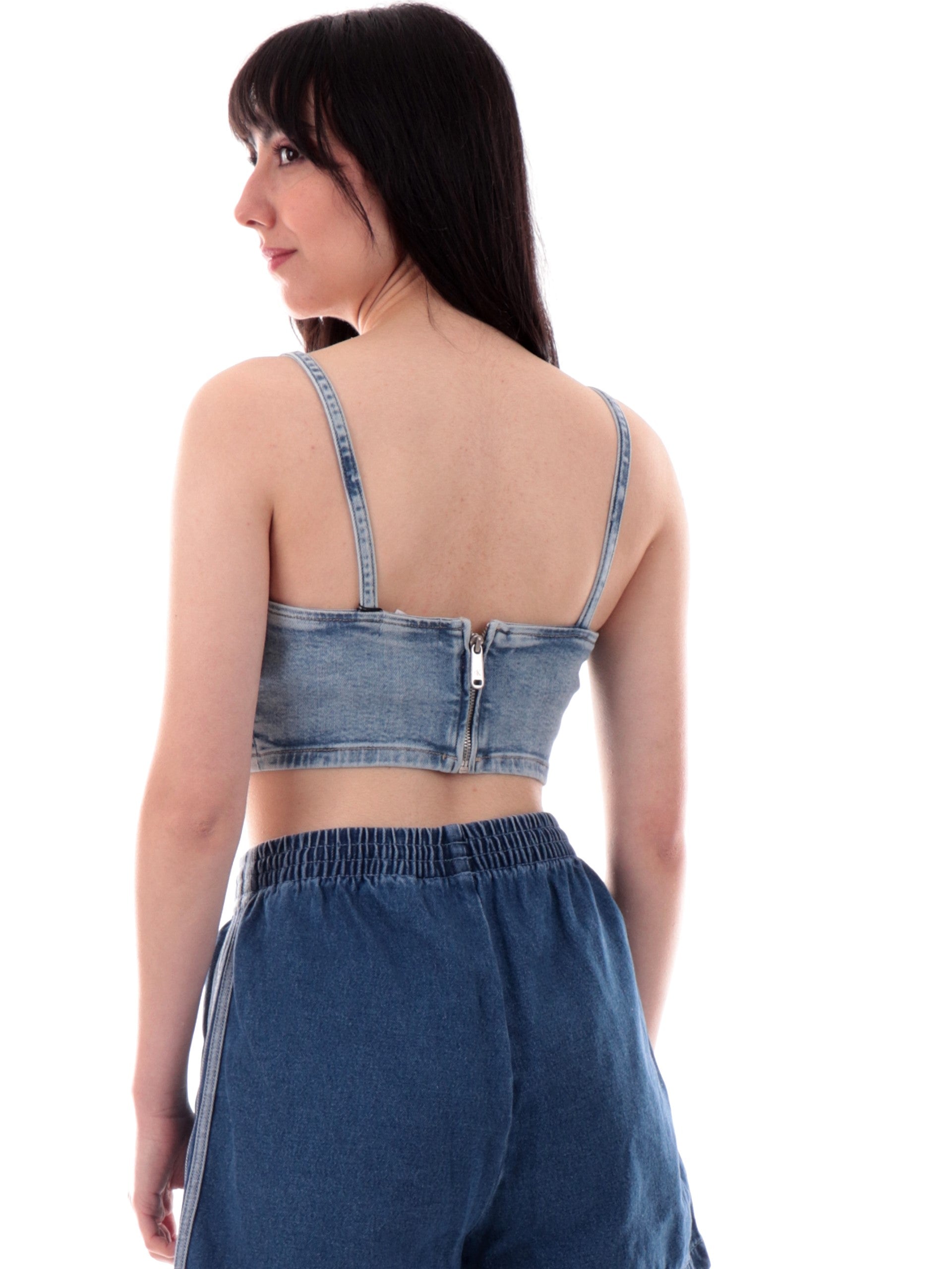 Bralette Calvin Klein jeans realizzata in jeans elasticizzato con chiusura con cerniera sul retro. Questo crop top Jeans calvin klein donna è perfetto per essere utilizzato come top estivo o come bralette jeans.
