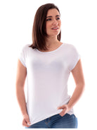 Maglia Anis bianca maniche aletta da donna scollo a barca 251W1347, realizzata in viscosa. Questa maglia donna Anis White bianca ha lo scollo a barca, le maniche ad aletta ed è stata realizzata in morbido tessuto a tinta unita.