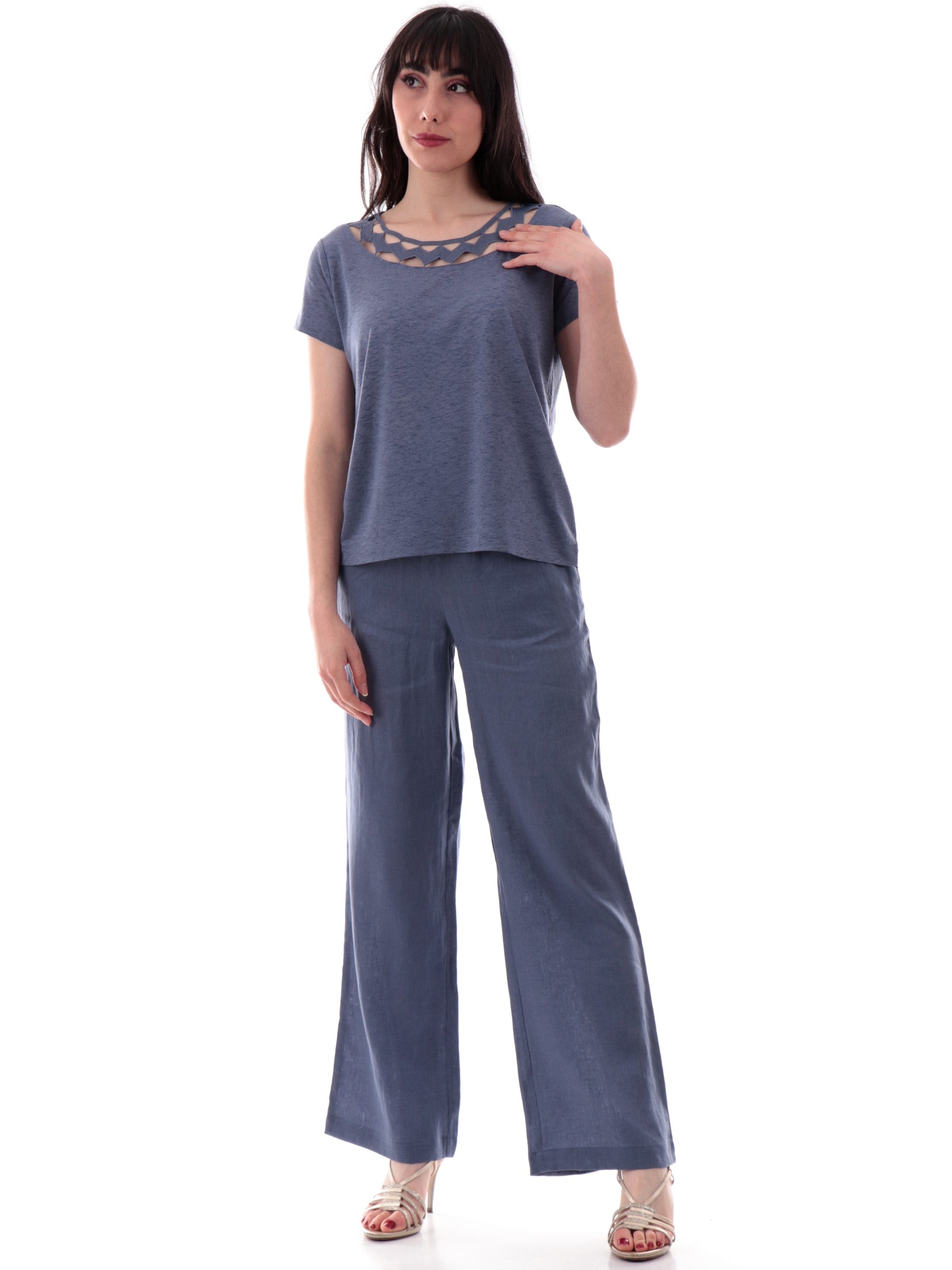 Maglia Anis celeste con collo traforato zig zag 251C1497287