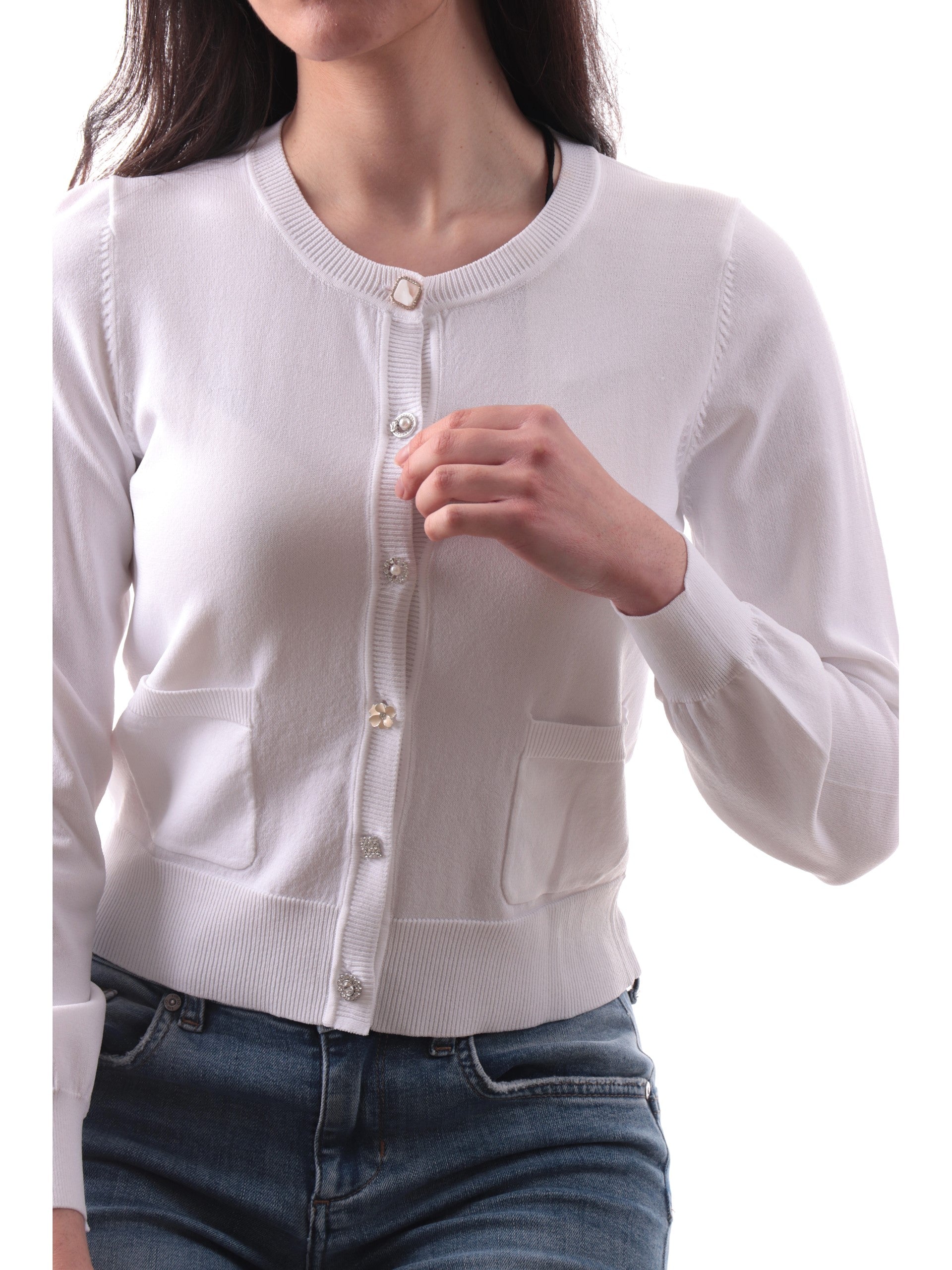 Maglia Anis coreana bianca da donna con bottoni gioiello 251W1067
