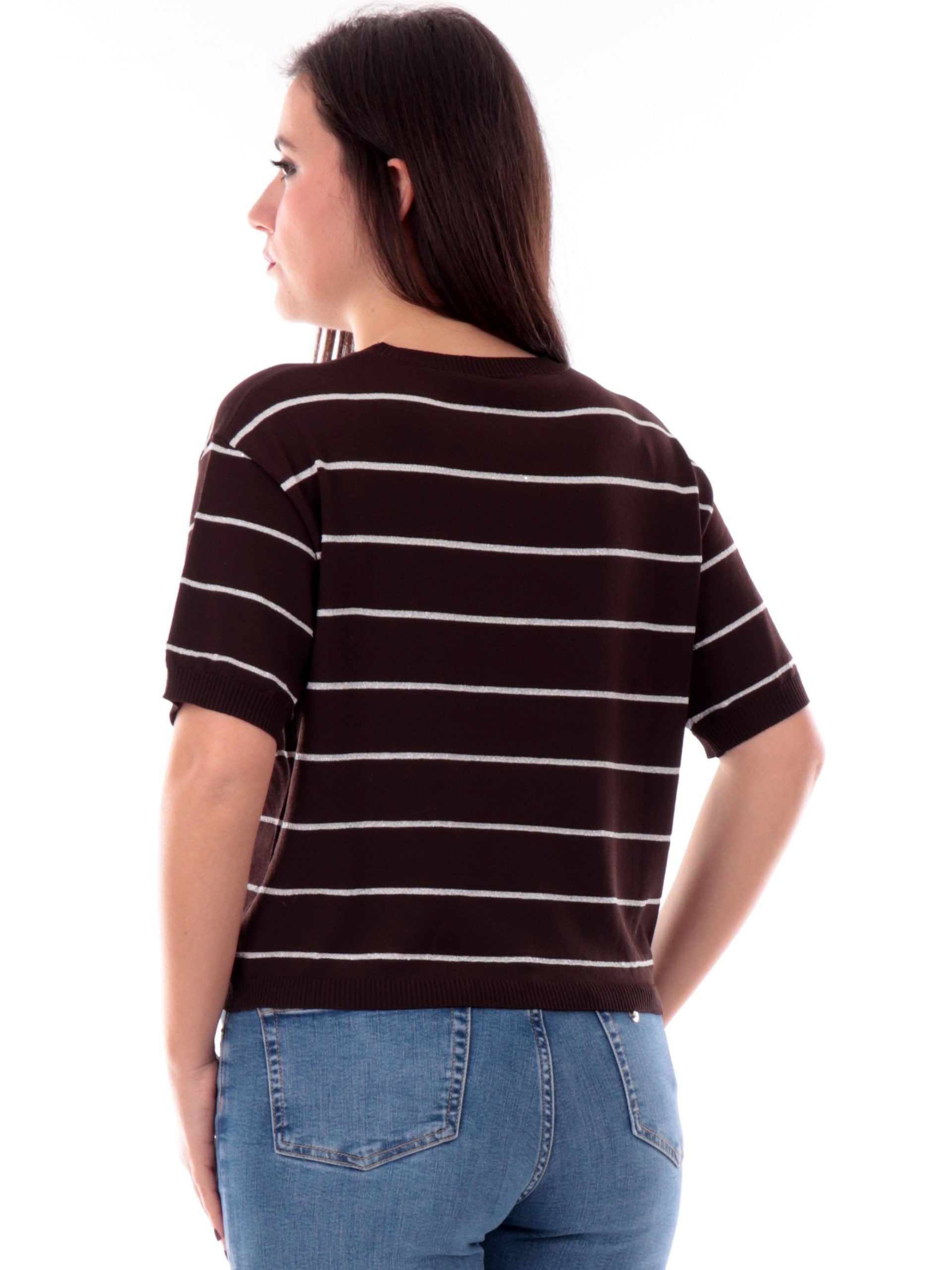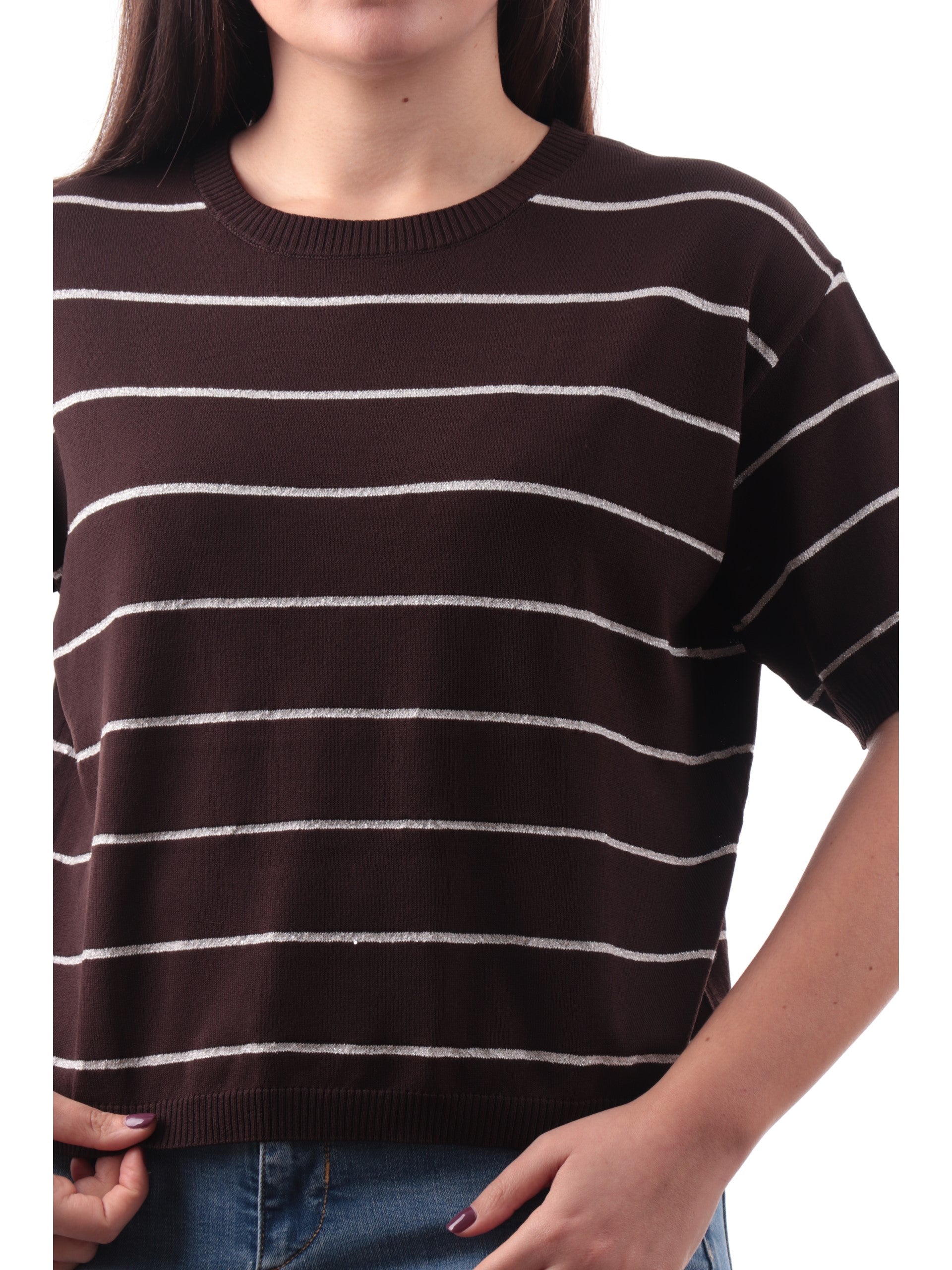 Maglia Anis marrone a righe da donna con inserti in lurex 261W1020069