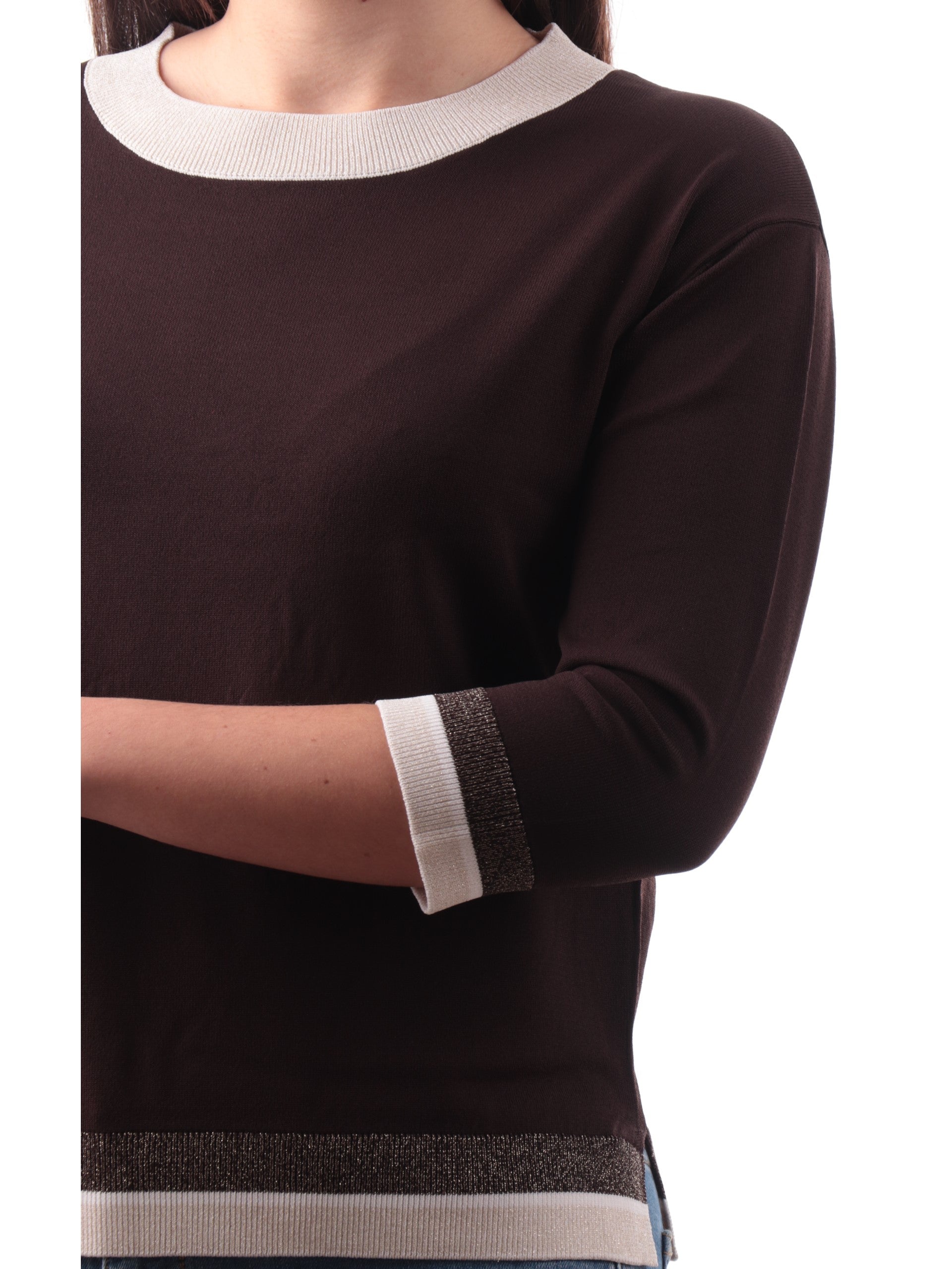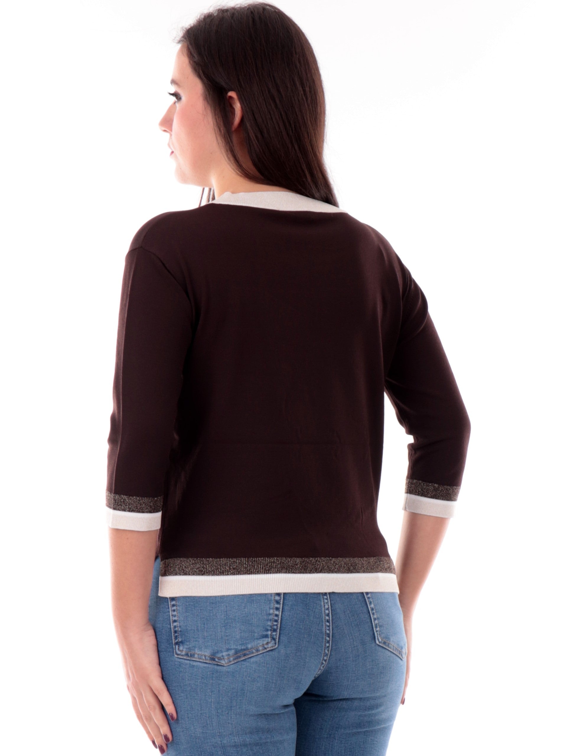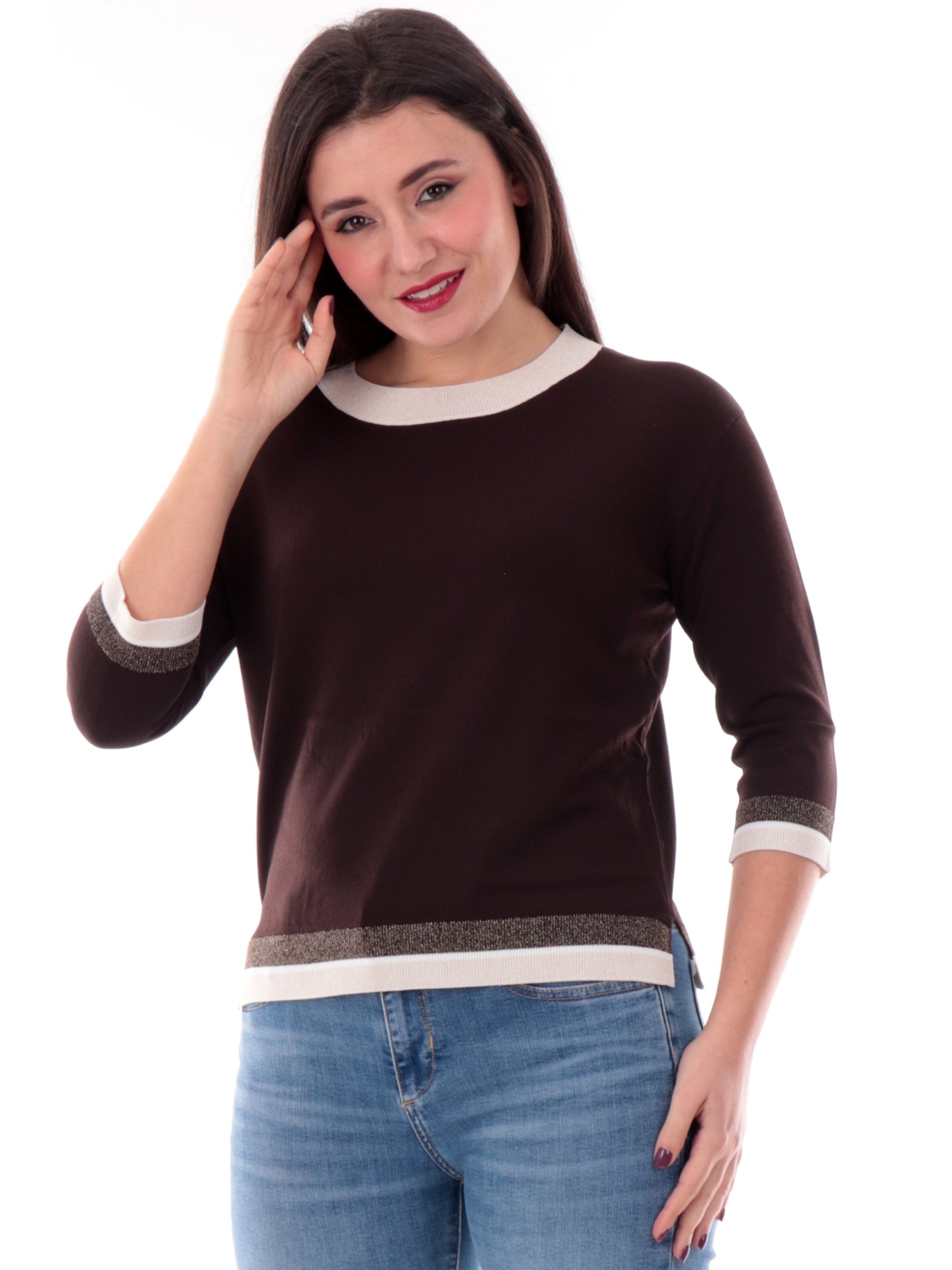 Maglia Anis marrone da donna con inserti in lurex e maniche a tre quarti 261W1070069