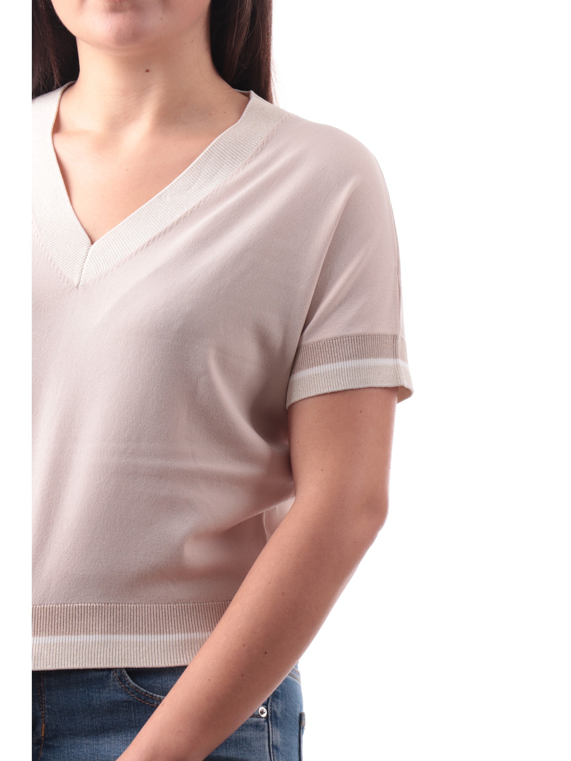 Maglia Anis rosa da donna con inserti in lurex e scollo a V 261W1072042
