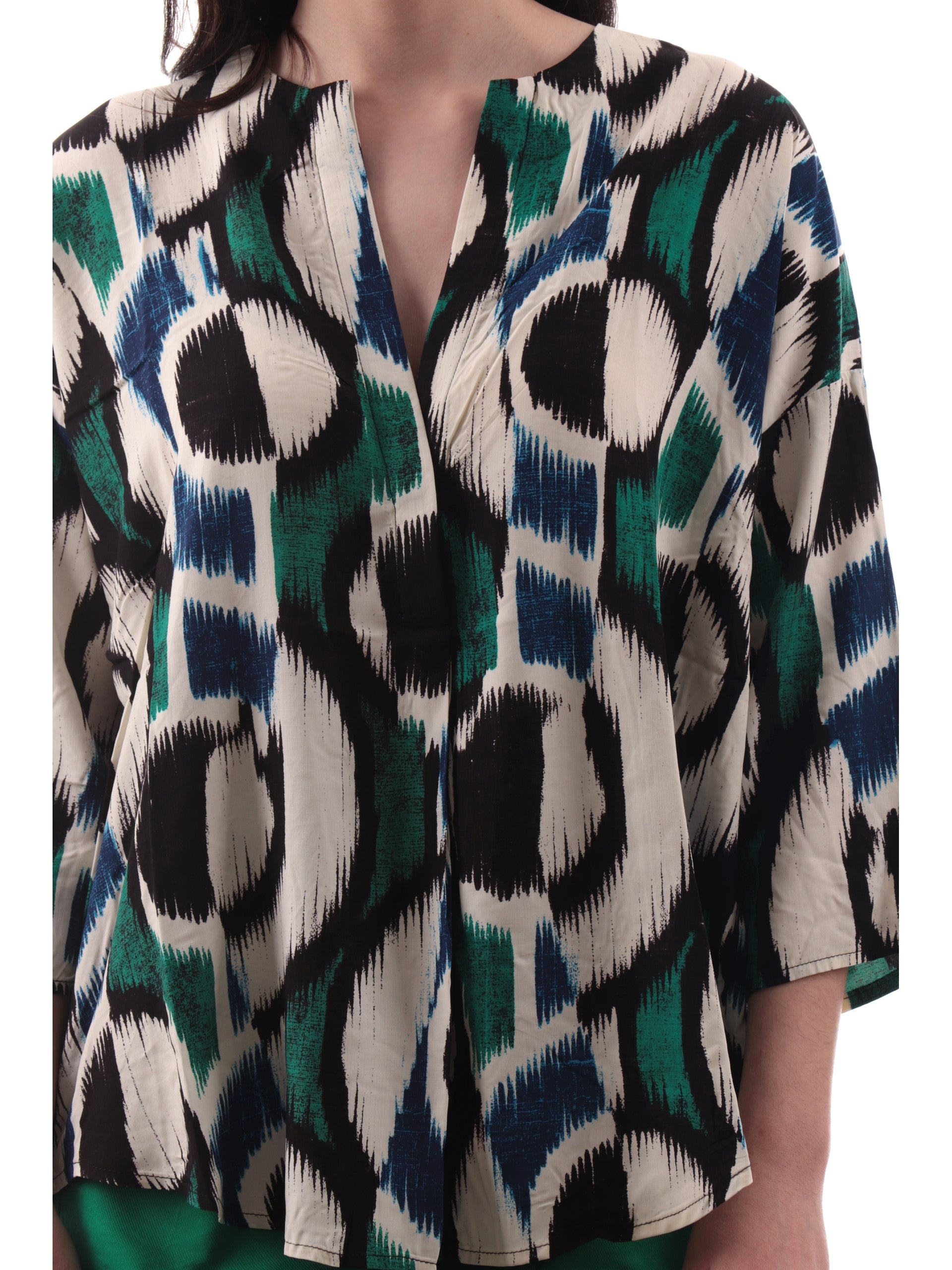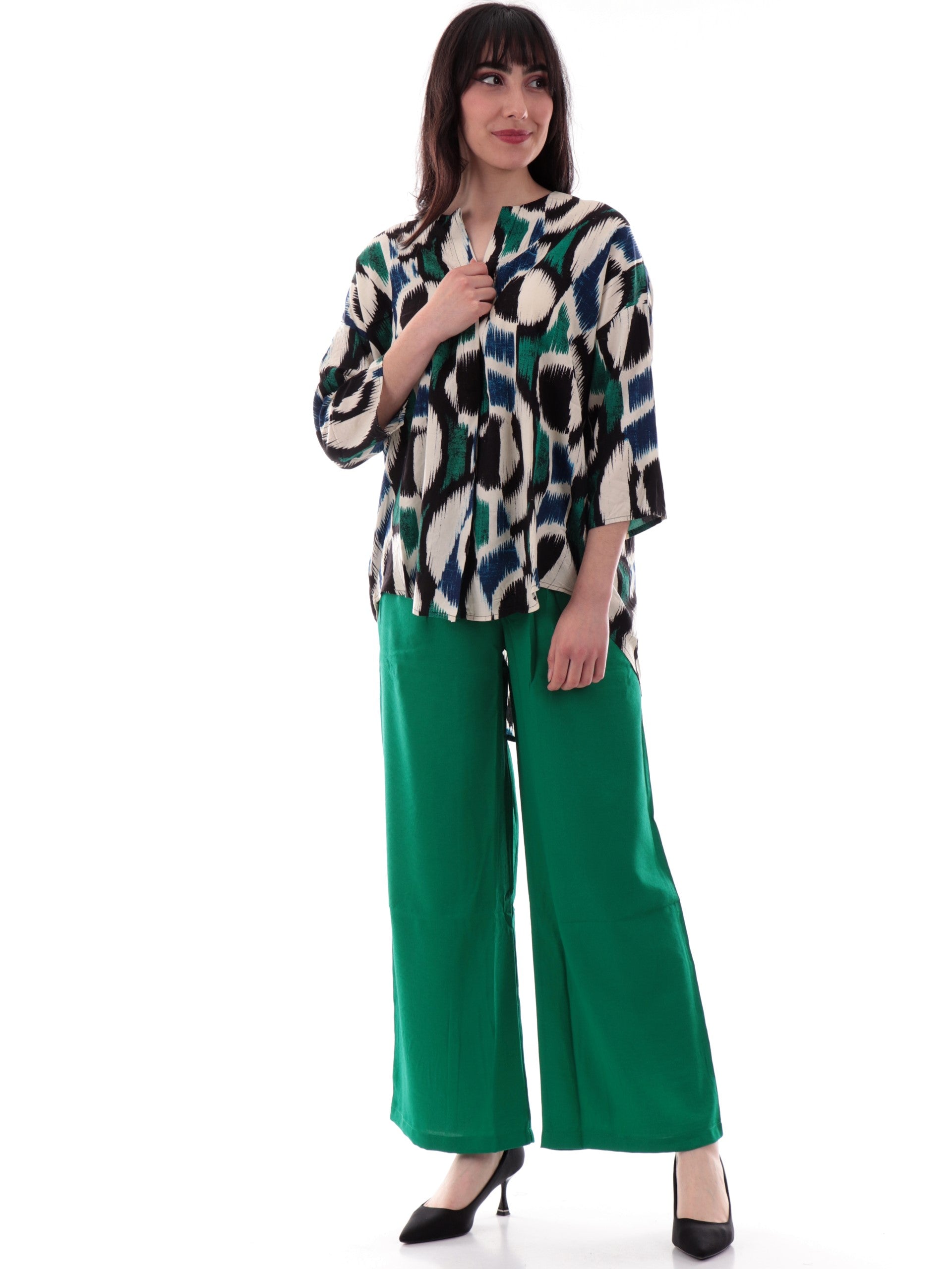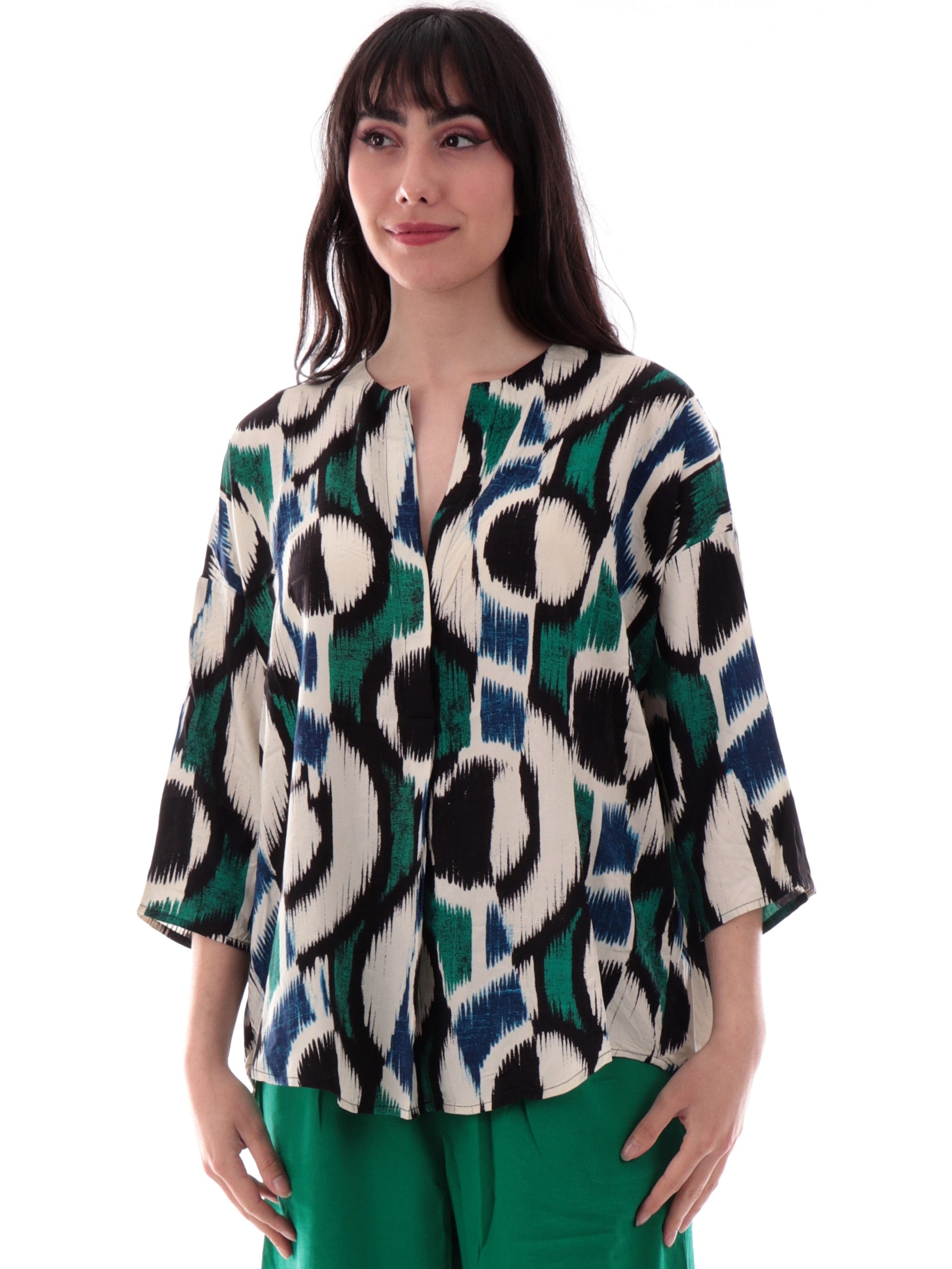 Maglia Molly bracken maniche a tre quarti da donna realizzata a fantasia. Una blusa Molly Bracken verde bianca e nera perfetta per dare un tocco di stile ai tuoi outfit.