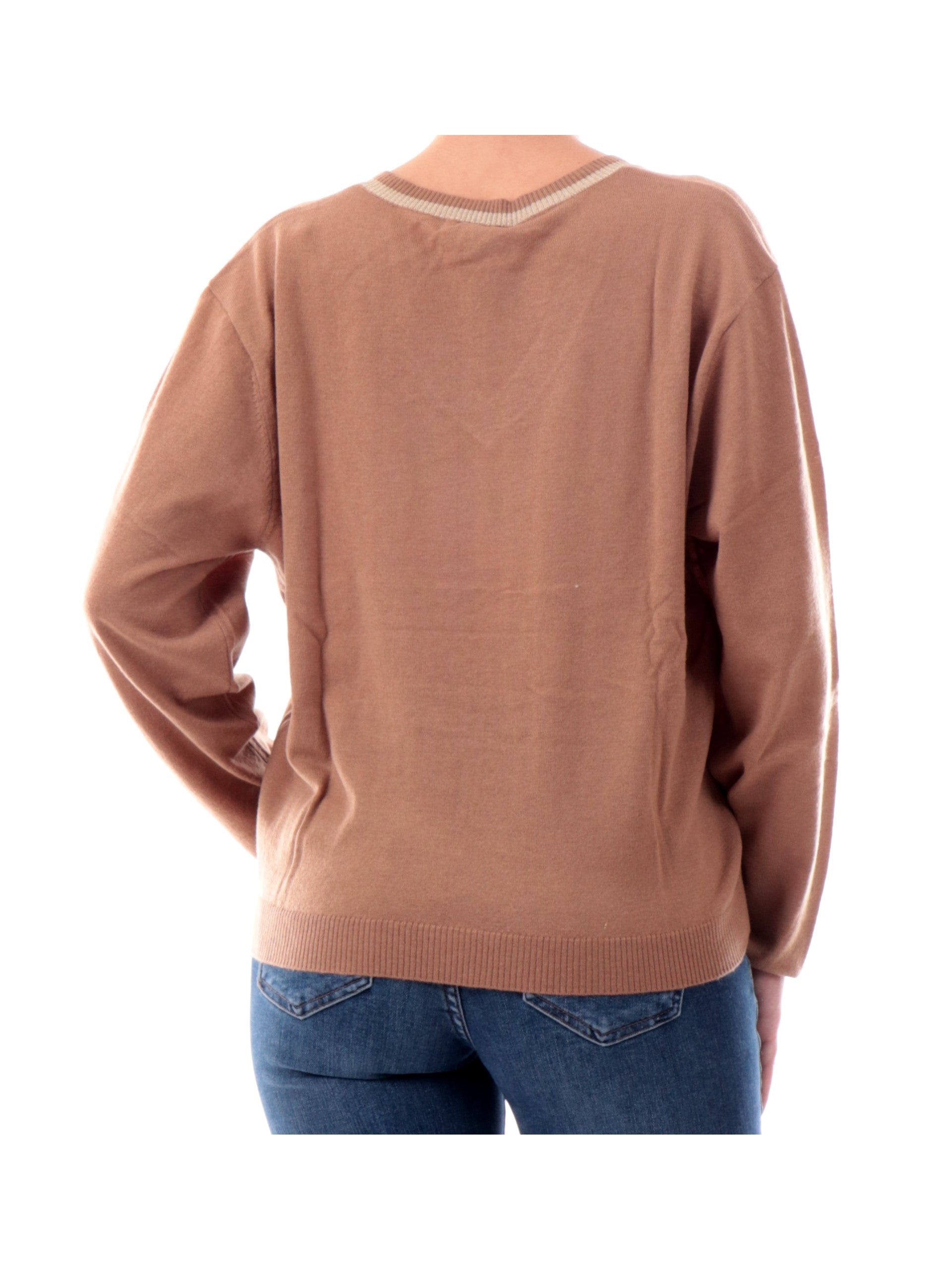 Maglia Yes Zee beige con Scollo a V . Questo maglione beige yes zee è caratterizzato da colletto con bordi oro che profilano lo scollo a V sul davanti e placchetta logo oro Yes Zee sul fondo.