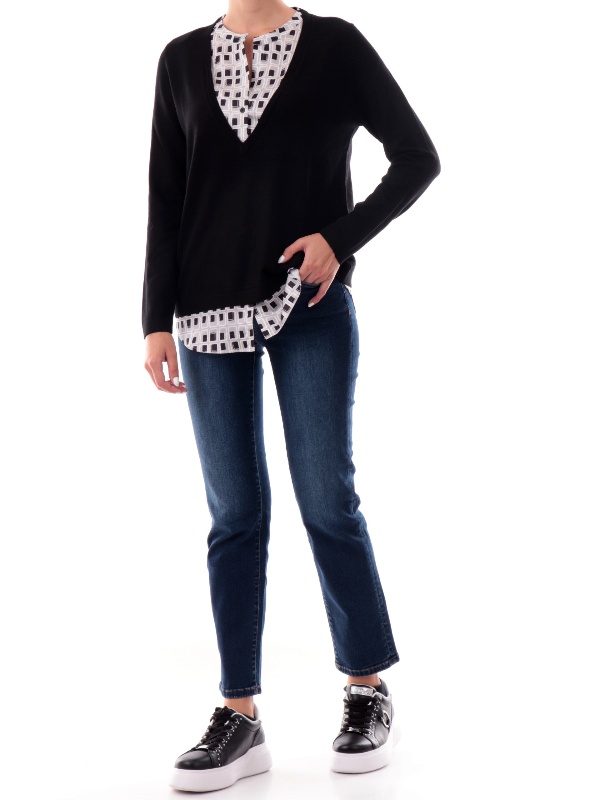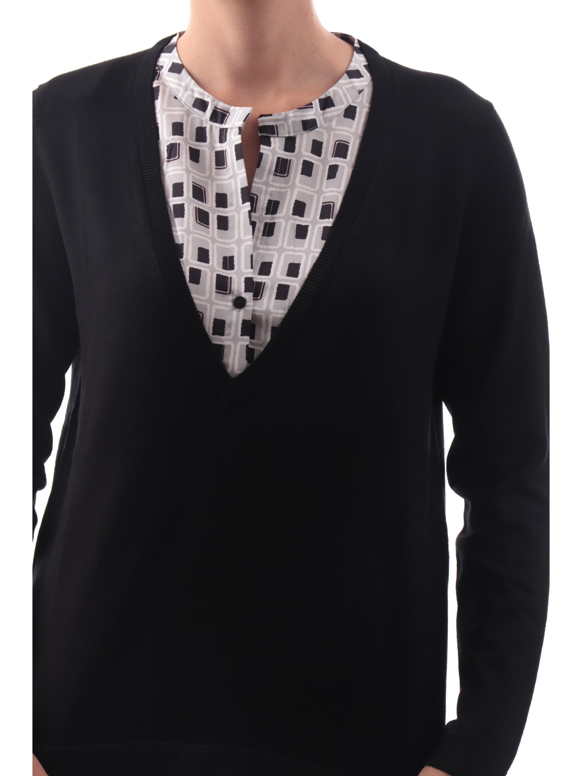 Maglione Anis nero da donna inserto serafino stampa geo 255W1435