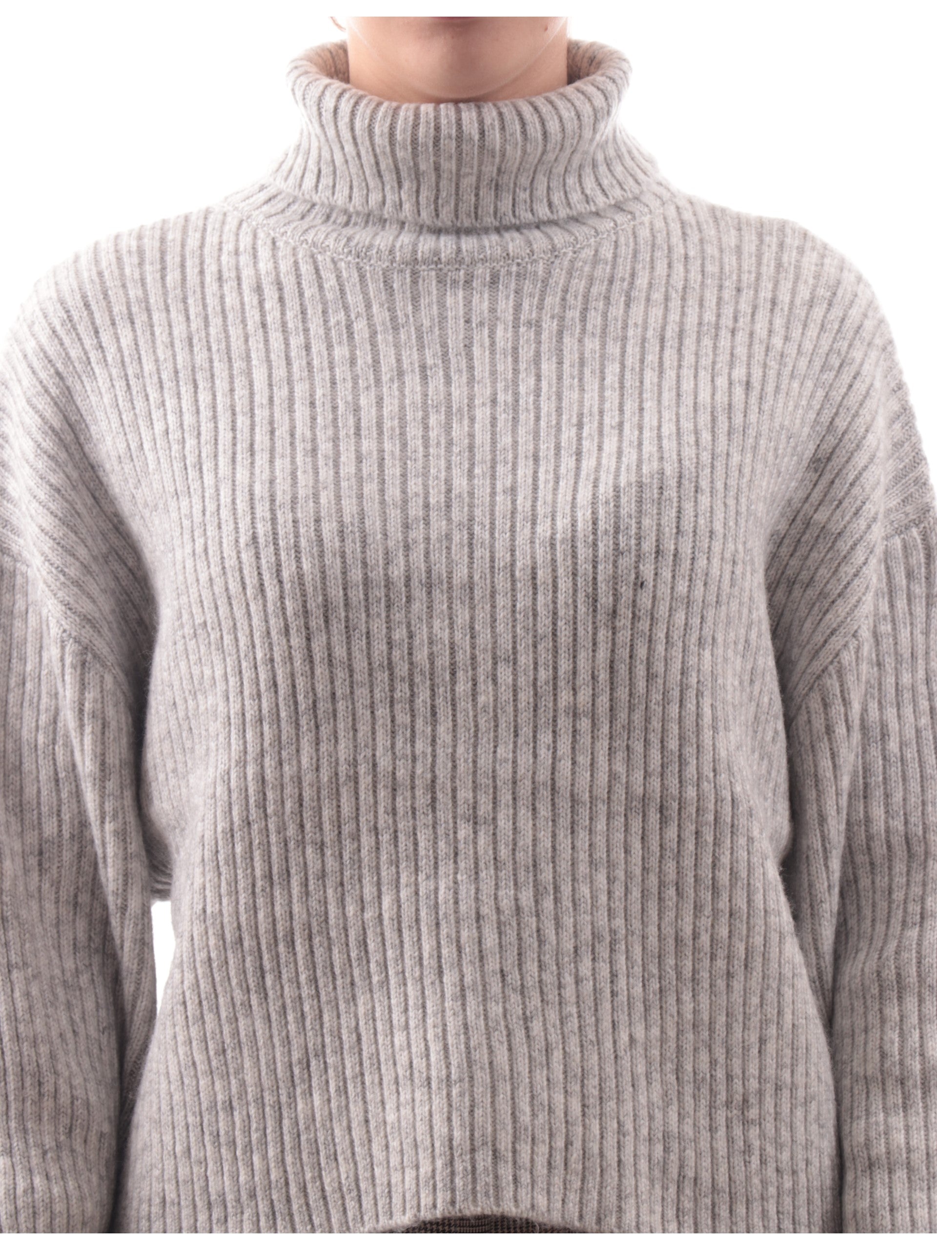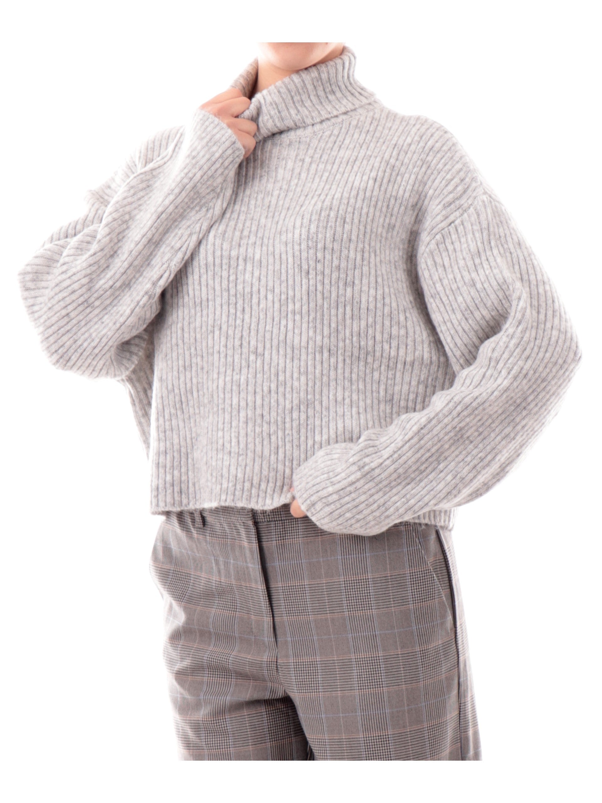 Maglione dolcevita grigio da donna Only ROLLNECK PULLOVER. Questo maglione grigio da donna è realizzato da un tessuto caldo a costine, perfetto per l'inverno e ha una vestibilità comoda. Questo pullover è perfetto sopra un jeans