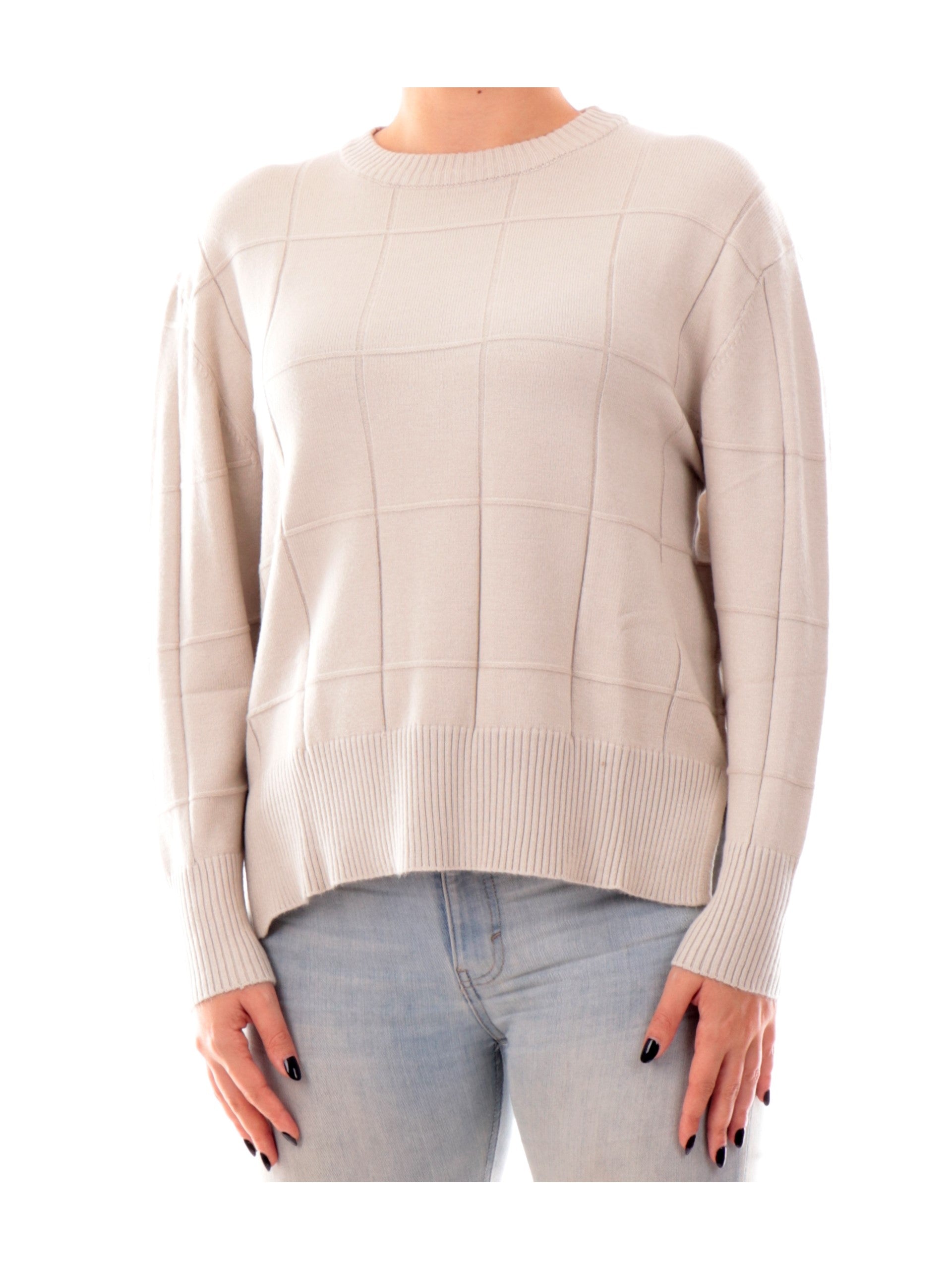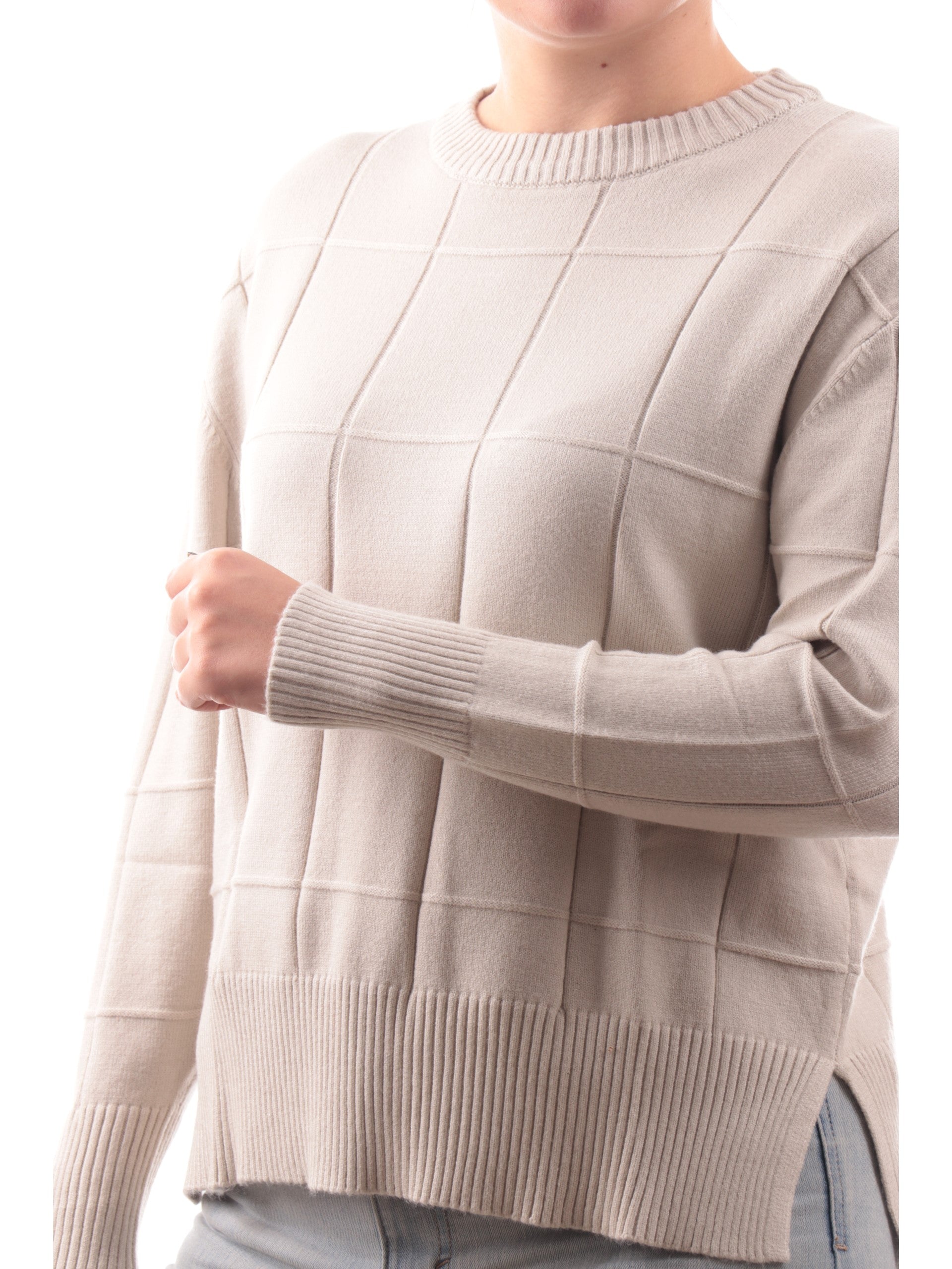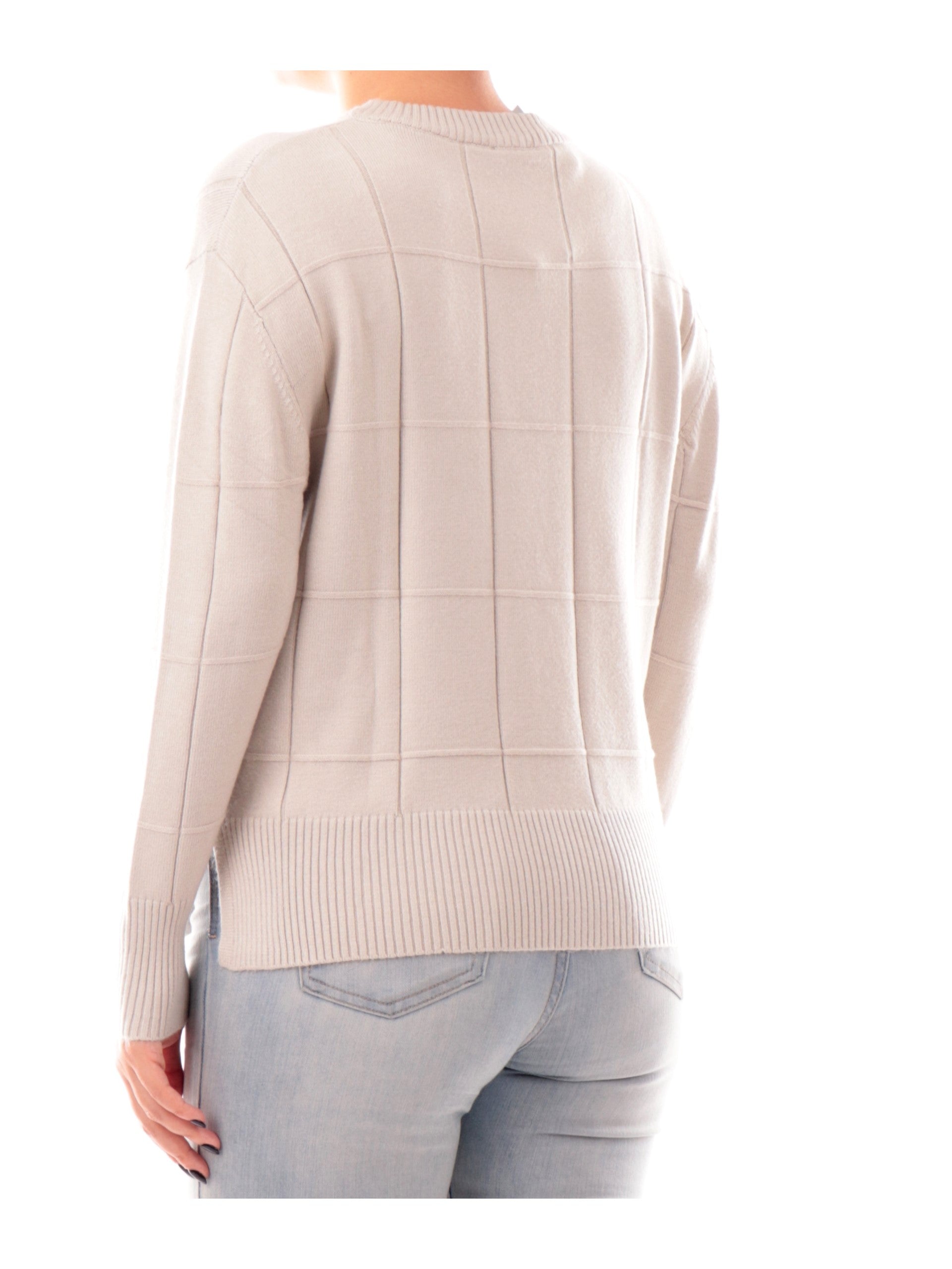 Maglione Ragno Beige da donna con trama geometrica a bassorilievo con rettangoli. Questa Maglia Ragno donna è caratterizzata da vestibilità morbida e tessuto soft touch.