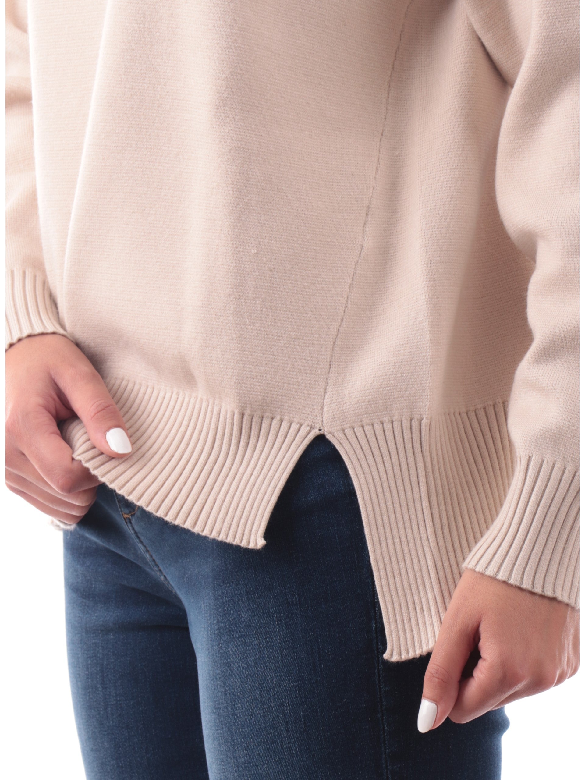 Maglione Ragno donna beige a collo alto con colletto a costine DN53MK786