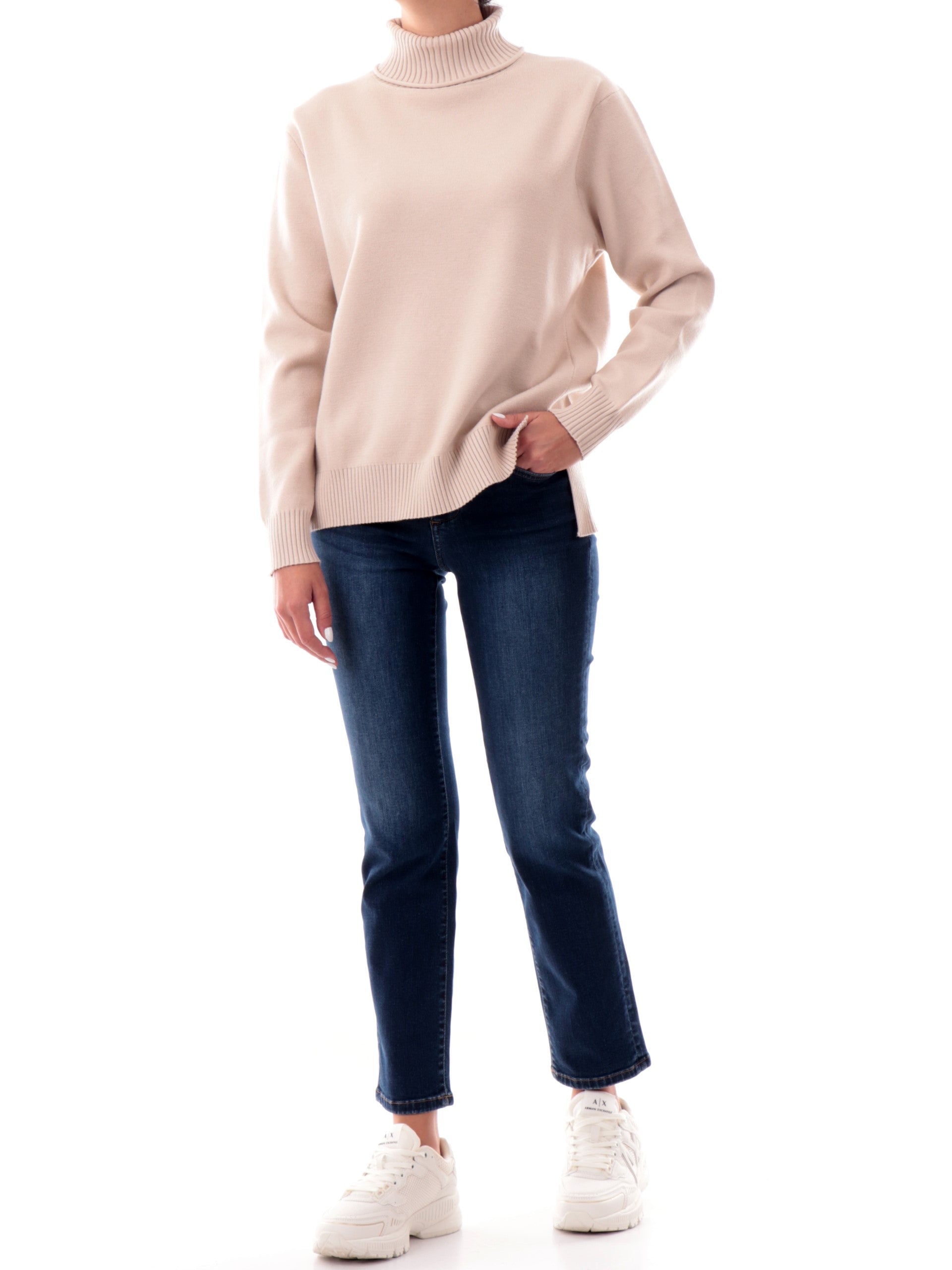 Maglione Ragno donna beige a collo alto con colletto a costine . Questo maglione donna Ragno è realizzato in tessuto molto morbido ed avvolgente.