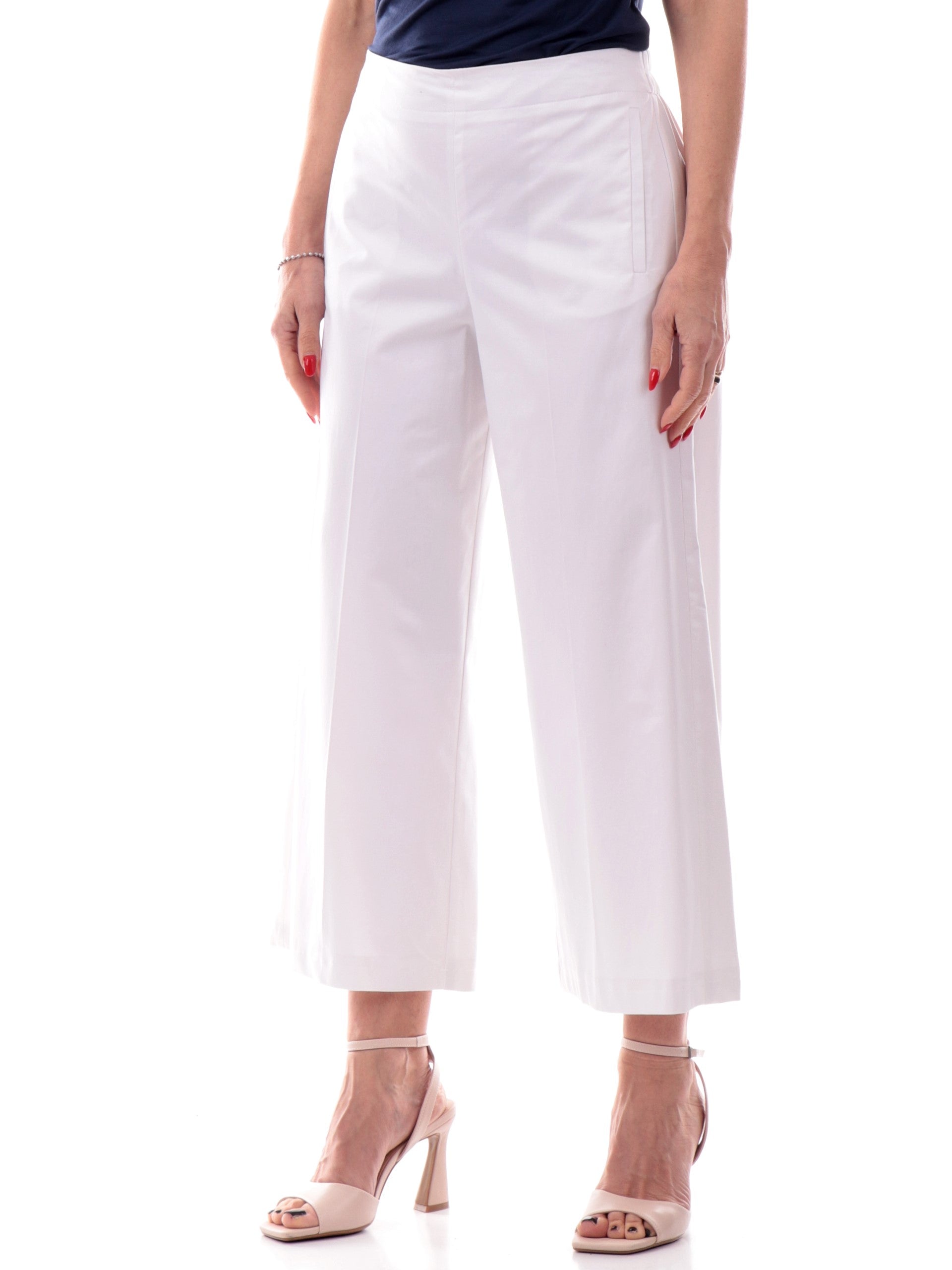 Pantaloni crop Emme Marella bianchi da donna TISBE. Questi pantaloni Marella bianchi hanno la banda elastica sul punto vita, due tasche laterali e la vestibilità crop.
