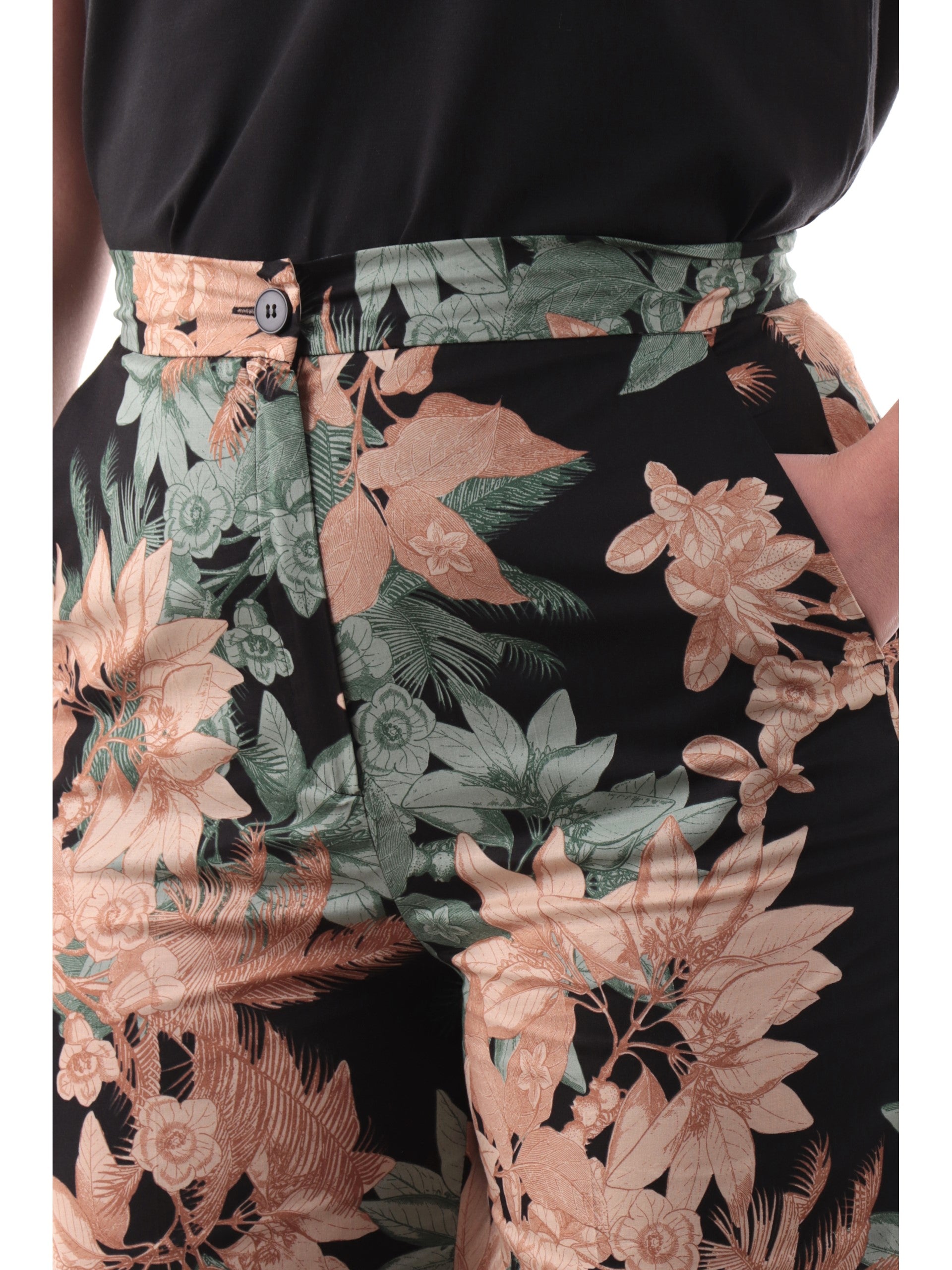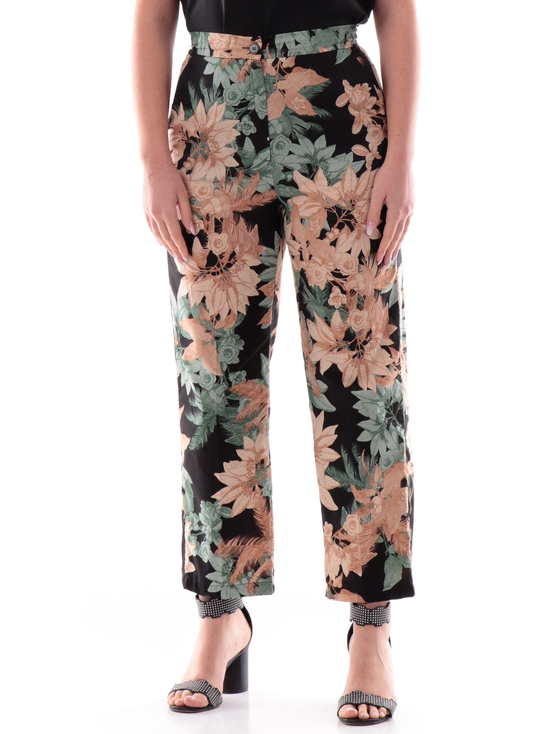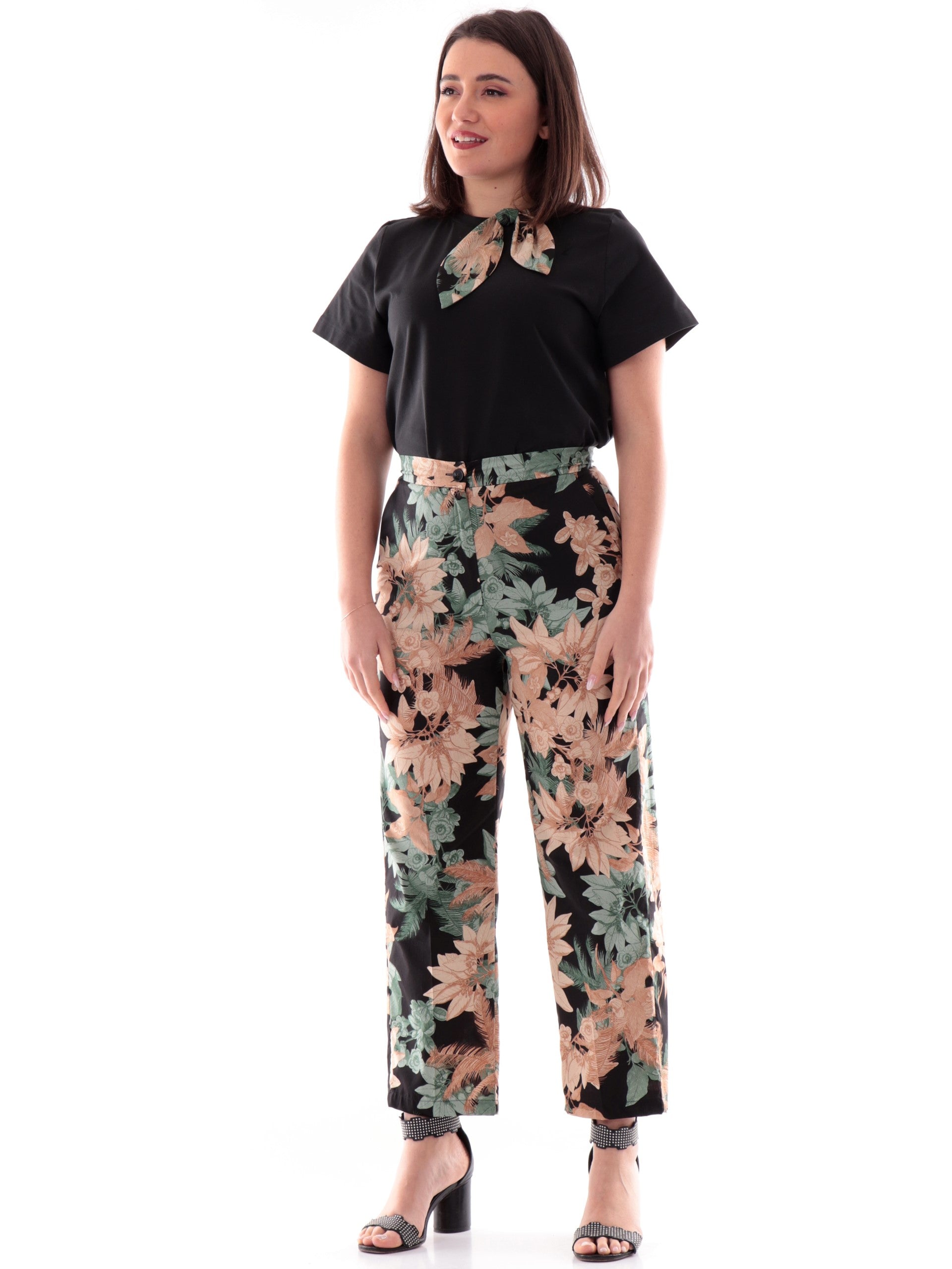 Pantaloni Emme Marella neri da donna fantasia floreale MUSA-008