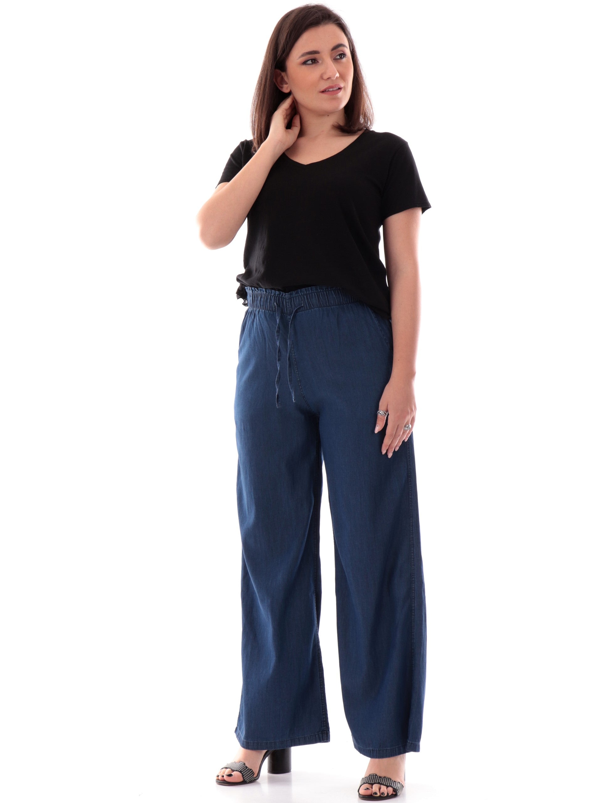 Pantaloni Jeans Deha donna a palazzo con elastico in vita. Questi pantaloni tuta jeans deha donna sono realizzati in cotone jeans morbido e leggero,perfetto per questa stagione.