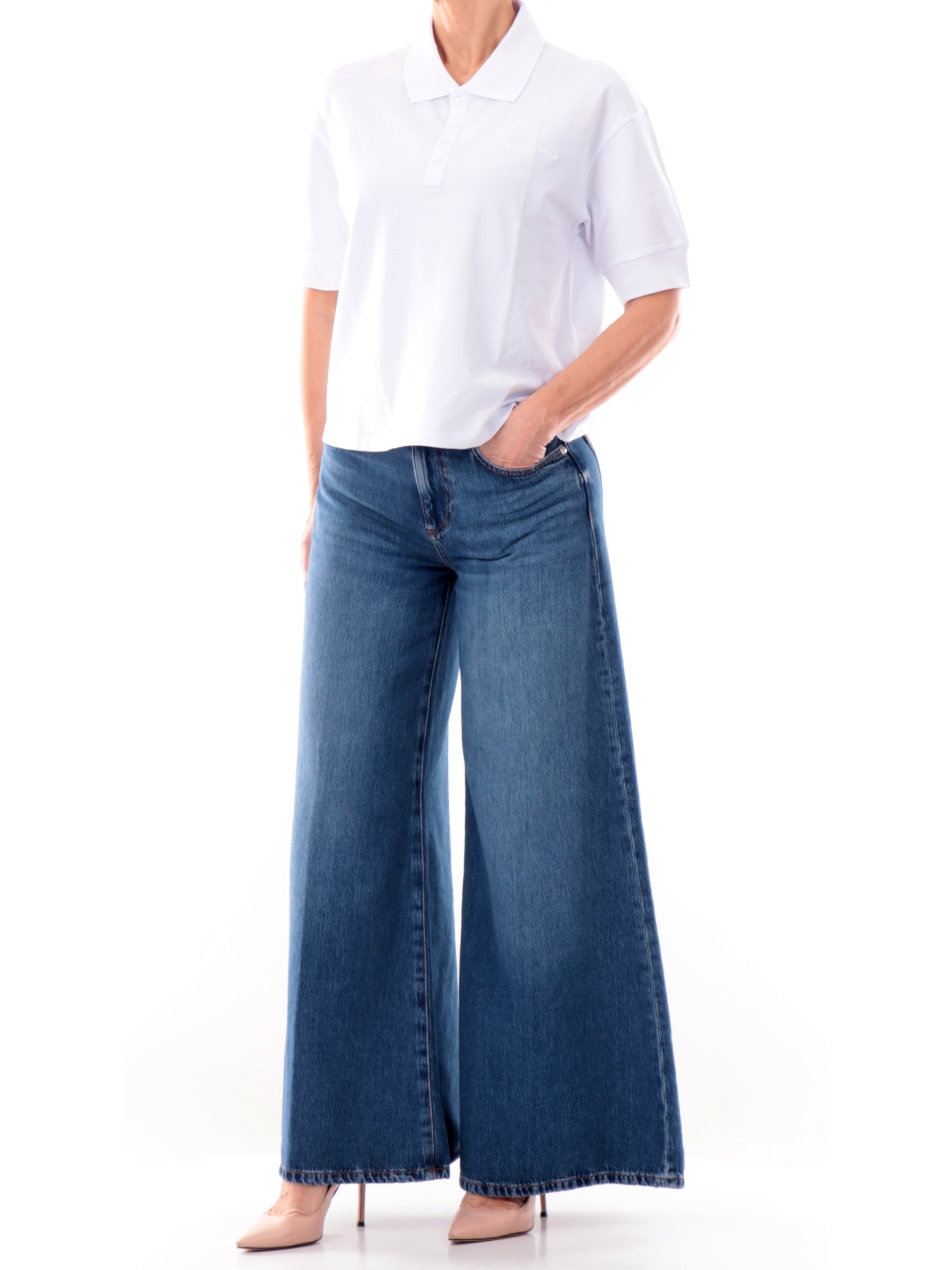 Polo Armani Exchange maniche corte bianca da donna AX. Questa polo AX realizzata in cotone, morbido e soffice al tatto, perfetta per la stagione estiva, è caratterizzata dal colletto classico, chiusura con bottoni, maniche corte con fondo elasticizzato a costine, scritta del brand ricamata a lato cuore, fondo regolare e la vestibilità regular. La composizione in cotone rende questa polo morbida al tatto e comoda da indossare
