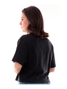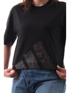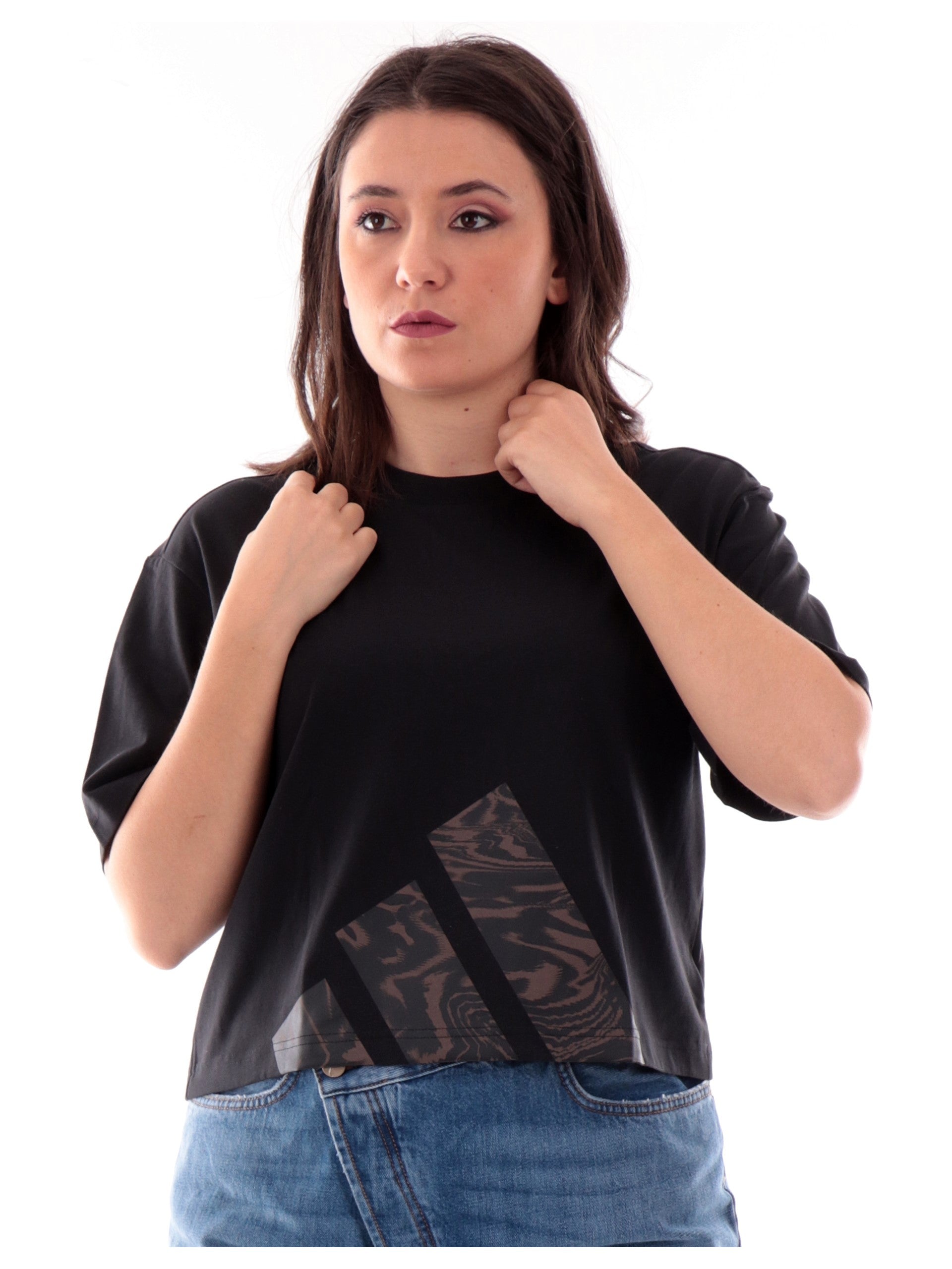 Maglia Adidas nera vestibilità morbida da donna logo animalier JM5886, realizzata in cotone. Questa t-shirt Adidas nera girocollo ha le maniche corte, la vestibilità morbida e il logo Adidas animalier.