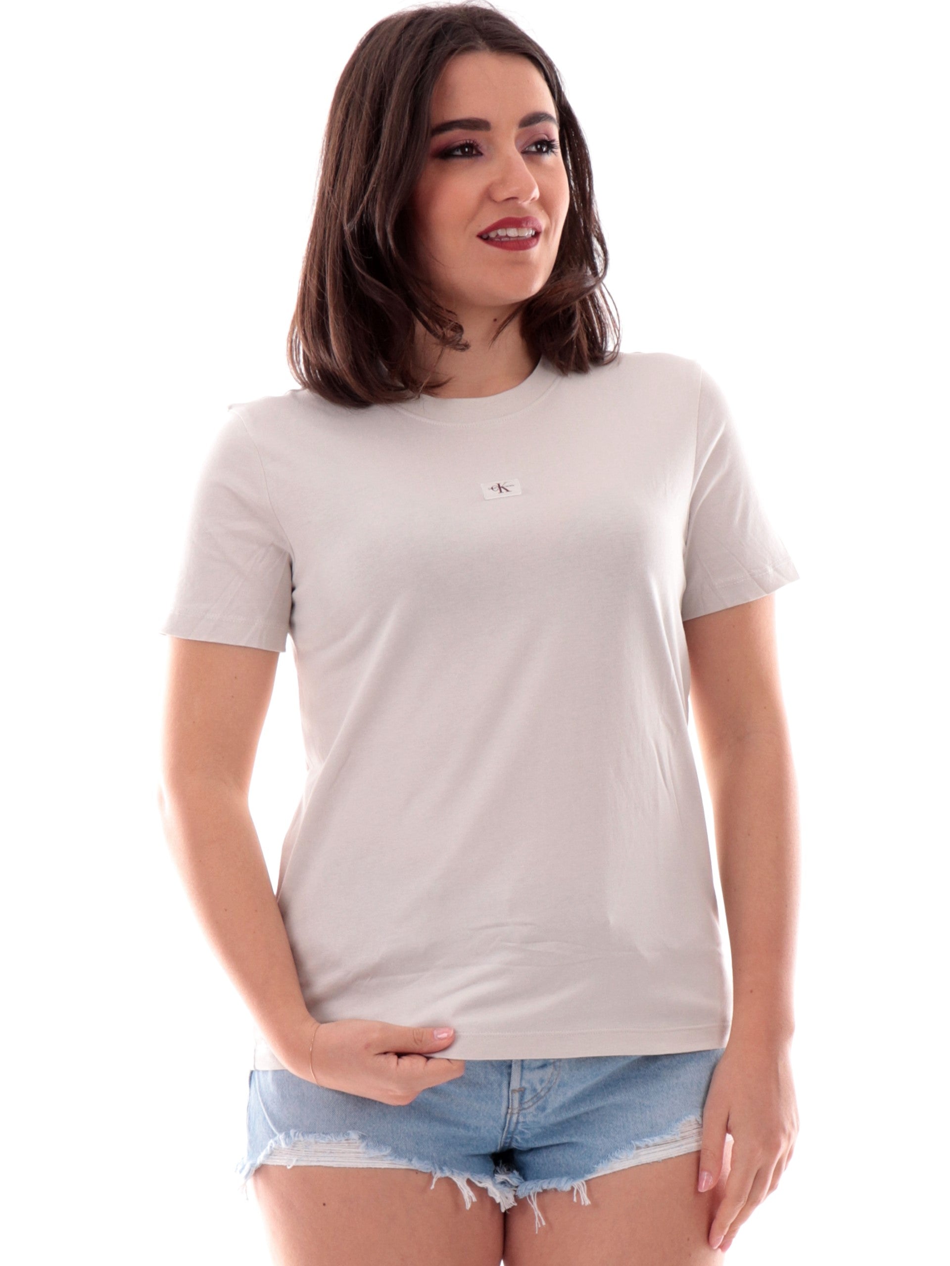 Maglia Calvin Klein nera da donna patch CK sul davanti J20J225243, realizzata in 100% puro cotone. Questa t-shirt Calvin Klein girocollo ha le maniche corte e il patch CK applicato sul davanti.