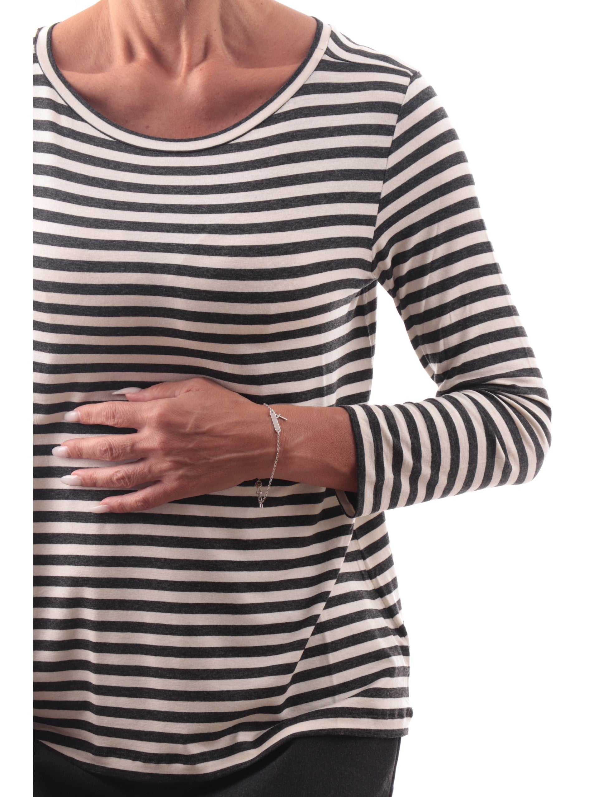 T-shirt Emme Marella bianca a righe da donna girocollo POLPO